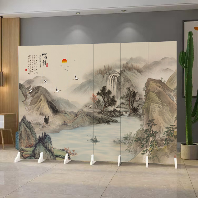 중국 풍경화 칸막이 스크린 사무실 침실 입구 차단 접이식 모바일 골동품 스크린 칸막이 거실스토어 가기