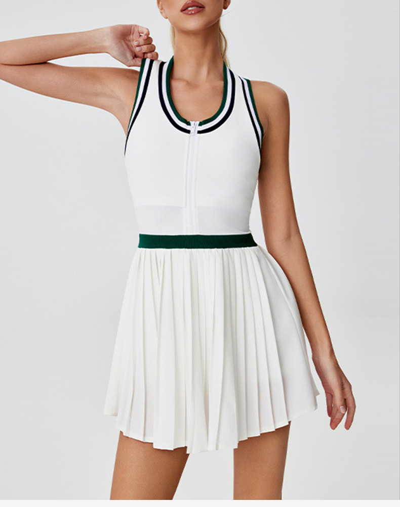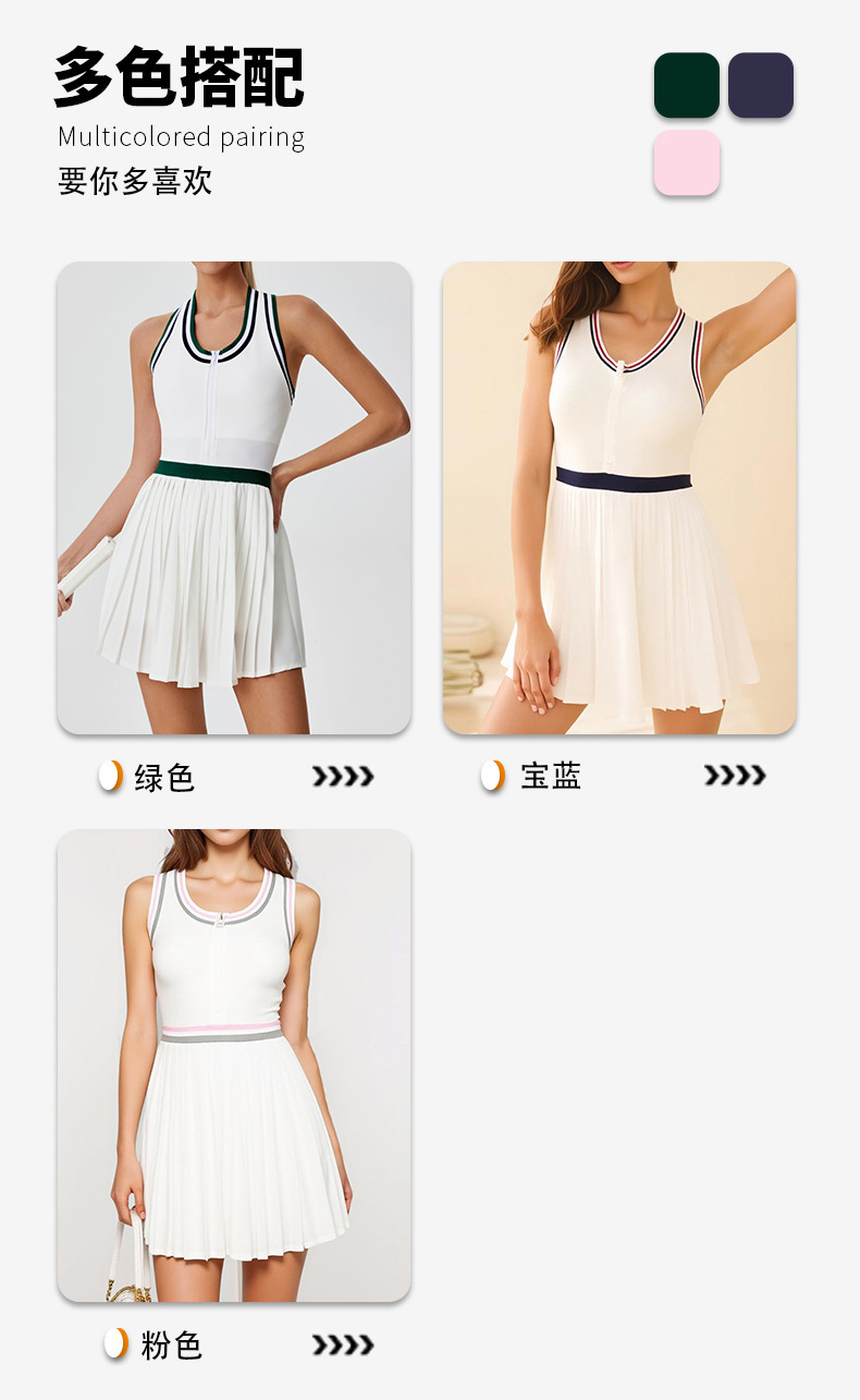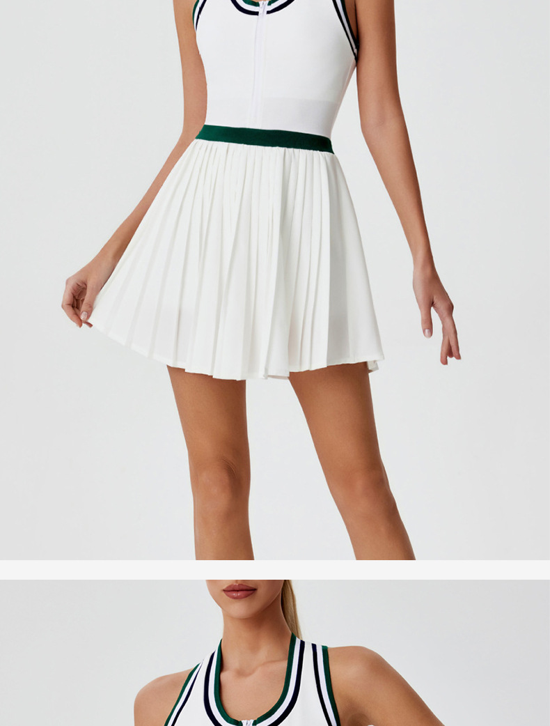 국경을 넘는 새로운 지퍼 피트니스 세트 컬러 대비 높은 허리 야외 배드민턴 스포츠 스커트 통기성 골프 테니스 스커트스토어 가기
