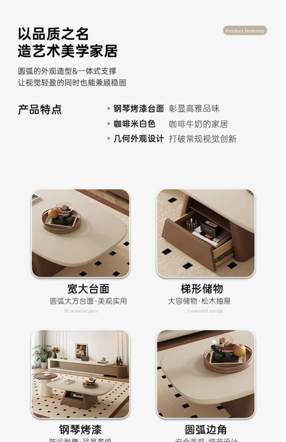 • 【밀크 커피】사다리꼴 커피 테이블 + 버섯 사이드 테이블