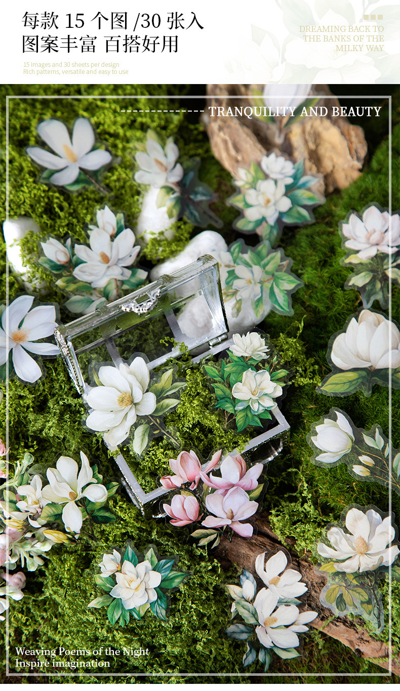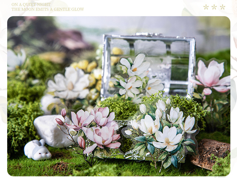 아름다운 날 애완 동물 스티커 달빛 사이드 시리즈 꽃 소재 손 계정 휴대 전화 백 카드 DIY 콜라주
