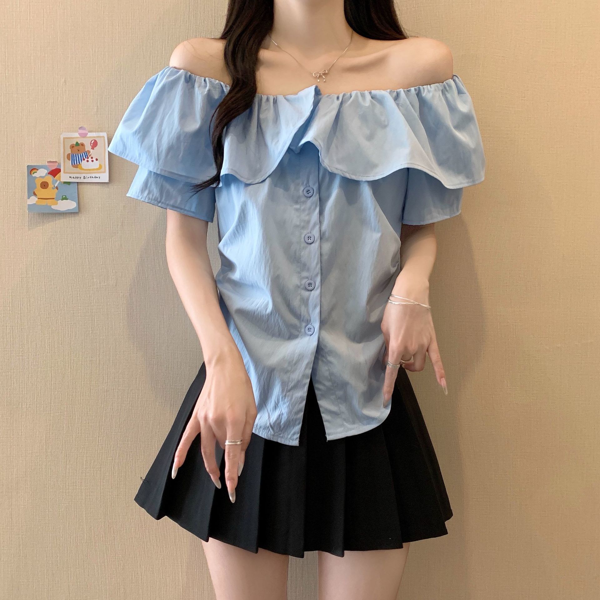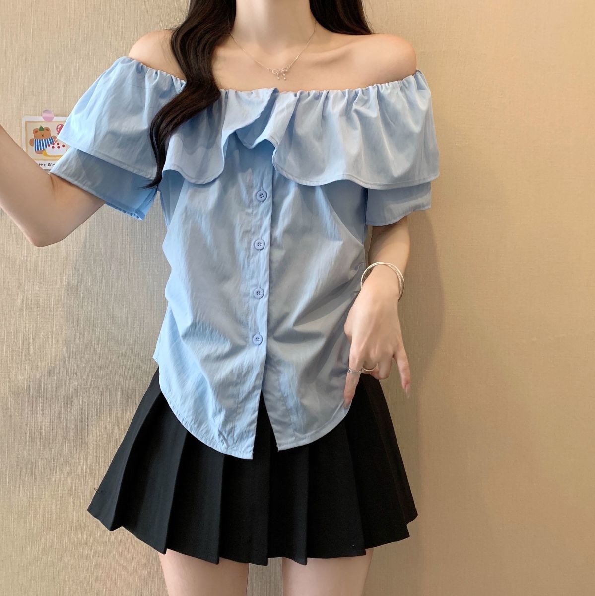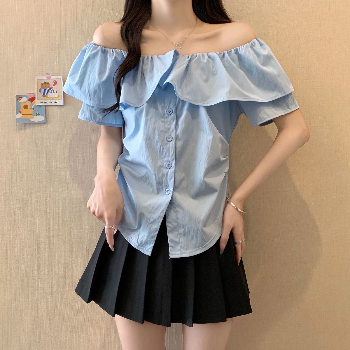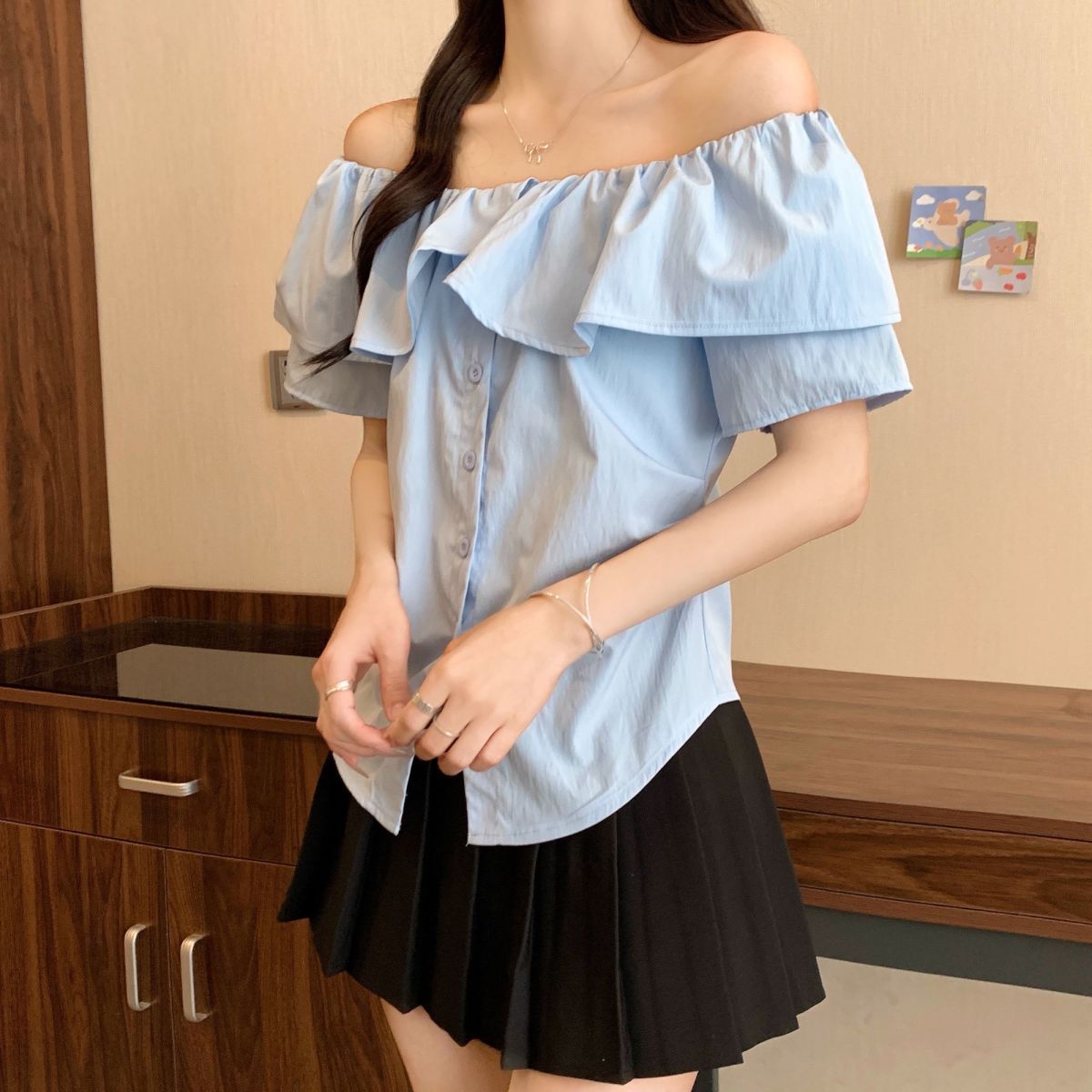 여름 새로운 프랑스 스타일 오프 숄더 러플 반팔 셔츠 여자 달콤한 올 매치 하이 엔드 나이 감소스토어 가기