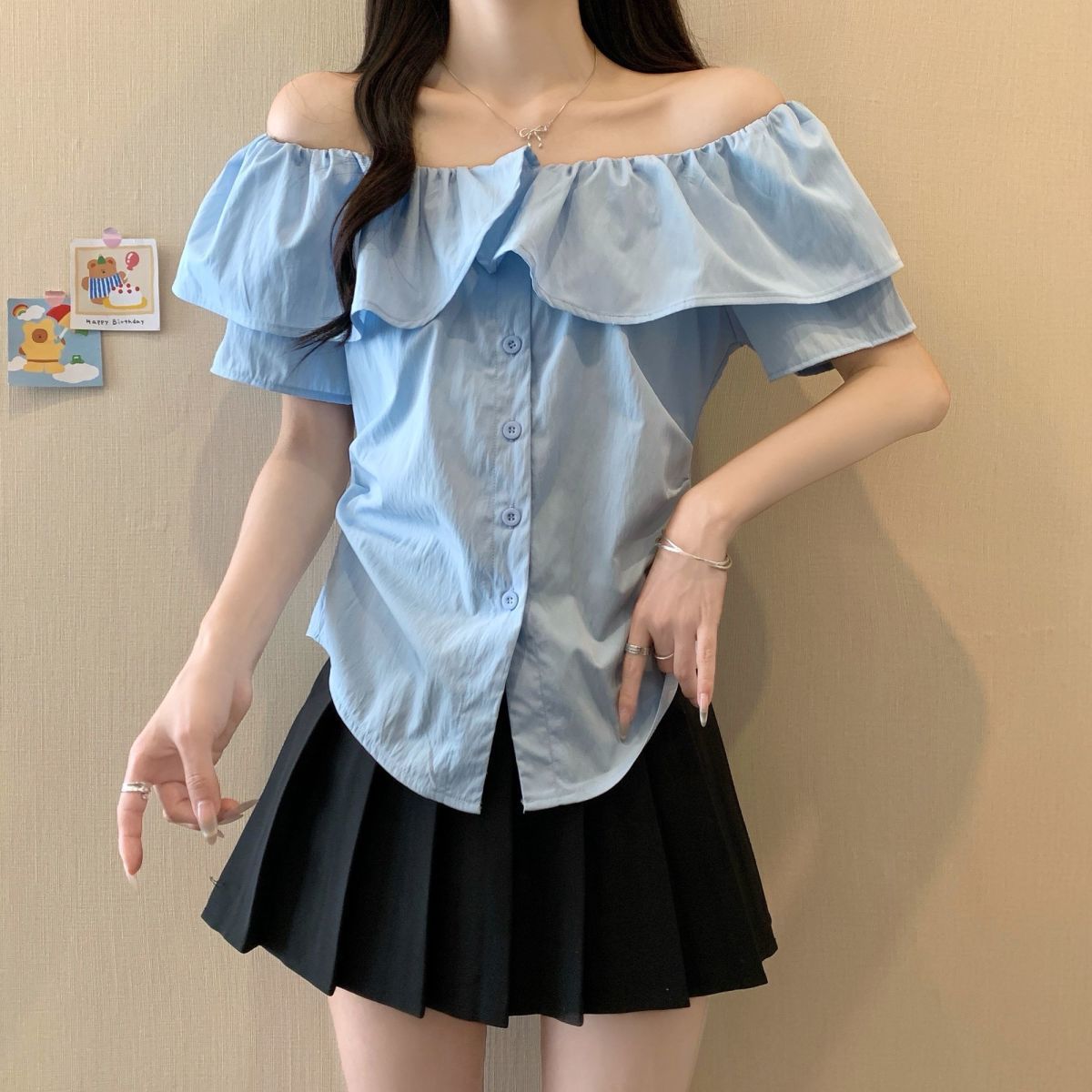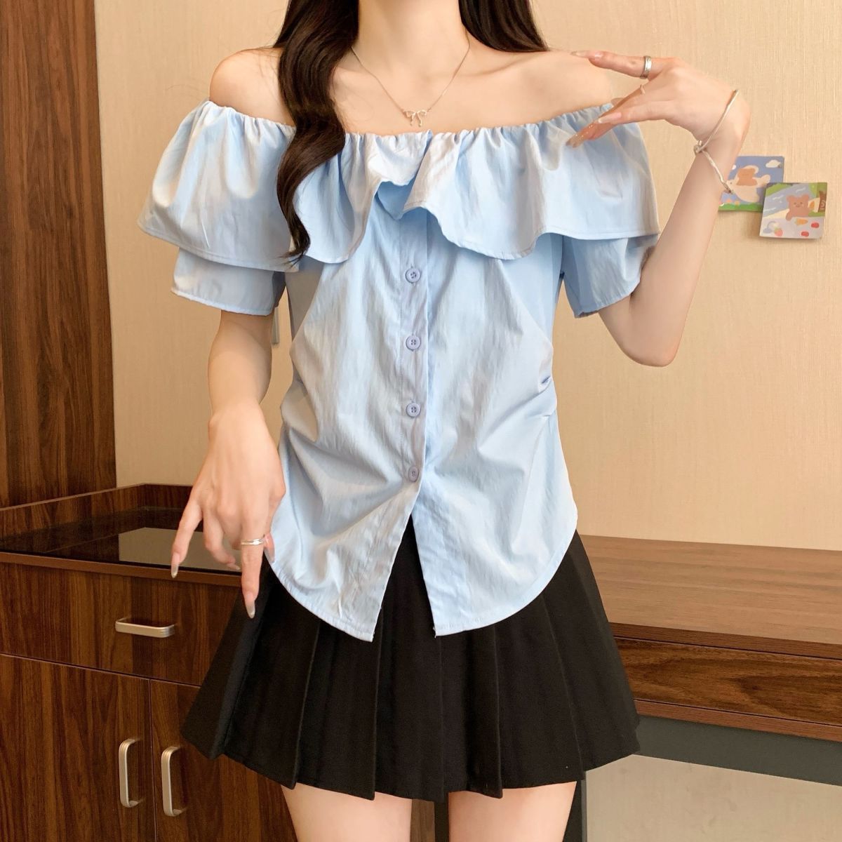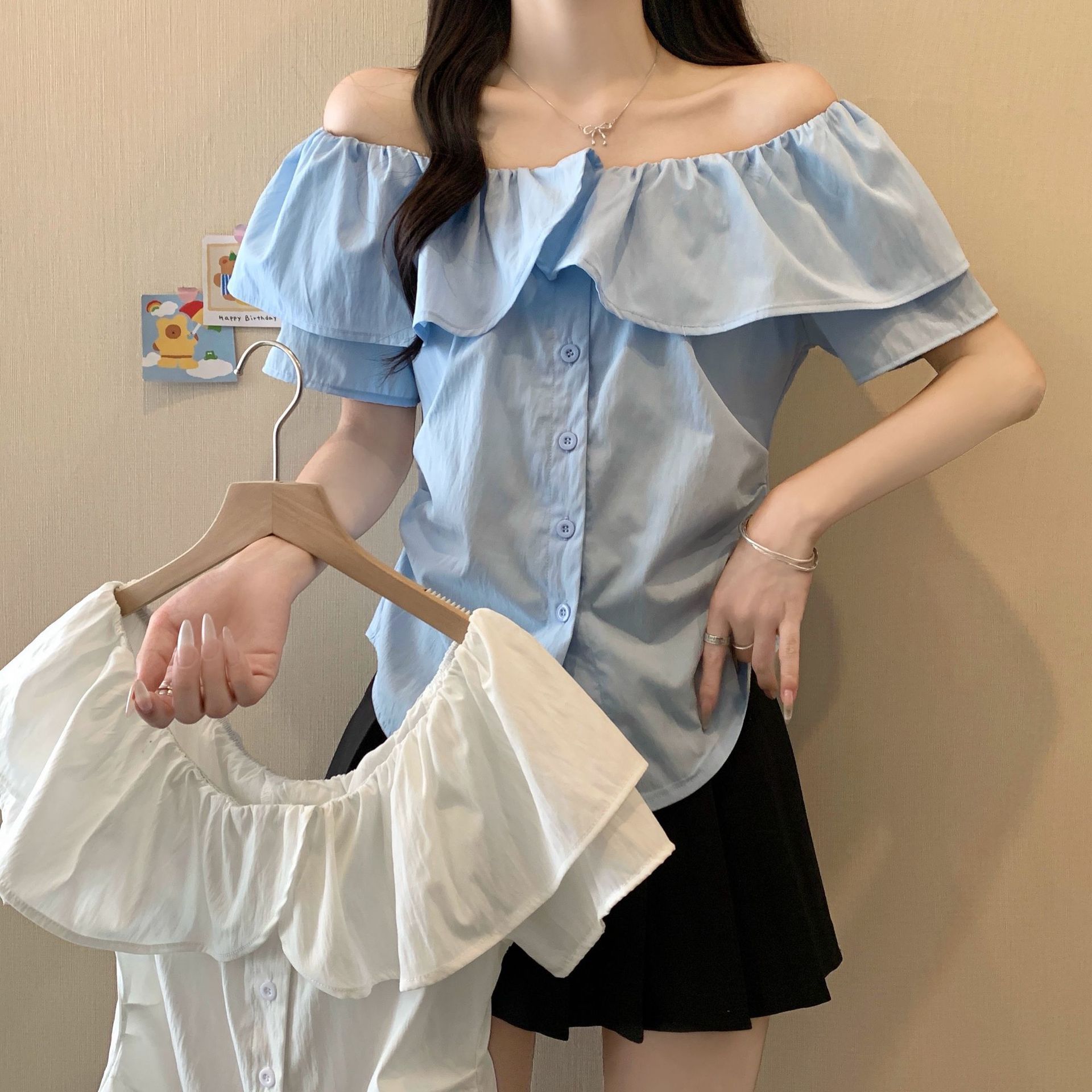 여름 새로운 프랑스 스타일 오프 숄더 러플 반팔 셔츠 여자 달콤한 올 매치 하이 엔드 나이 감소스토어 가기