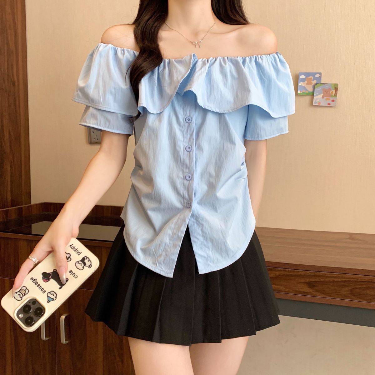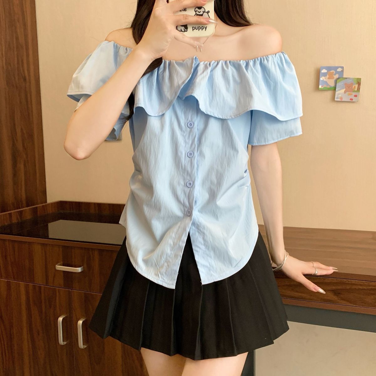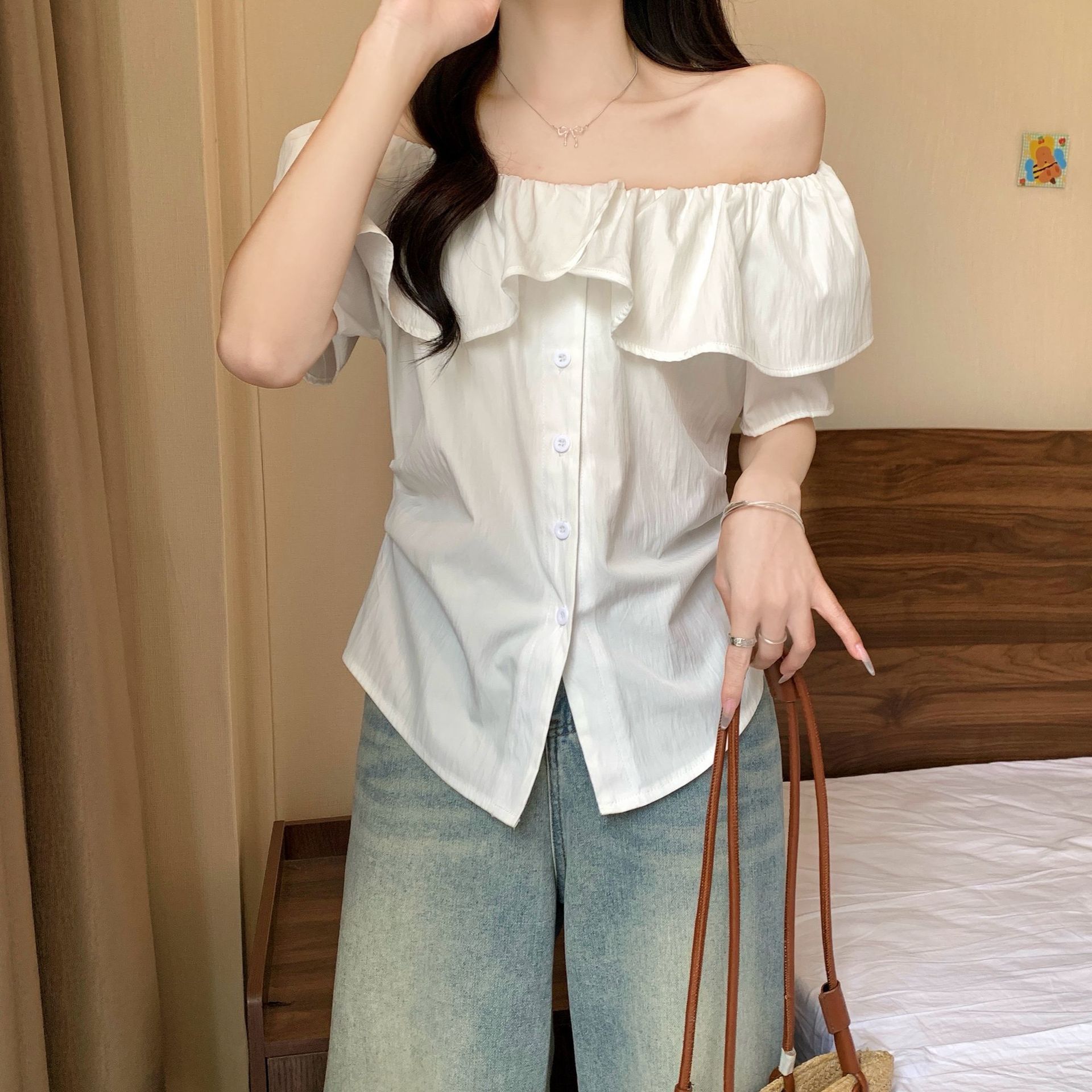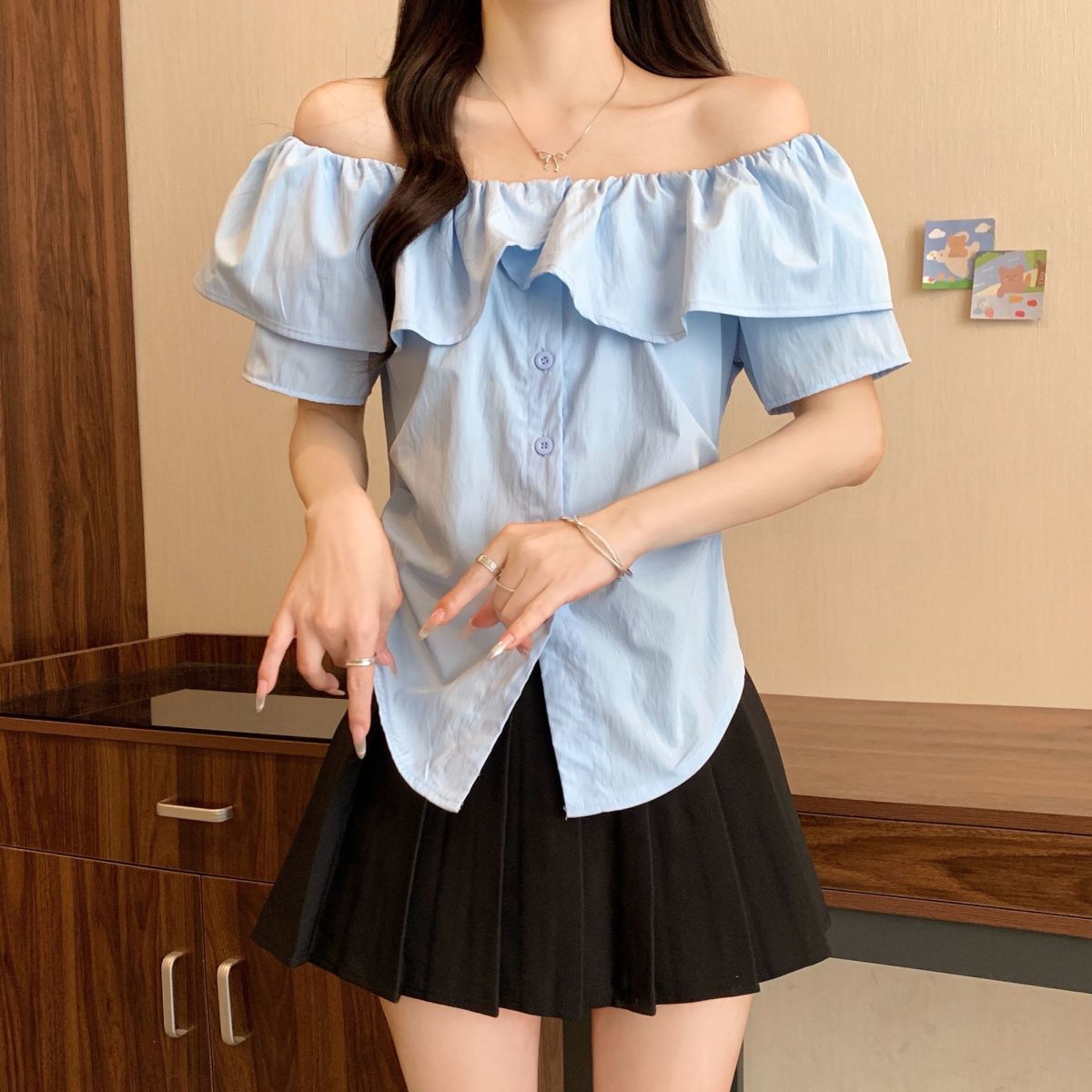 여름 새로운 프랑스 스타일 오프 숄더 러플 반팔 셔츠 여자 달콤한 올 매치 하이 엔드 나이 감소스토어 가기