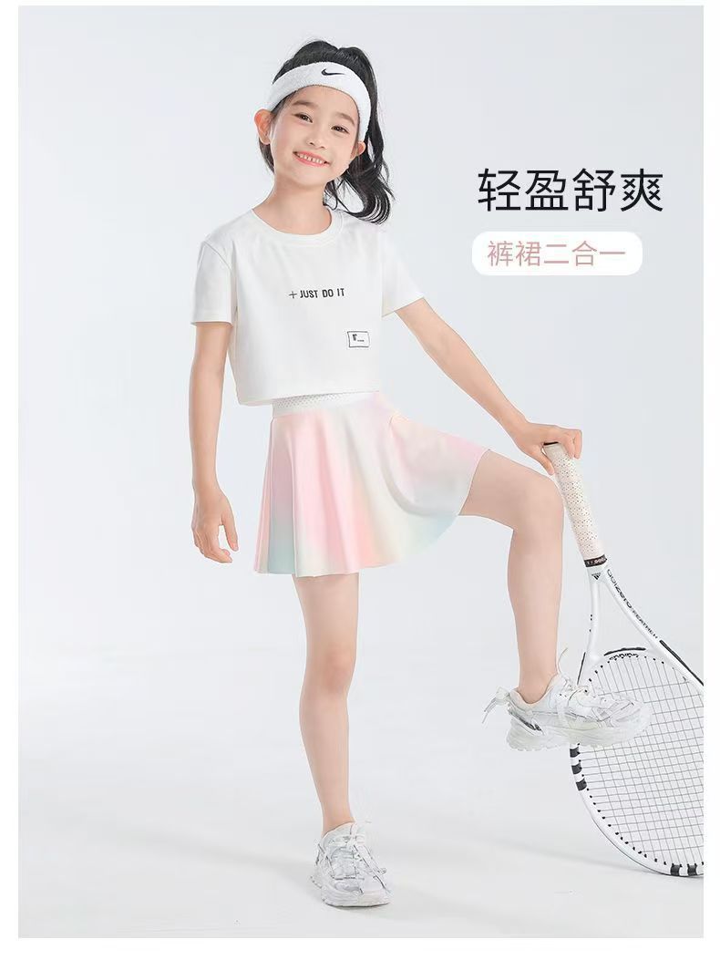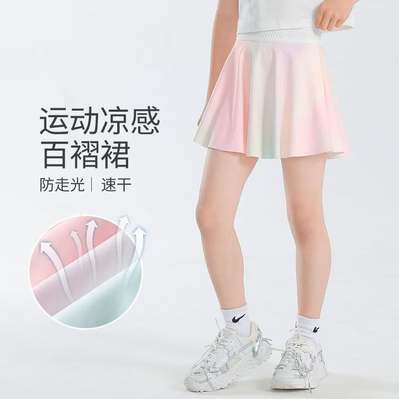 여자 치마 스포츠 테니스 치마 빠른 건조 여름 착용 얇은 서양식 어린이 치마 아기 짧은 치마 안티 라이트