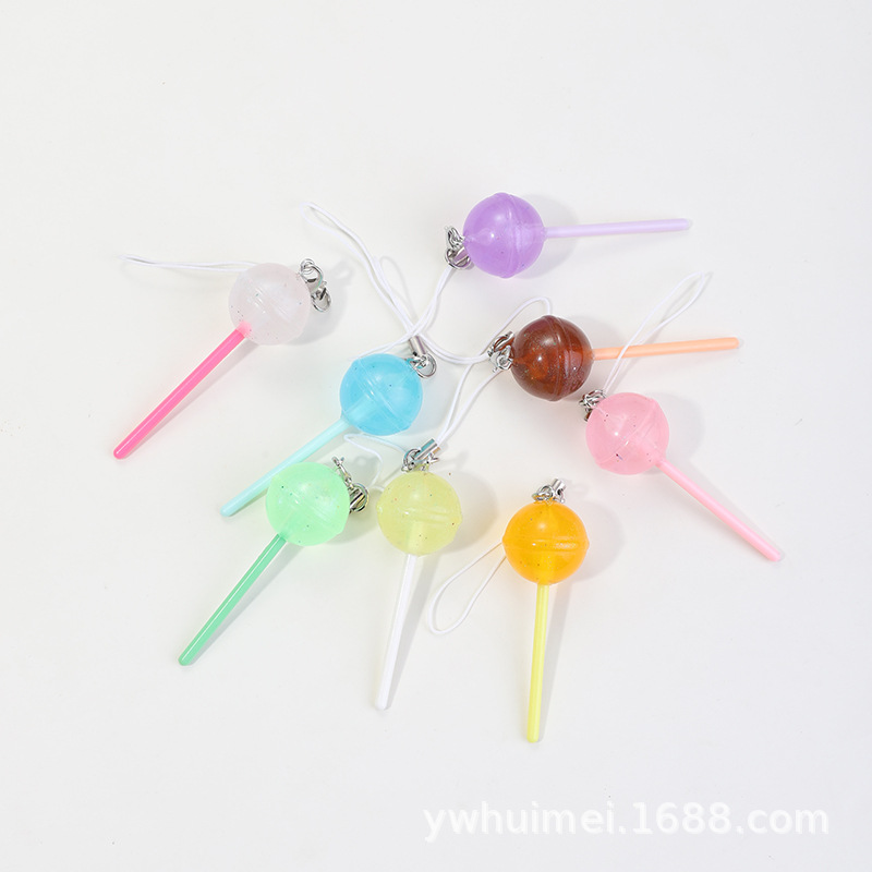 시뮬레이션 된 빛나는 롤리팝 캔디 휴대 전화 체인 펜던트 신선한 컬러 수지 학생 학교 가방 펜던트 작은 펜던트스토어 가기