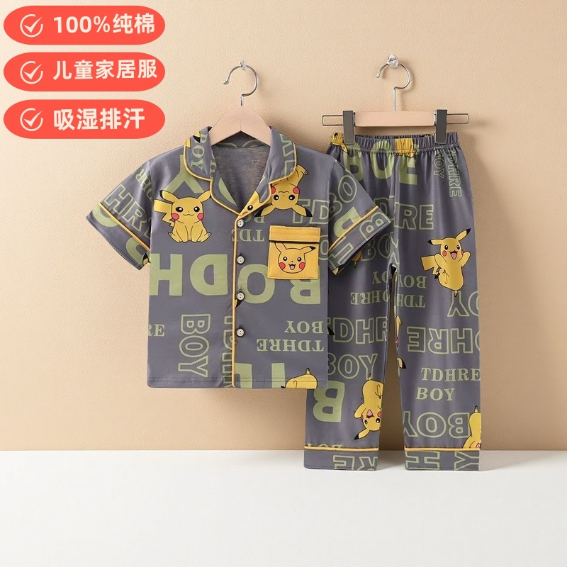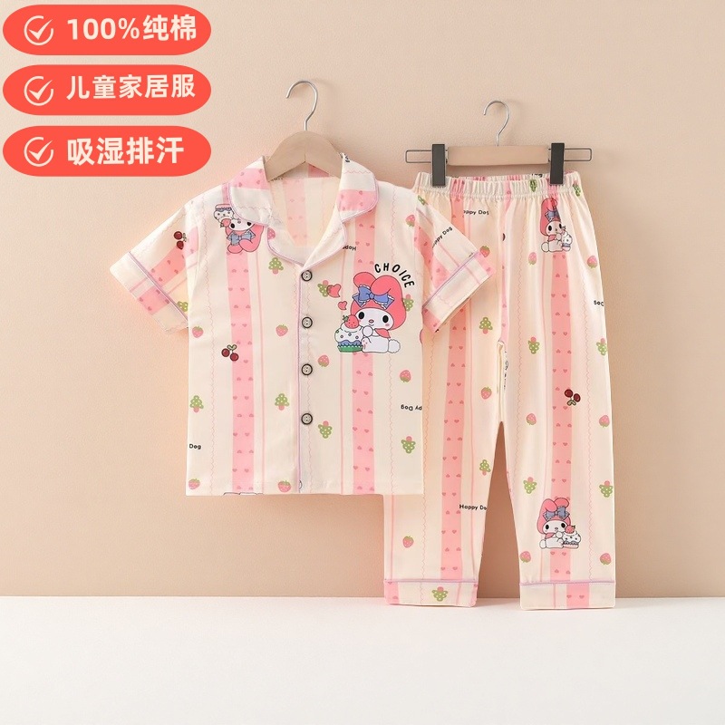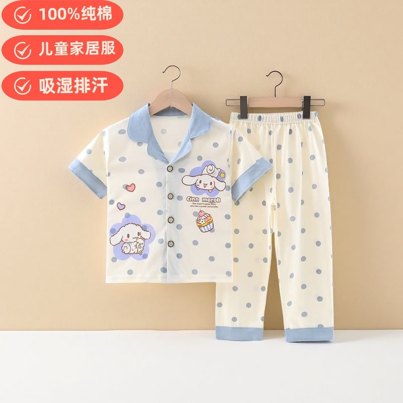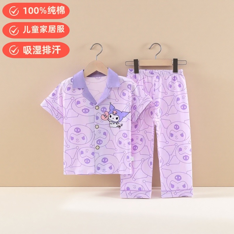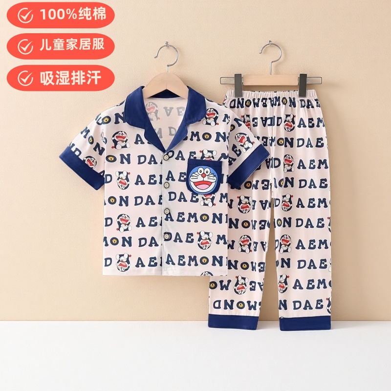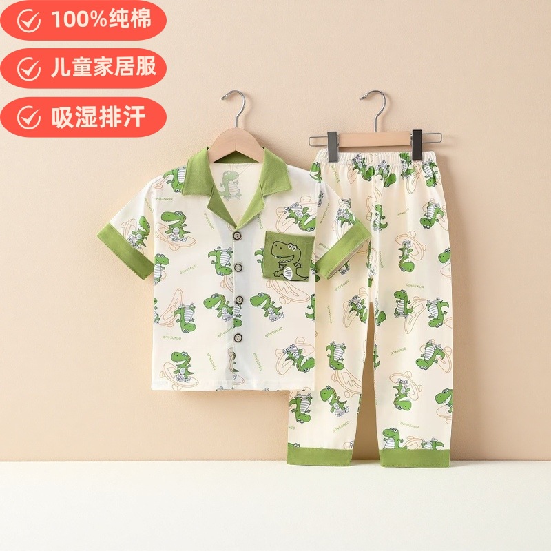 여름 반팔 바지 어린이 파자마 얇은 코튼 클래스 소년 소녀를위한 홈 의류 만화 에어컨 옷스토어 가기