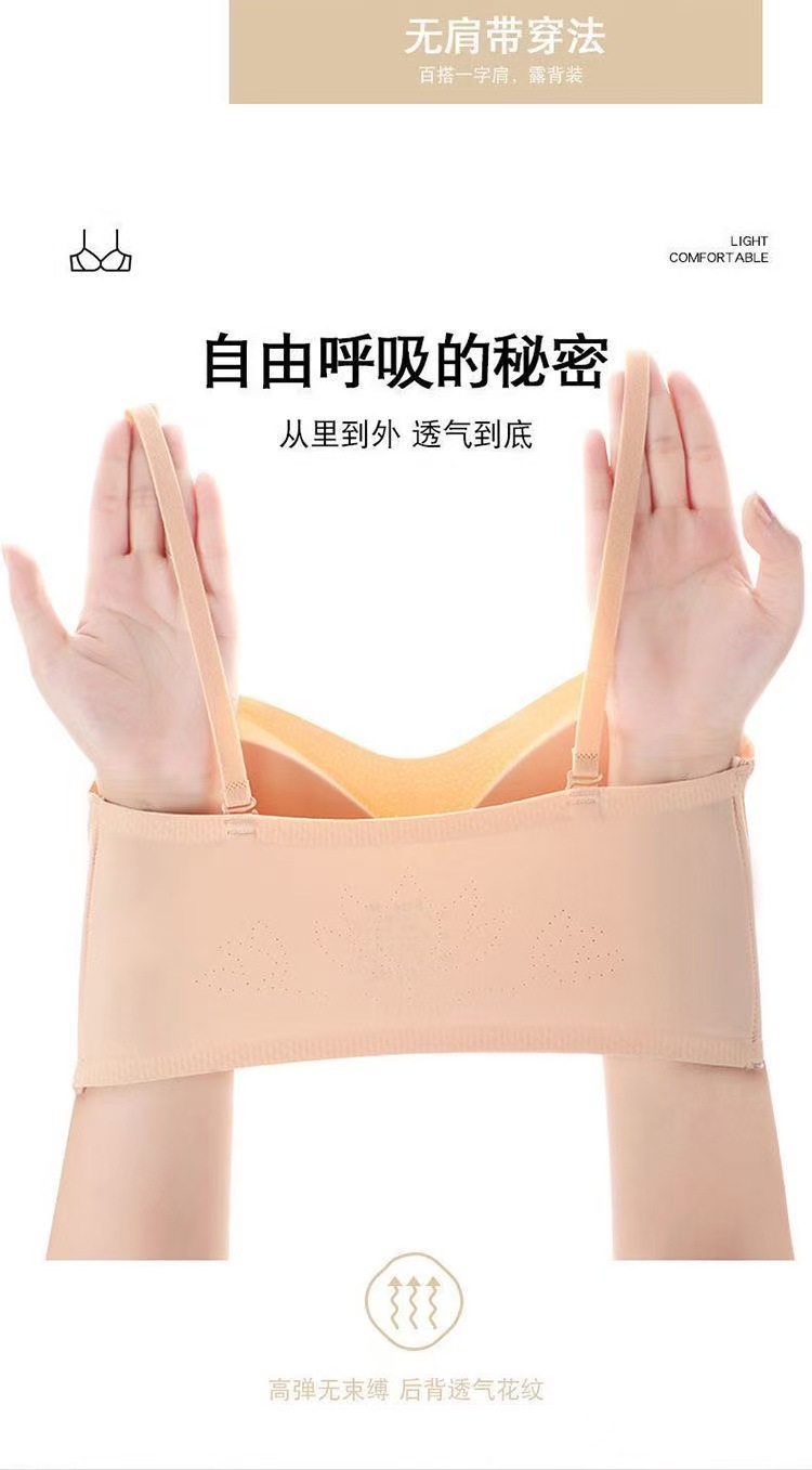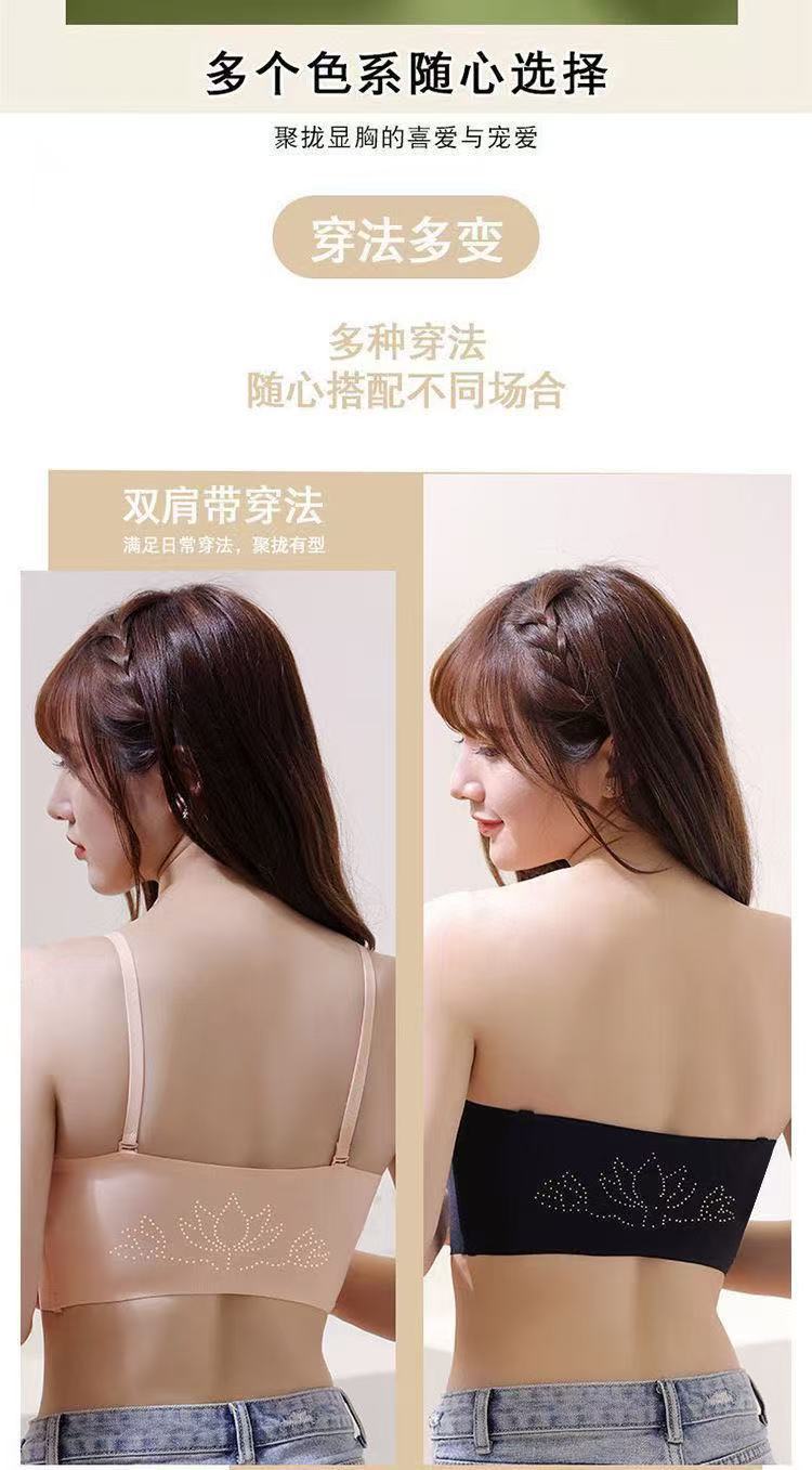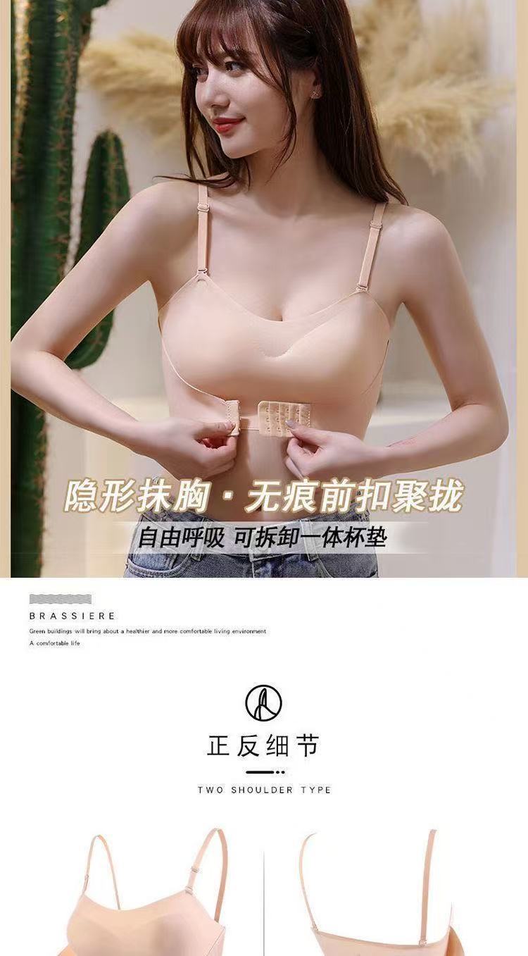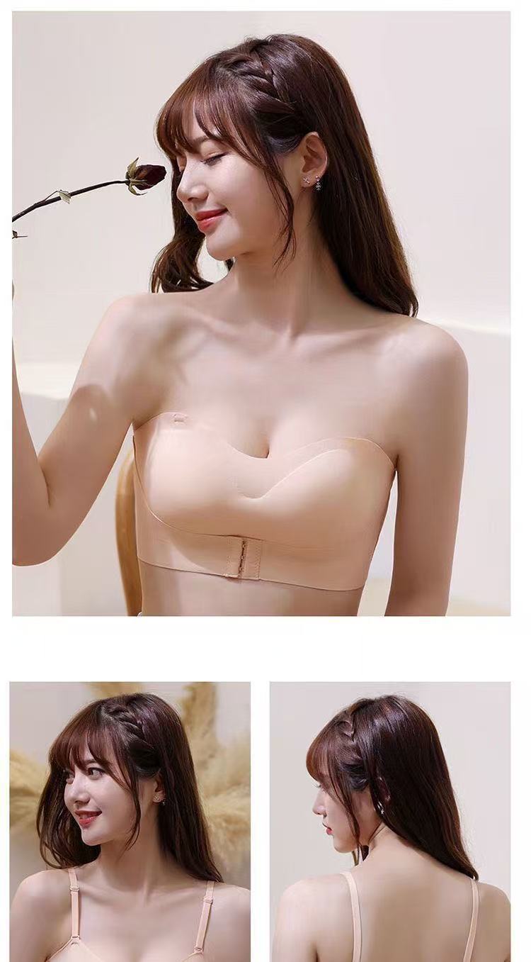 여름 끈이없는 속옷 여성의 미끄럼 방지 푸시 업 작은 가슴 보이지 않는 조끼 미끄럼 방지 내복 브래지어 아름다운 등