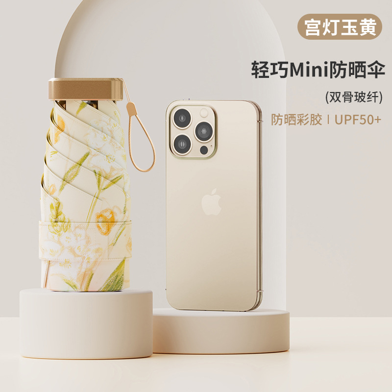태양 우산, 자외선 차단 및 자외선 차단, 여성용 미니 휴대용 소형 야외 비 또는 빛 접이식 태양 우산, 강력함