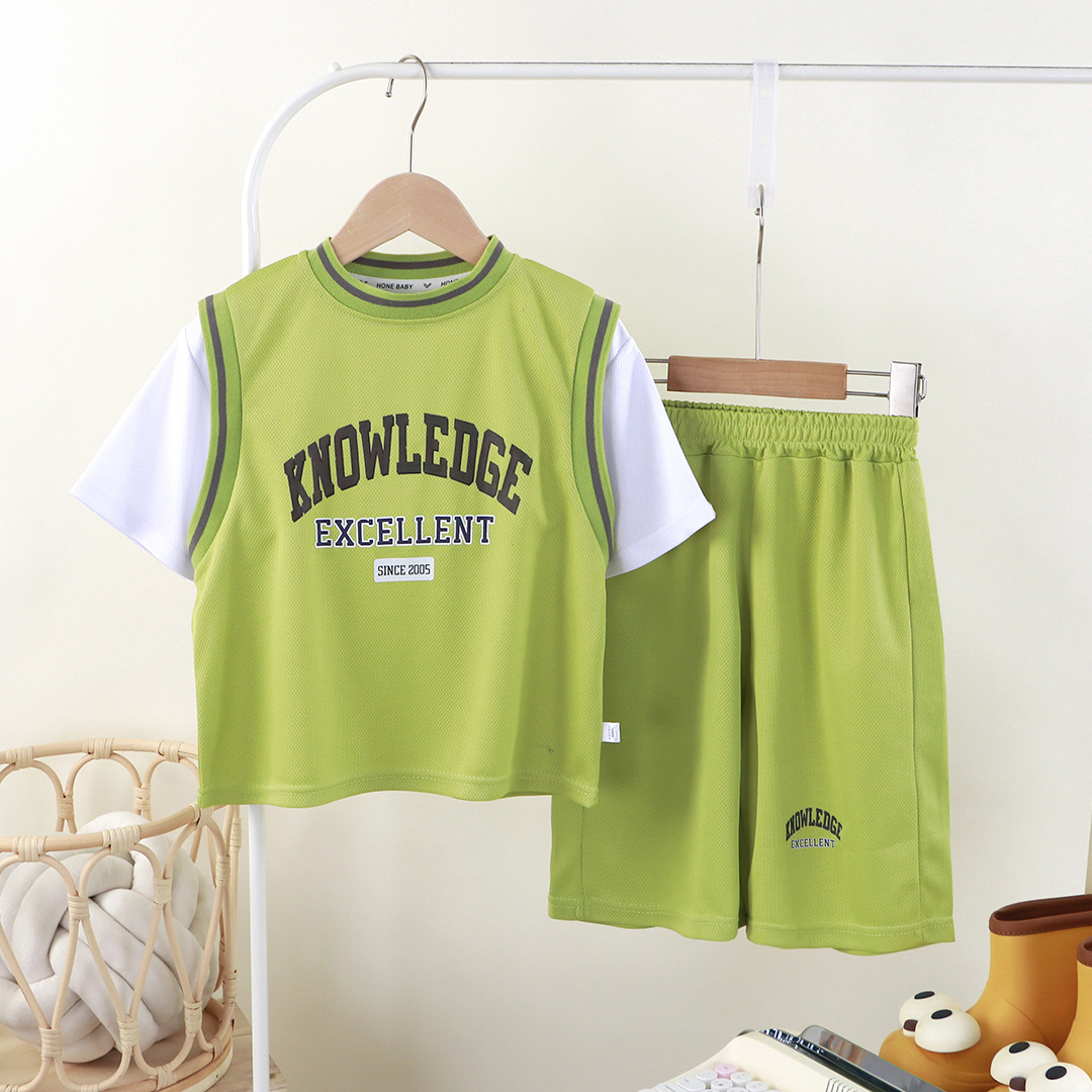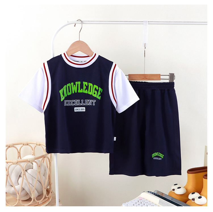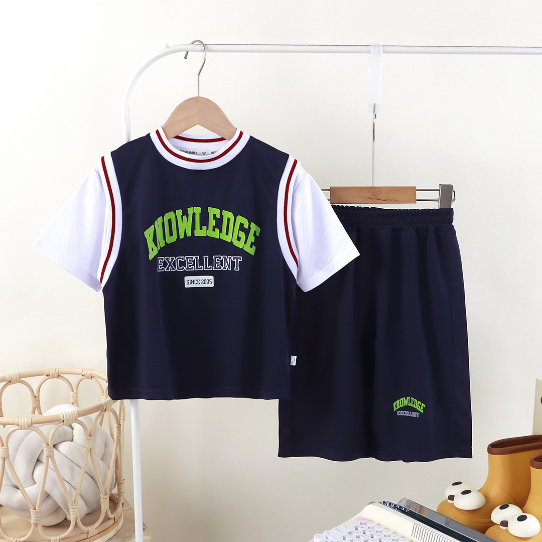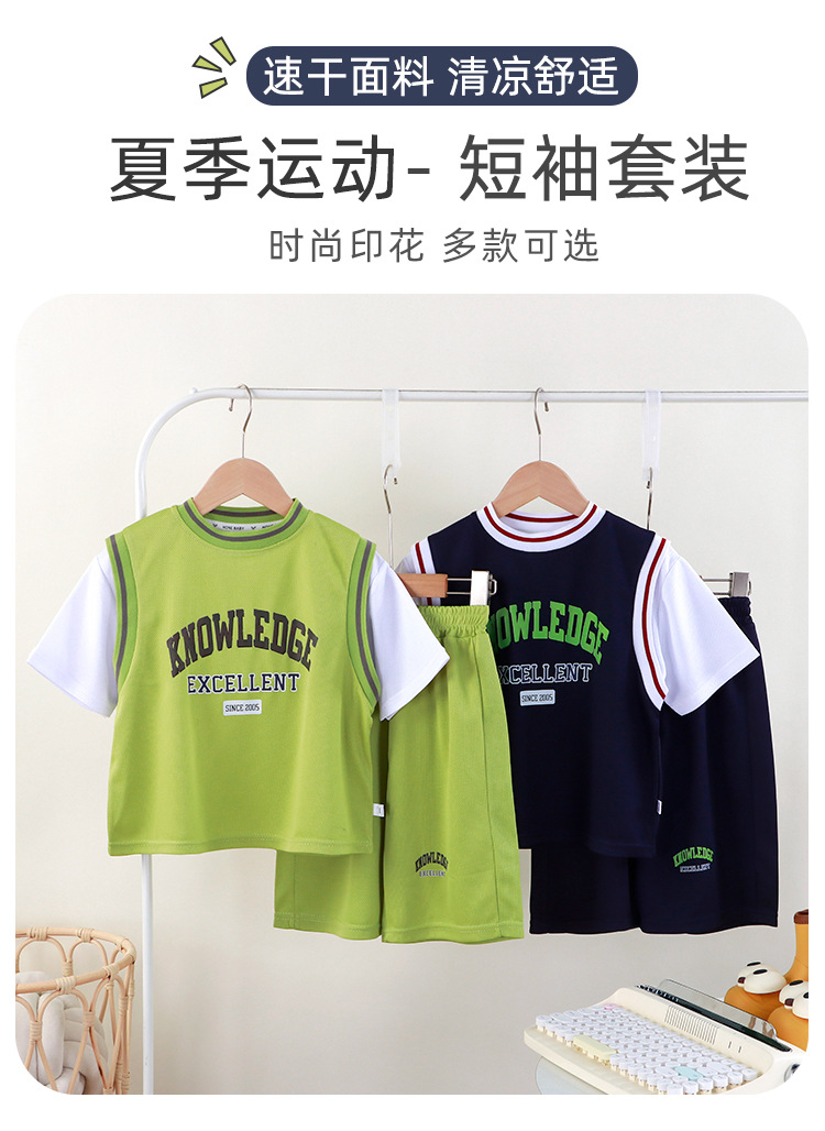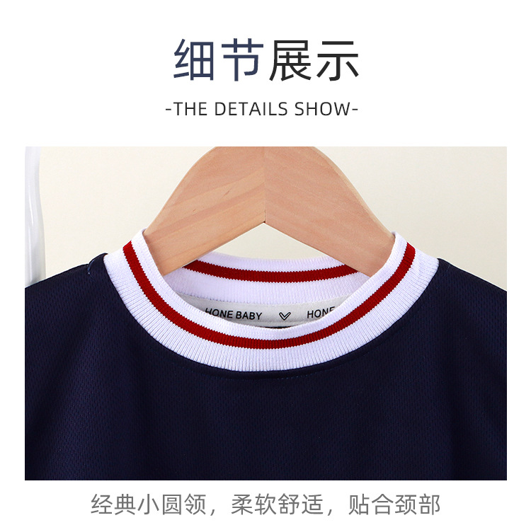 새로운 어린이 공 옷 세트 야외 빠른 건조 통기성 땀 흡수성 여름 반팔 티셔츠 반쪽 바지 소년 운동복