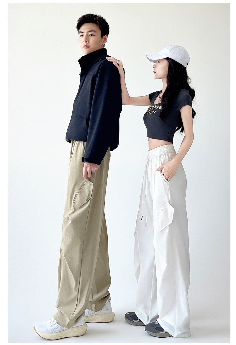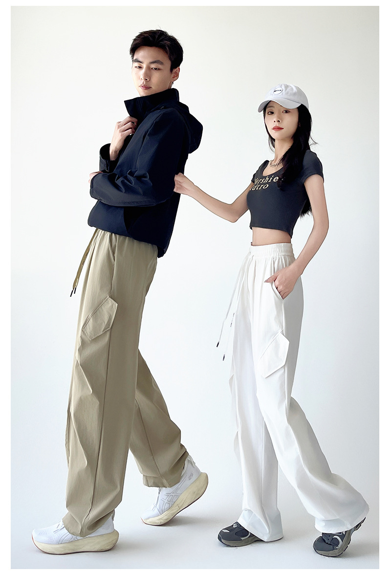빠른 건조 크록 바지 여자 바지 2025 새로운 여름 충전 작은 넓은 다리 얼음 실크 얇은 등산 스포츠 바지