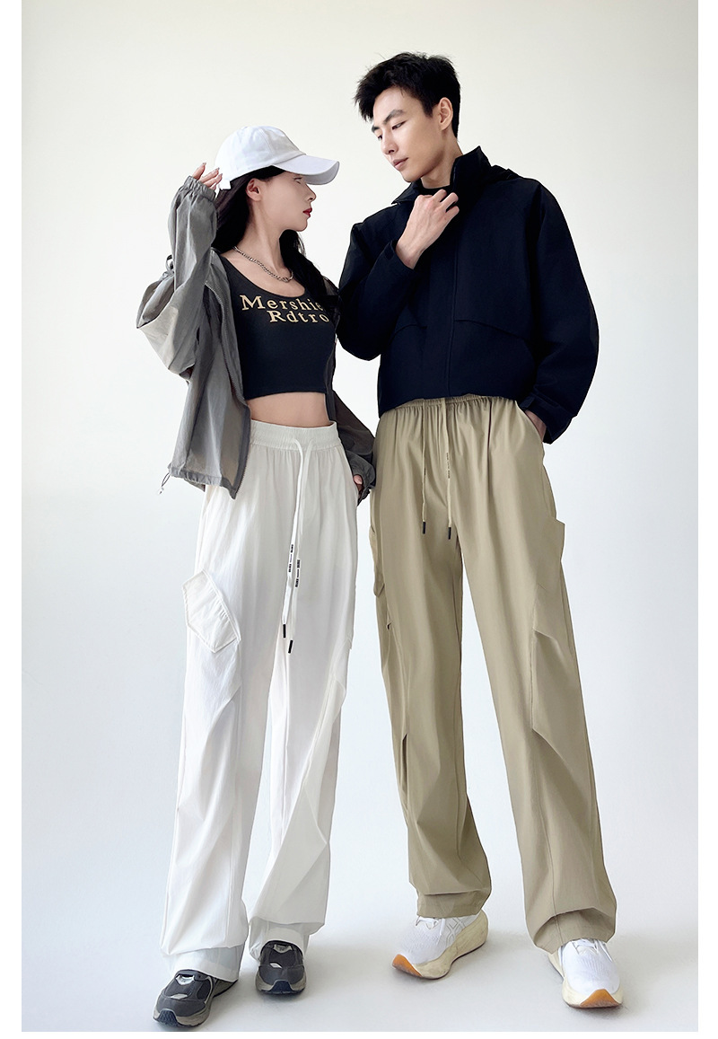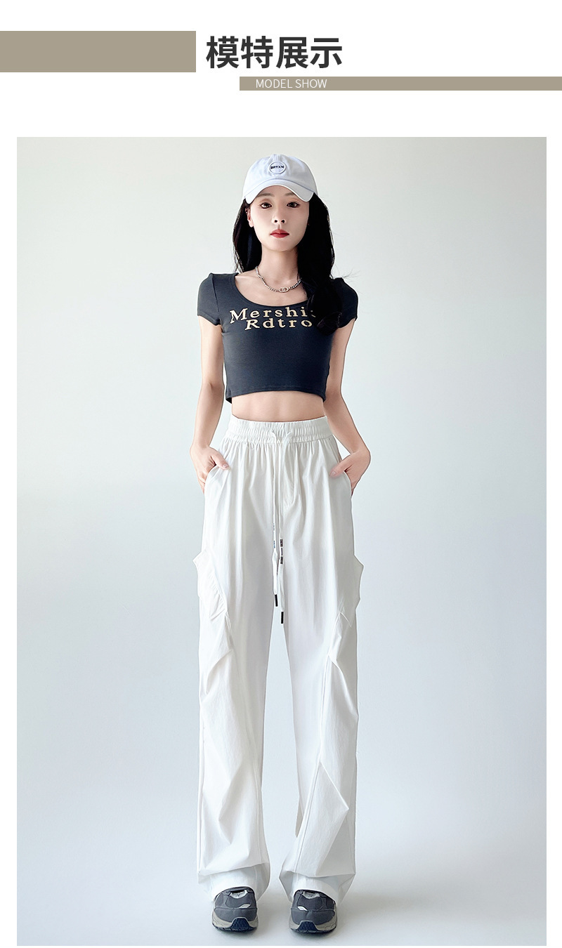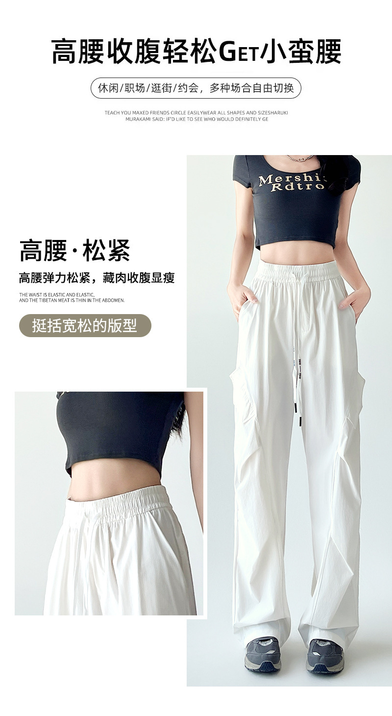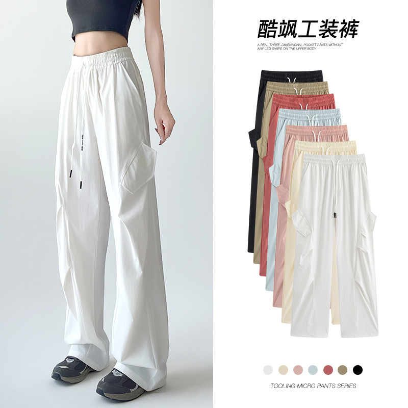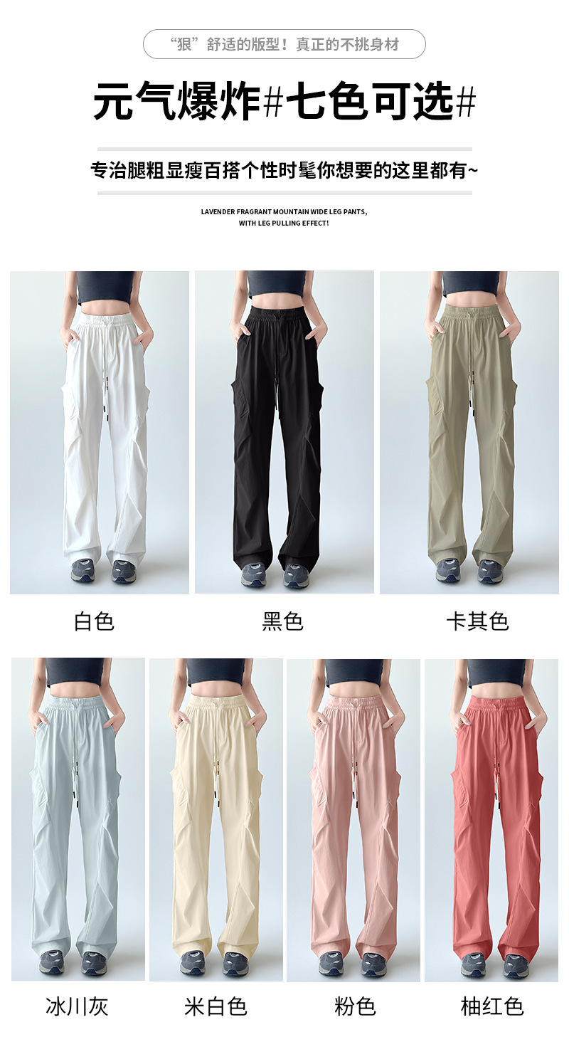 빠른 건조 크록 바지 여자 바지 2025 새로운 여름 충전 작은 넓은 다리 얼음 실크 얇은 등산 스포츠 바지스토어 가기
