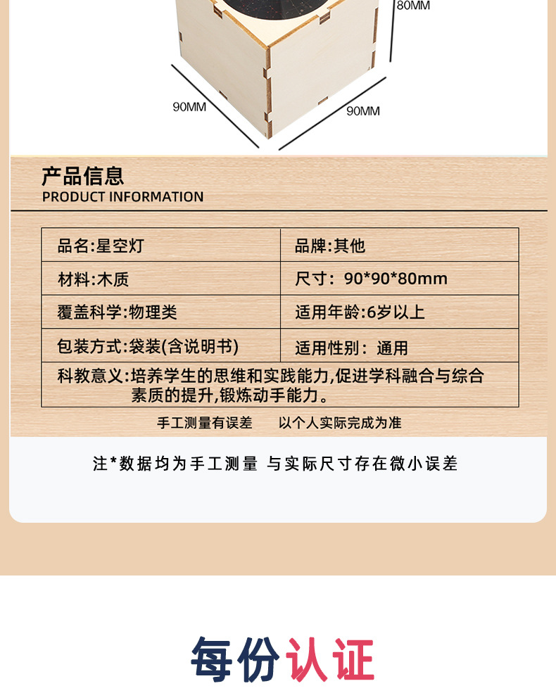 초등학생 DIY 별이 빛나는 하늘 램프 소규모 생산 모델 어린이 과학 실험 장비 학교 천문 망원경 실험 교육 보조 장치
