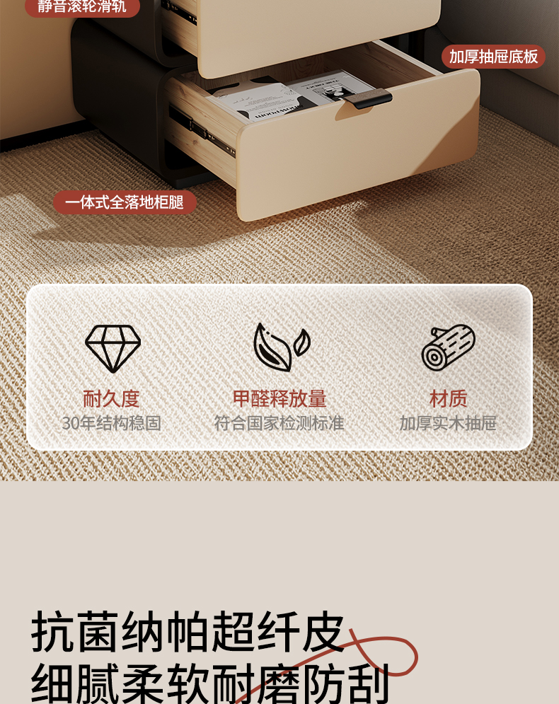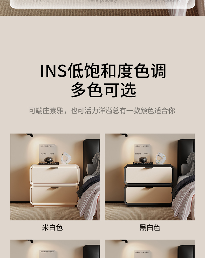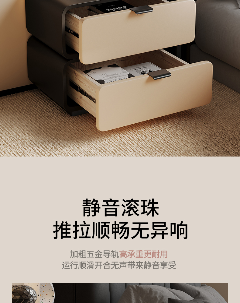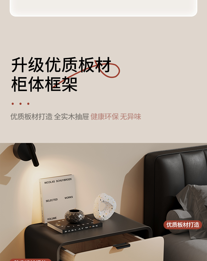 침대 옆 테이블 홈 작은 침실 단단한 나무 간단한 현대 이탈리아 스타일 빛 럭셔리 2024 새로운 인터넷 연예인 스토리지 랙 크림 스타일