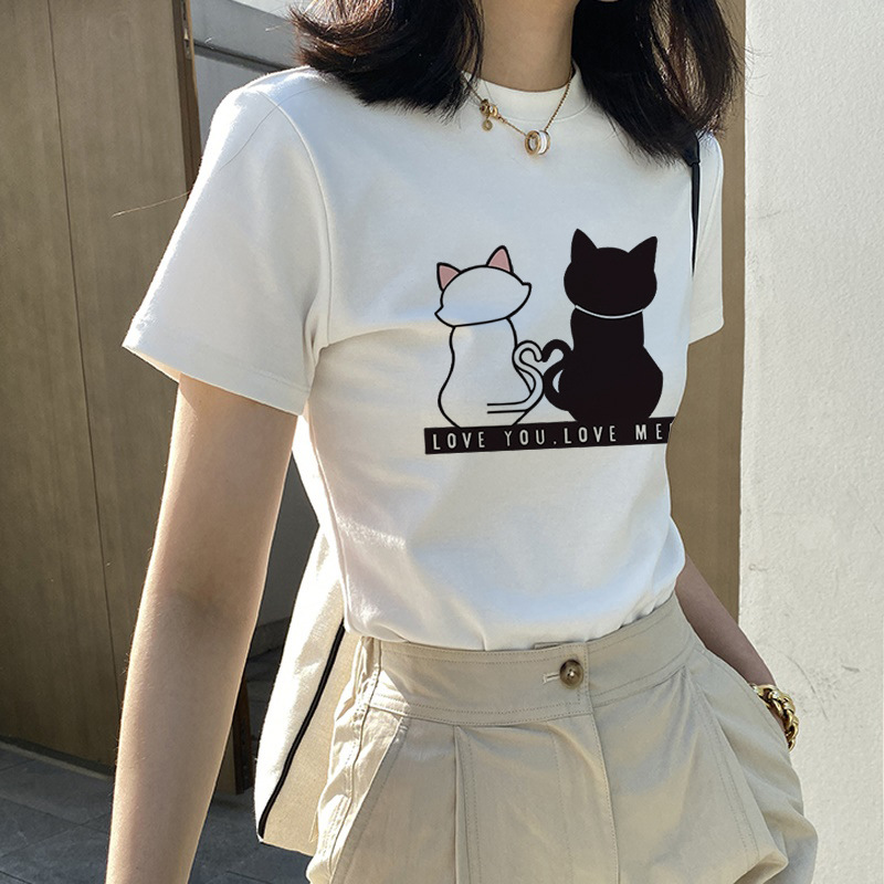 • 순면 반팔 티셔츠 [검은 고양이 레터링]
