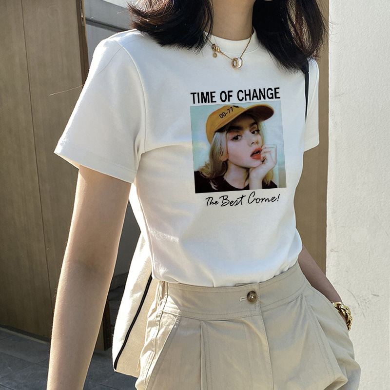 헤비 어깨 반팔 화이트 셔츠 여성용 크루 넥 여름 속옷 2025 티셔츠 여성용 탑스토어 가기