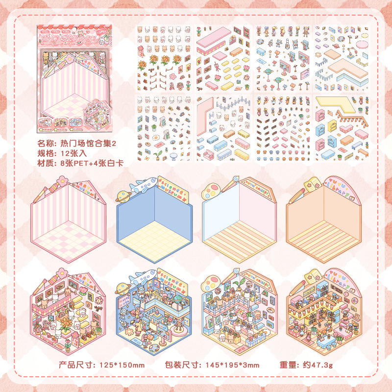 어린이를 위한 만화 조경 DIY 스티커 컬렉션을 위한 국경 간 대외 무역 특별 공급 3D 입체 미니어처 장면 스티커 도매스토어 가기