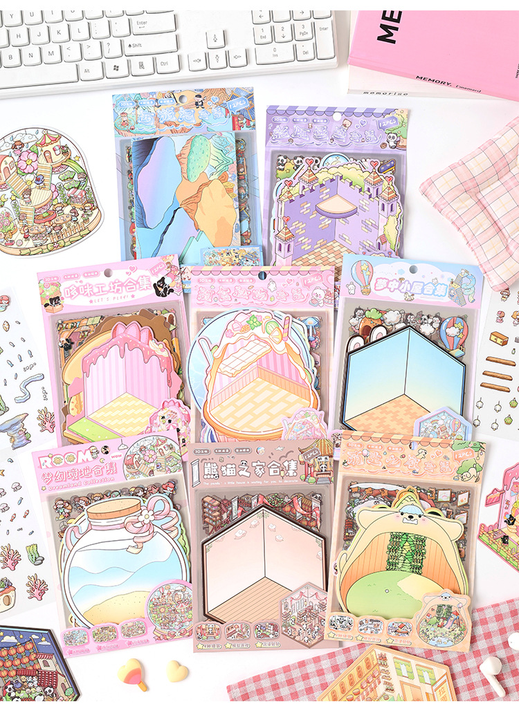 어린이를 위한 만화 조경 DIY 스티커 컬렉션을 위한 국경 간 대외 무역 특별 공급 3D 입체 미니어처 장면 스티커 도매