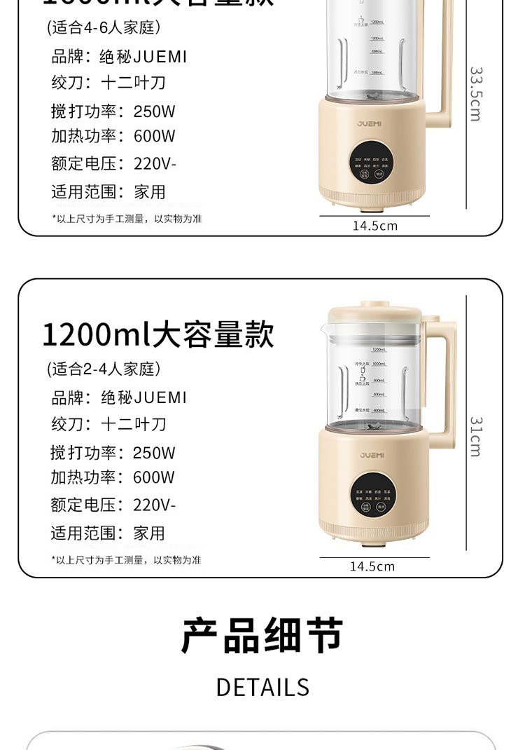 영국의 비밀 JUEMI 대용량 두유 벽 파괴기 주스 추출기 스마트 홈 완전 자동 다기능 아침 식사스토어 가기