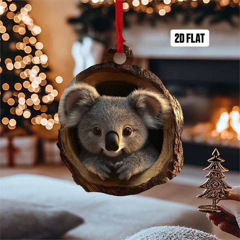 국경 새 올빼미 너구리 크리스마스 장식 크리스마스 트리 펜던트 2D 플랫 프린트 아크릴 작은 펜던트스토어 가기