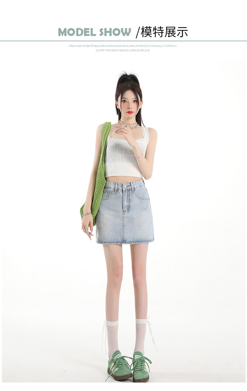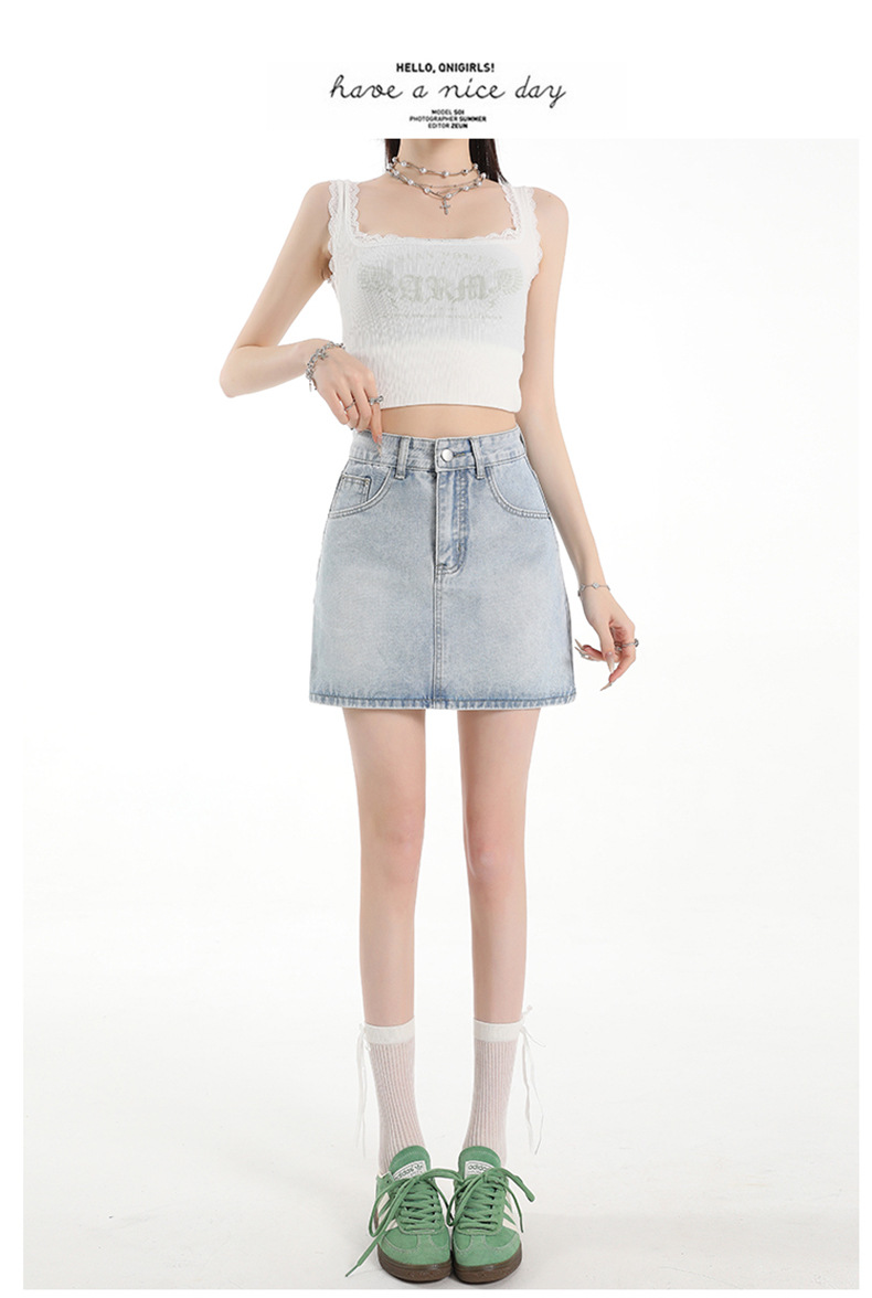 여성을위한 자수 데님 스커트 2025 여름 새로운 스타일 노출 방지 다목적 a 라인 안감 슬리밍 힙 스커트 핫 소녀스토어 가기
