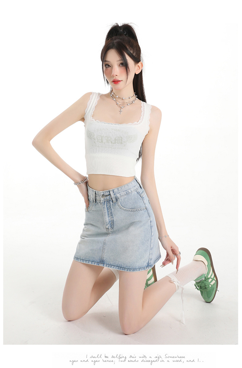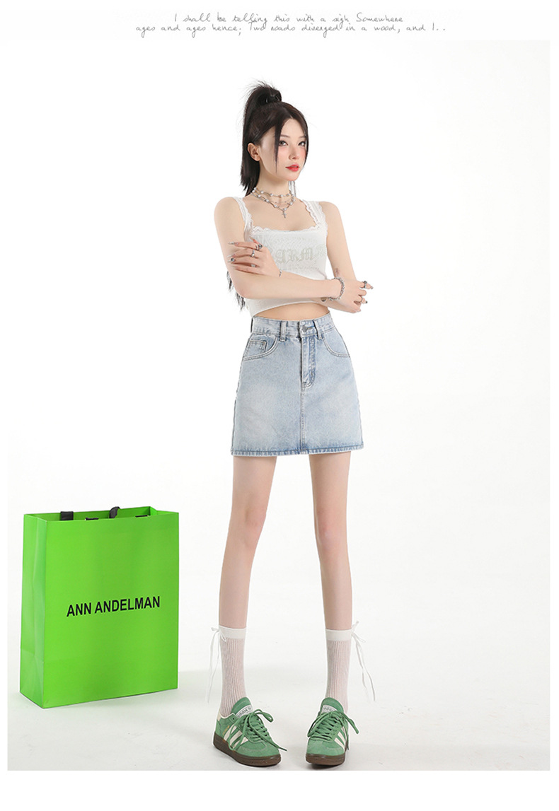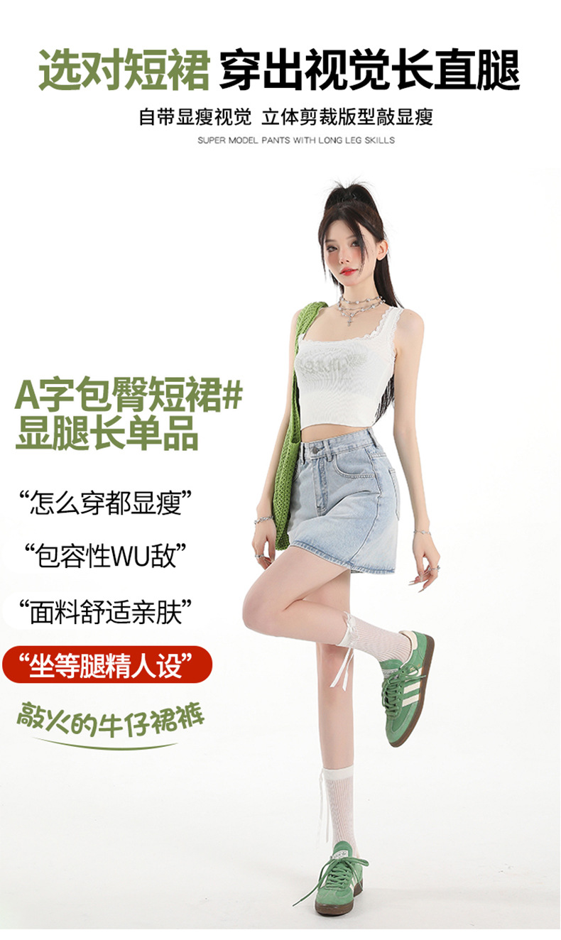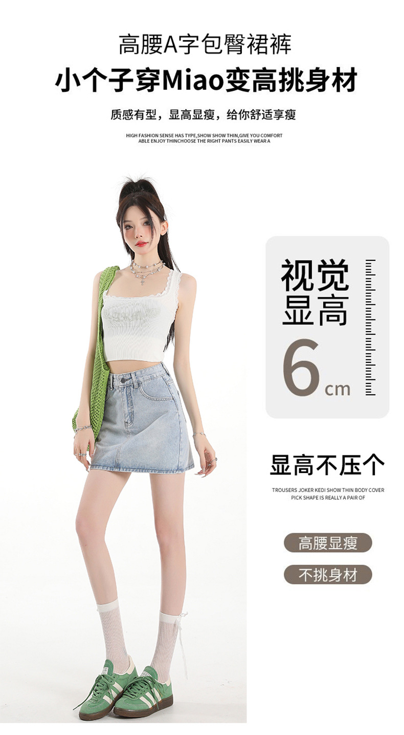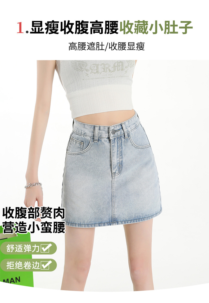 여성을위한 자수 데님 스커트 2025 여름 새로운 스타일 노출 방지 다목적 a 라인 안감 슬리밍 힙 스커트 핫 소녀