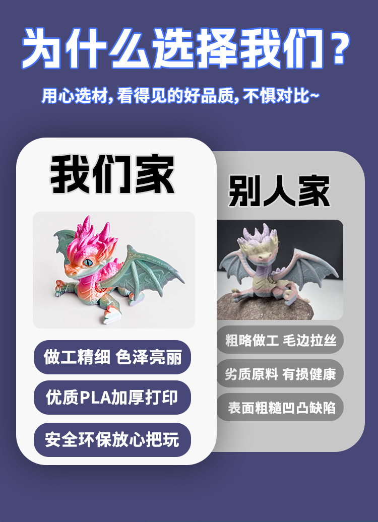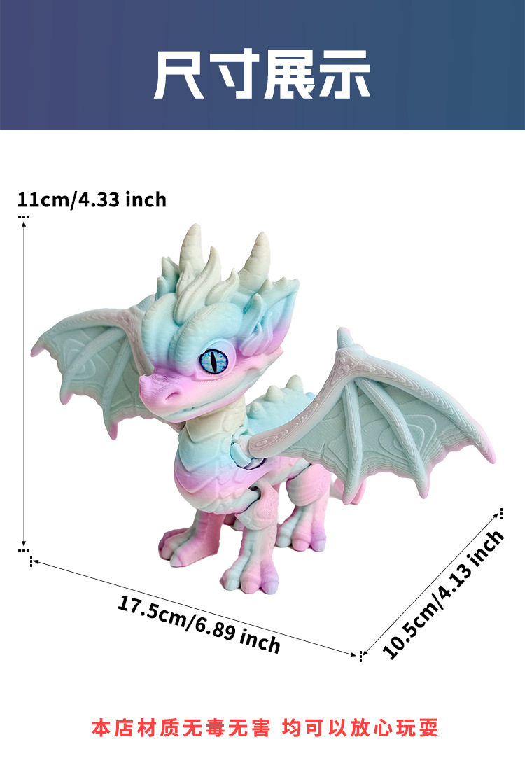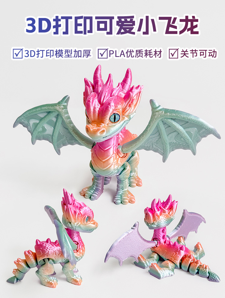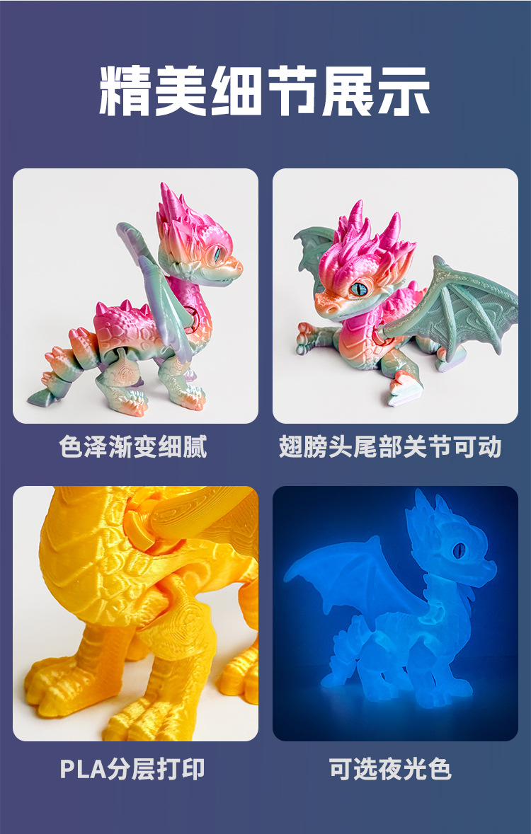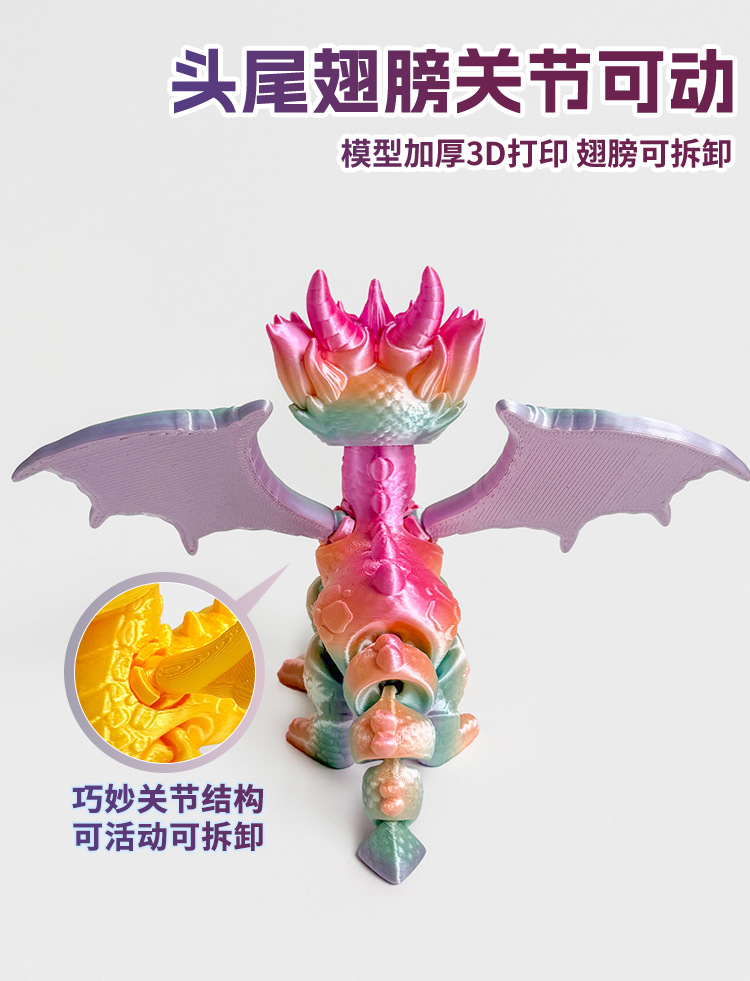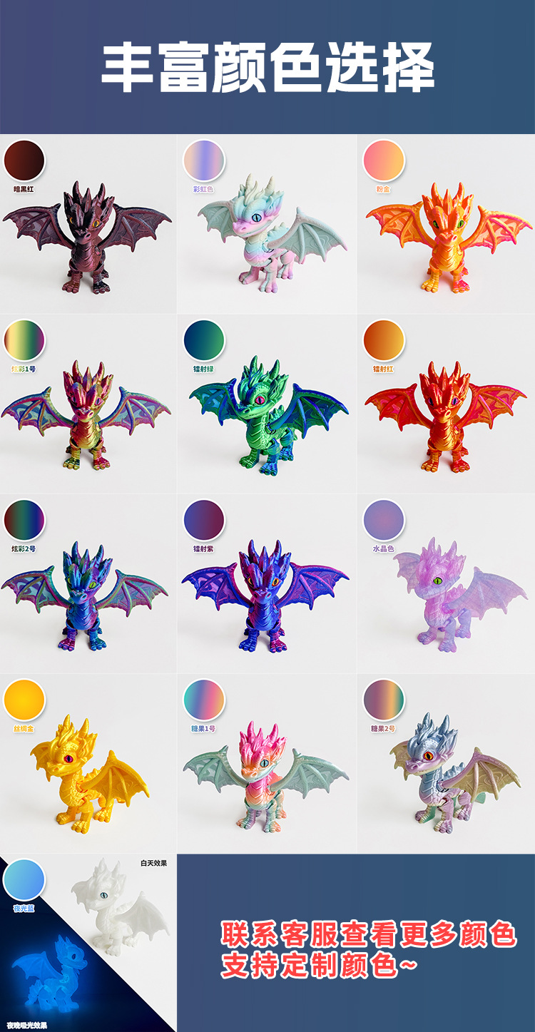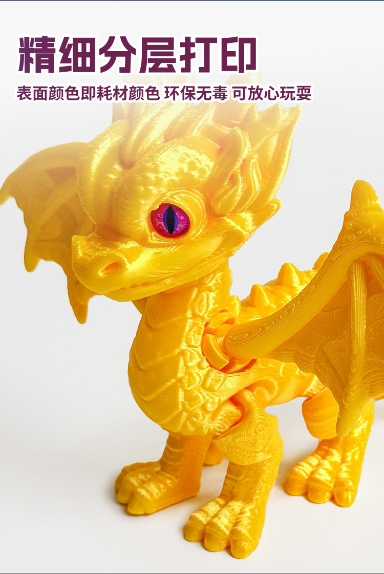 3D 인쇄 서부 용 작은 드래곤 조인트는 국경 간 뜨거운 장난감 모델 장식품 야시장 포장 도매 이동할 수 있습니다