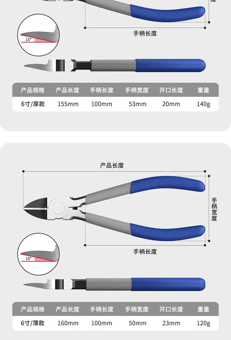 스파우트 플라이어, 고경도 모델 커터, 8inch 대각선 플라이어, 산업용 등급 6inch 대각선 노즐, 전기 기술자를 위한 편향 플라이어