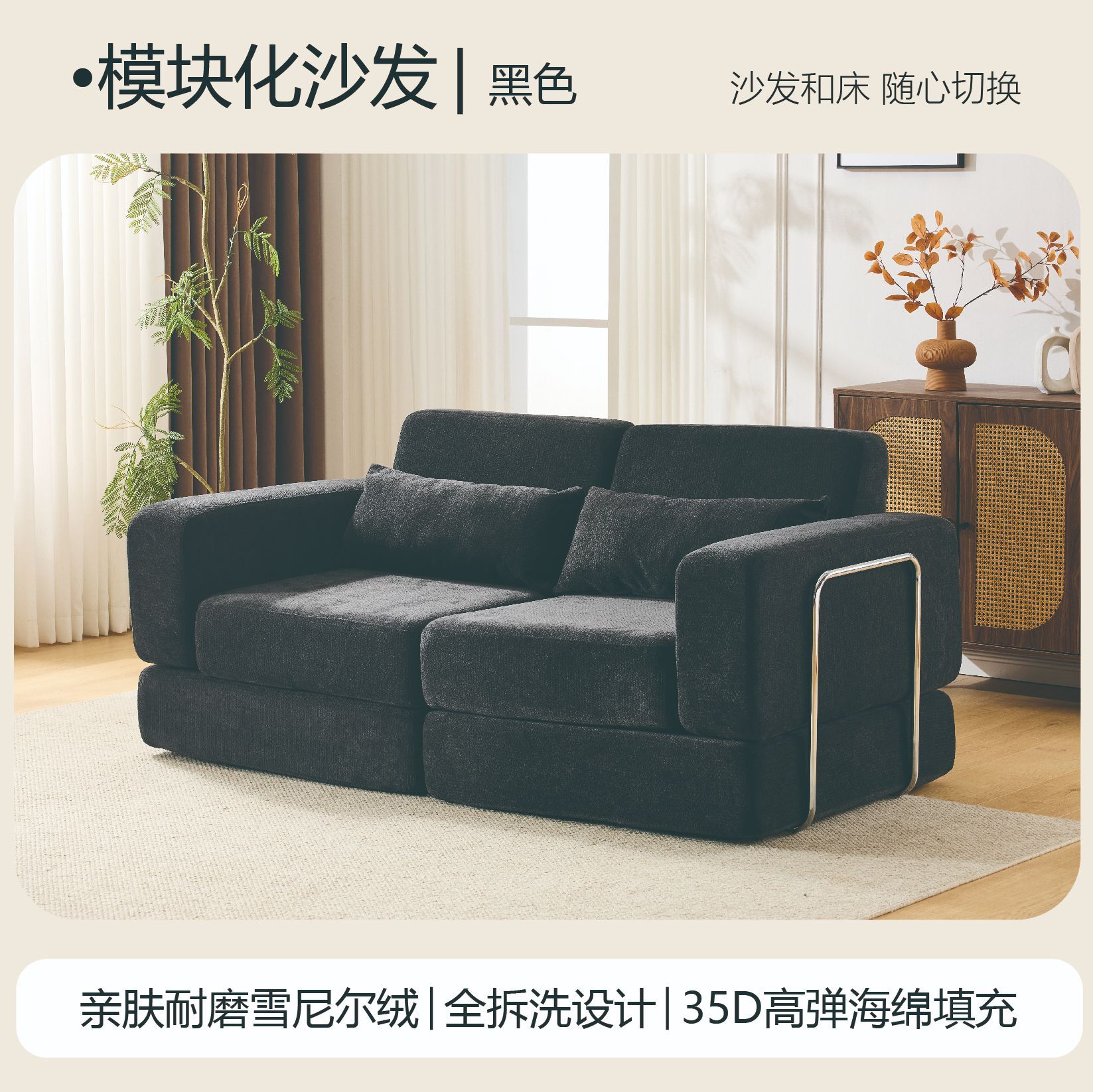 • 클래식 블랙 - 피부 친화적이고 내마모성이 뛰어난 셔닐 벨벳