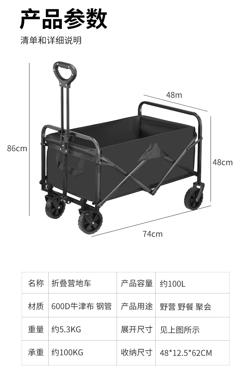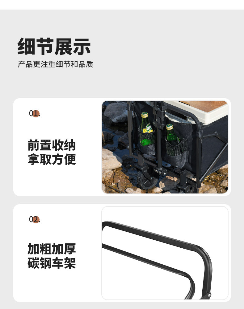 ✅ 야외 캠핑카 바퀴 탈착식 캠핑카 카트 휴대용 캠핑 접이식 카트 피크닉 트롤리