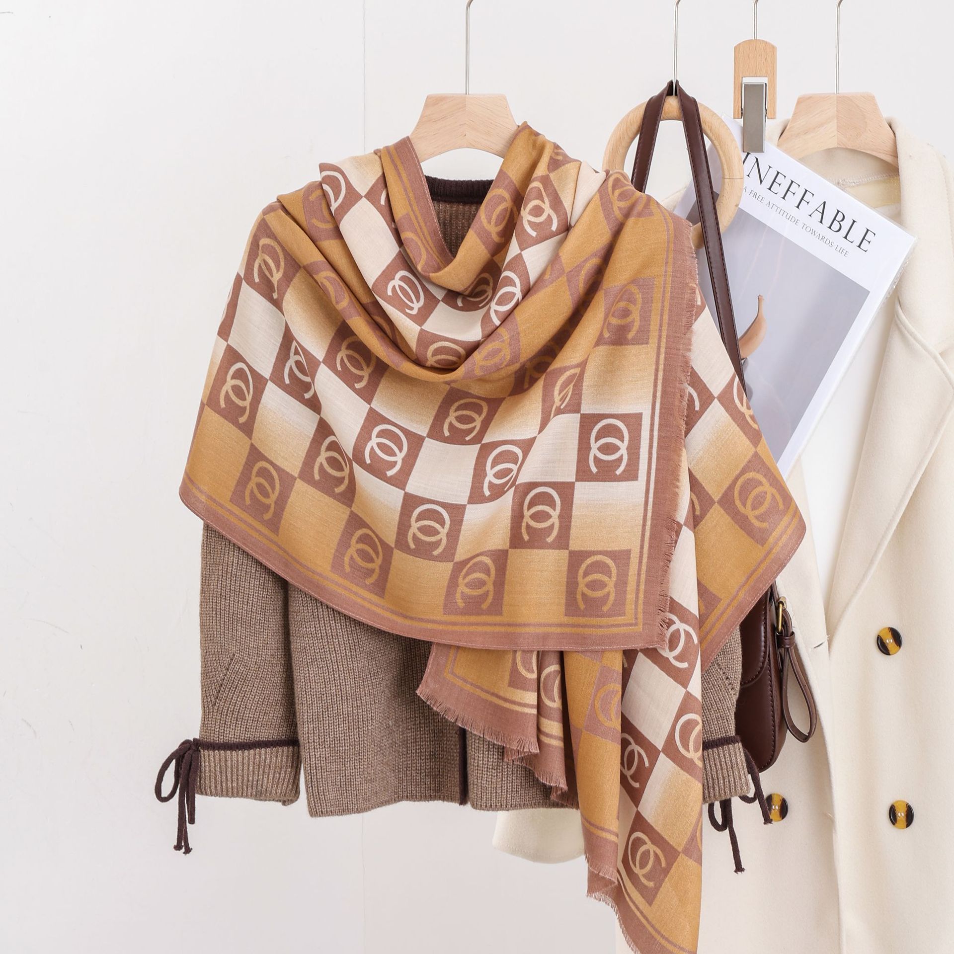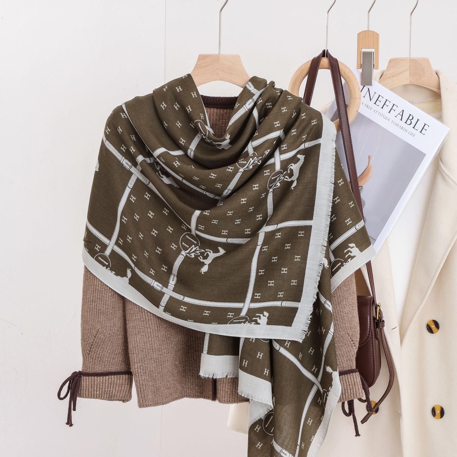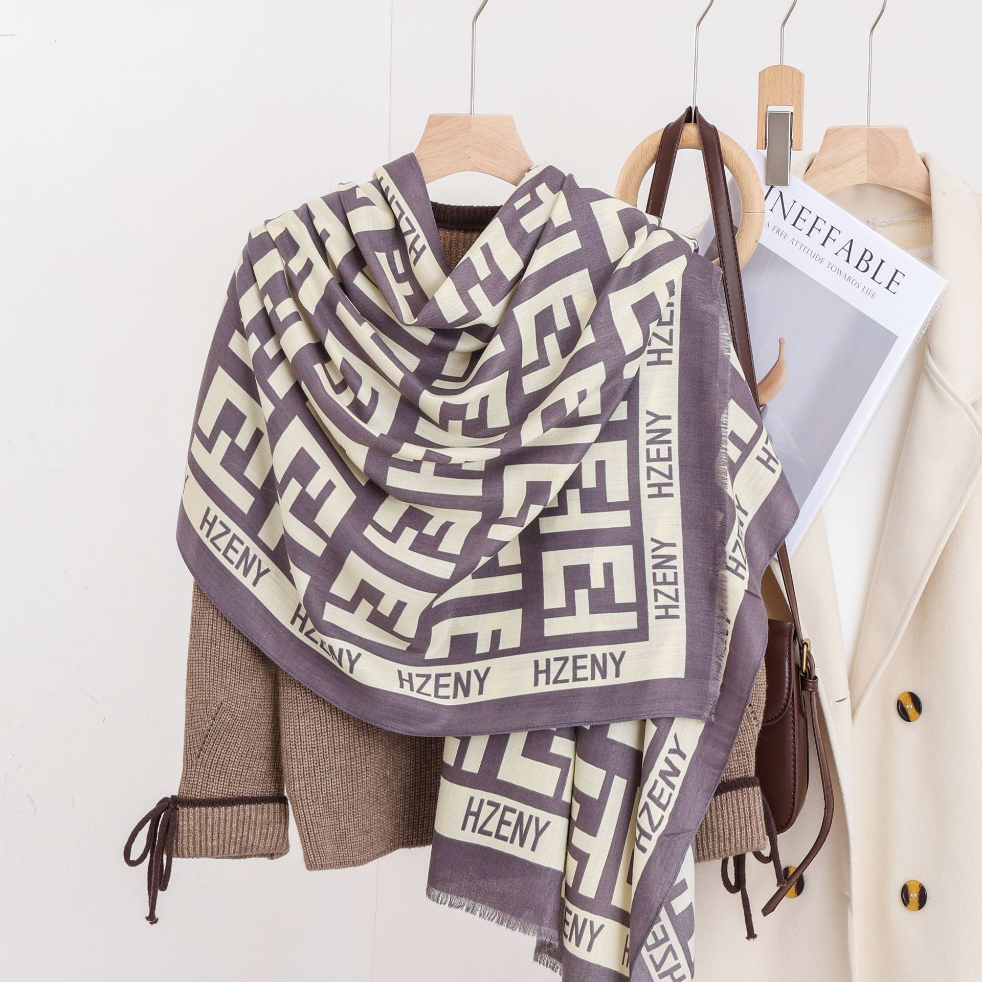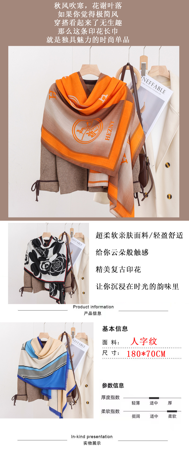 패션 헤링본 프린트 긴 스카프 가을과 겨울 부드러운 피부 친화적 인 목도리 숙녀 올 매치 따뜻한 스카프 대외 무역스토어 가기
