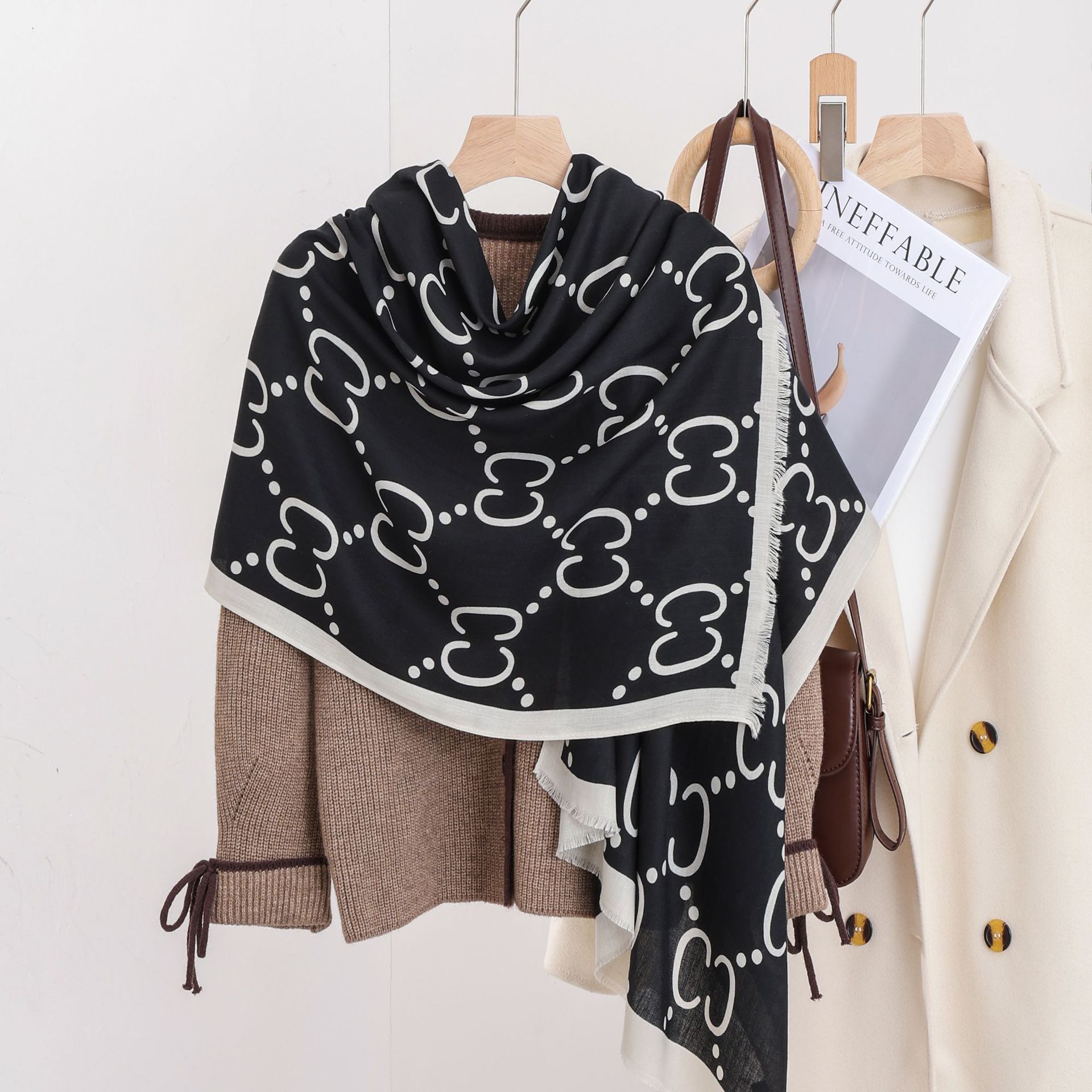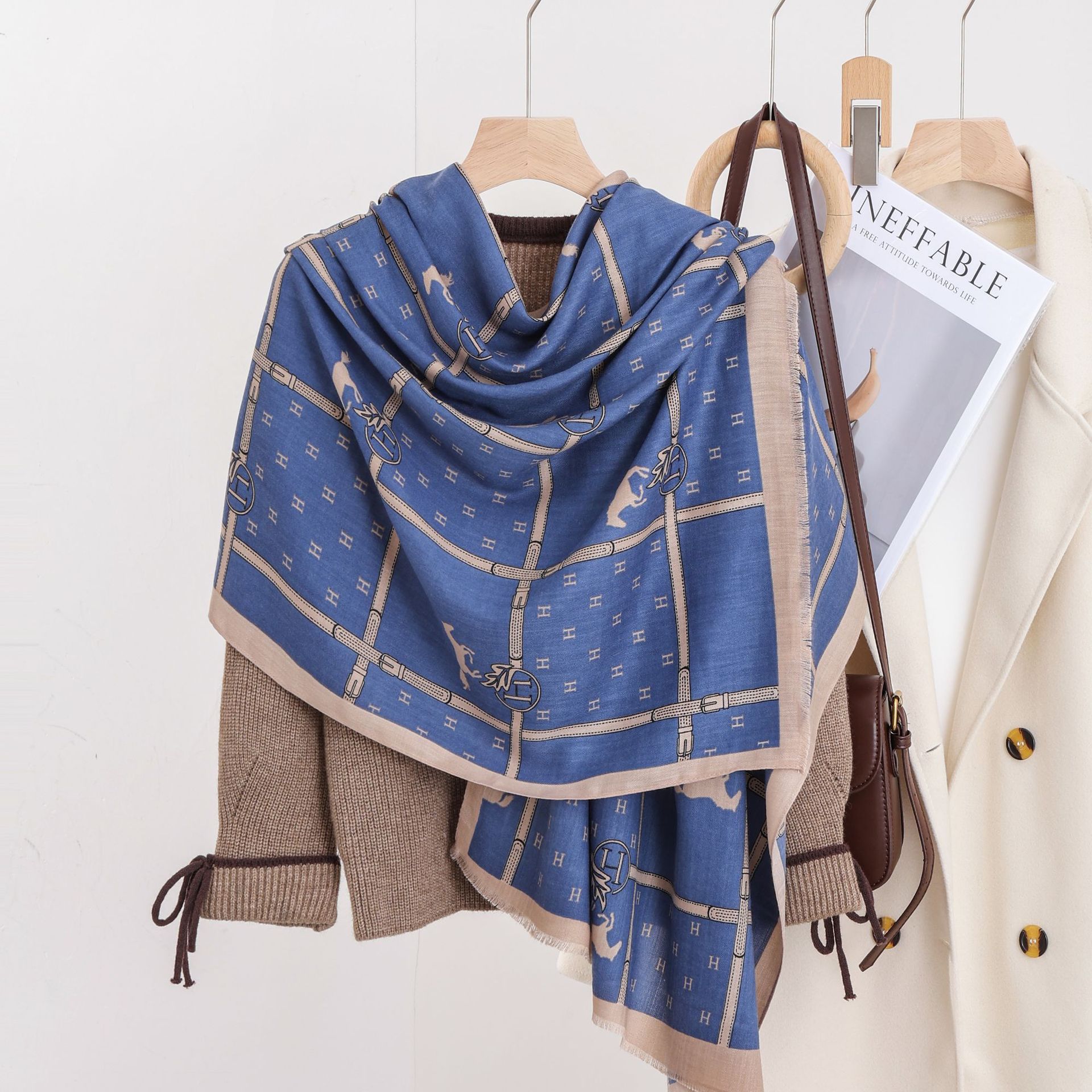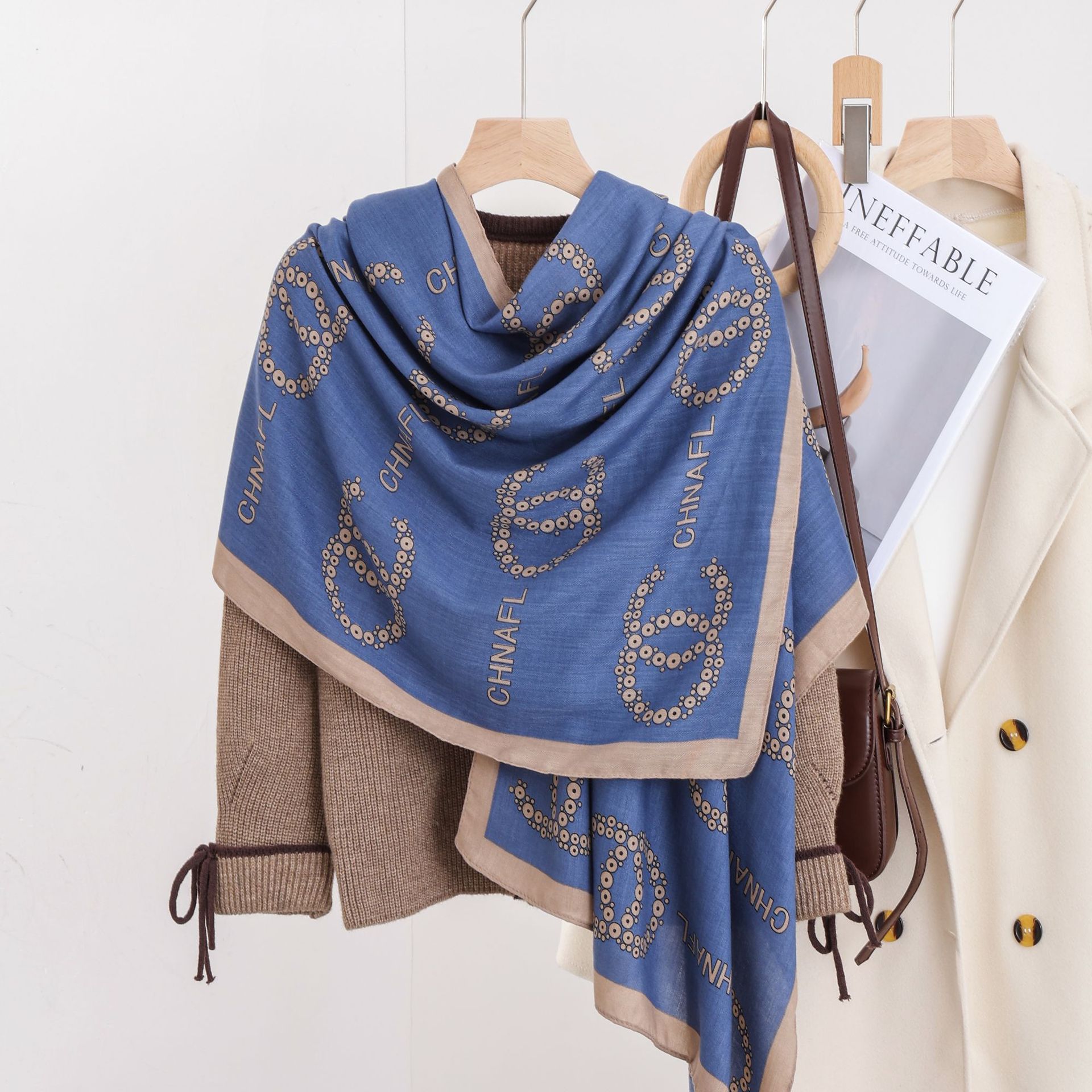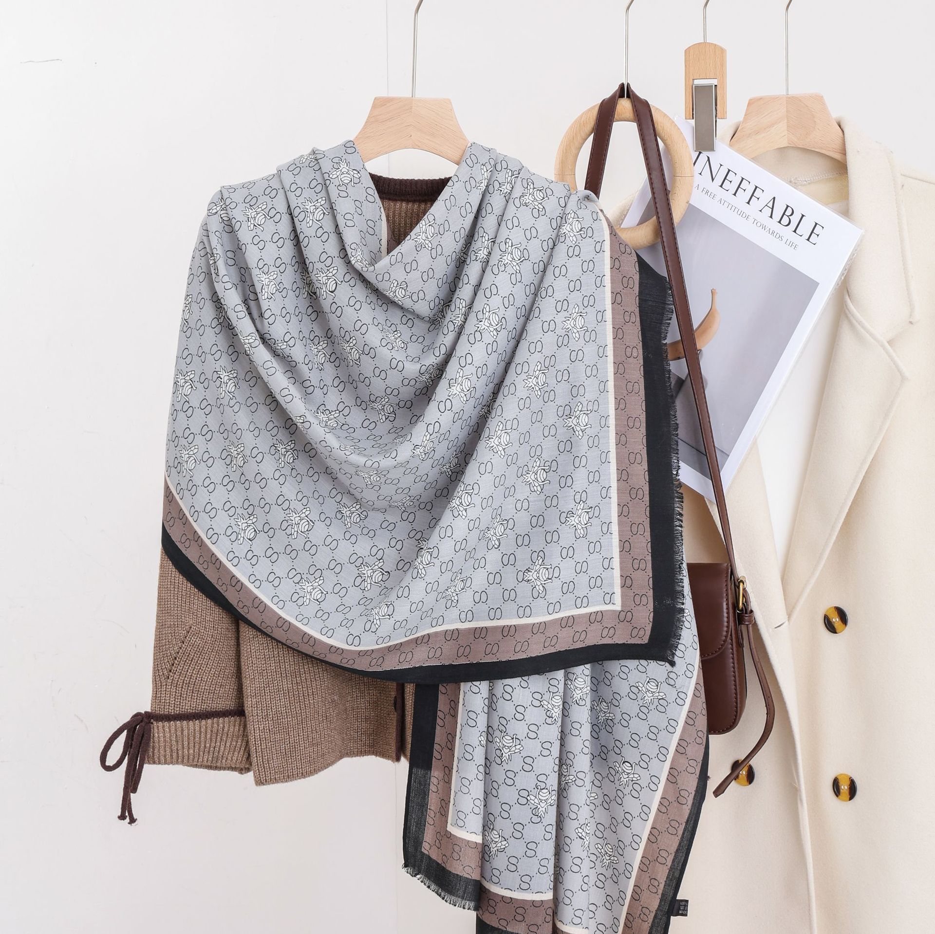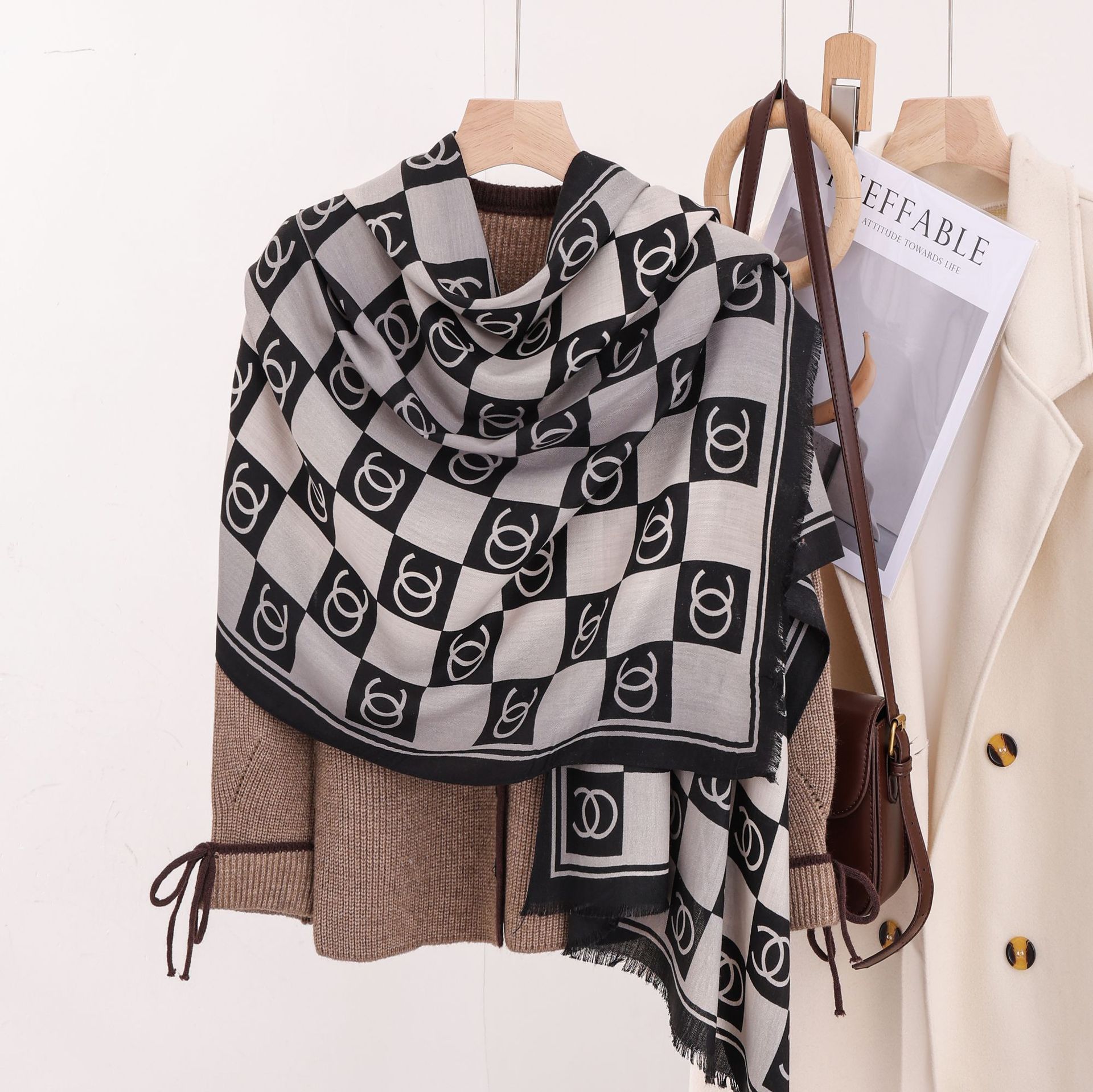 패션 헤링본 프린트 긴 스카프 가을과 겨울 부드러운 피부 친화적 인 목도리 숙녀 올 매치 따뜻한 스카프 대외 무역스토어 가기