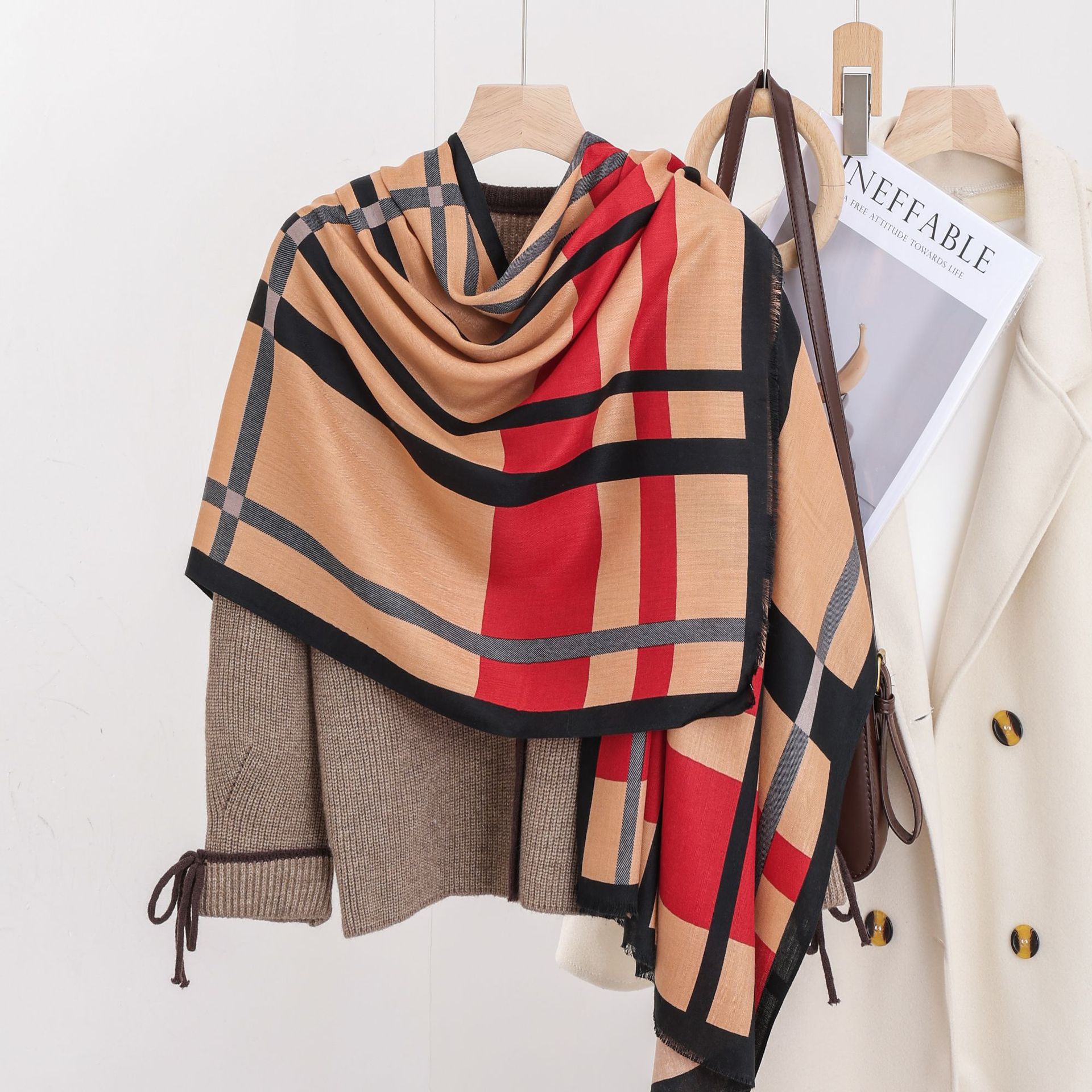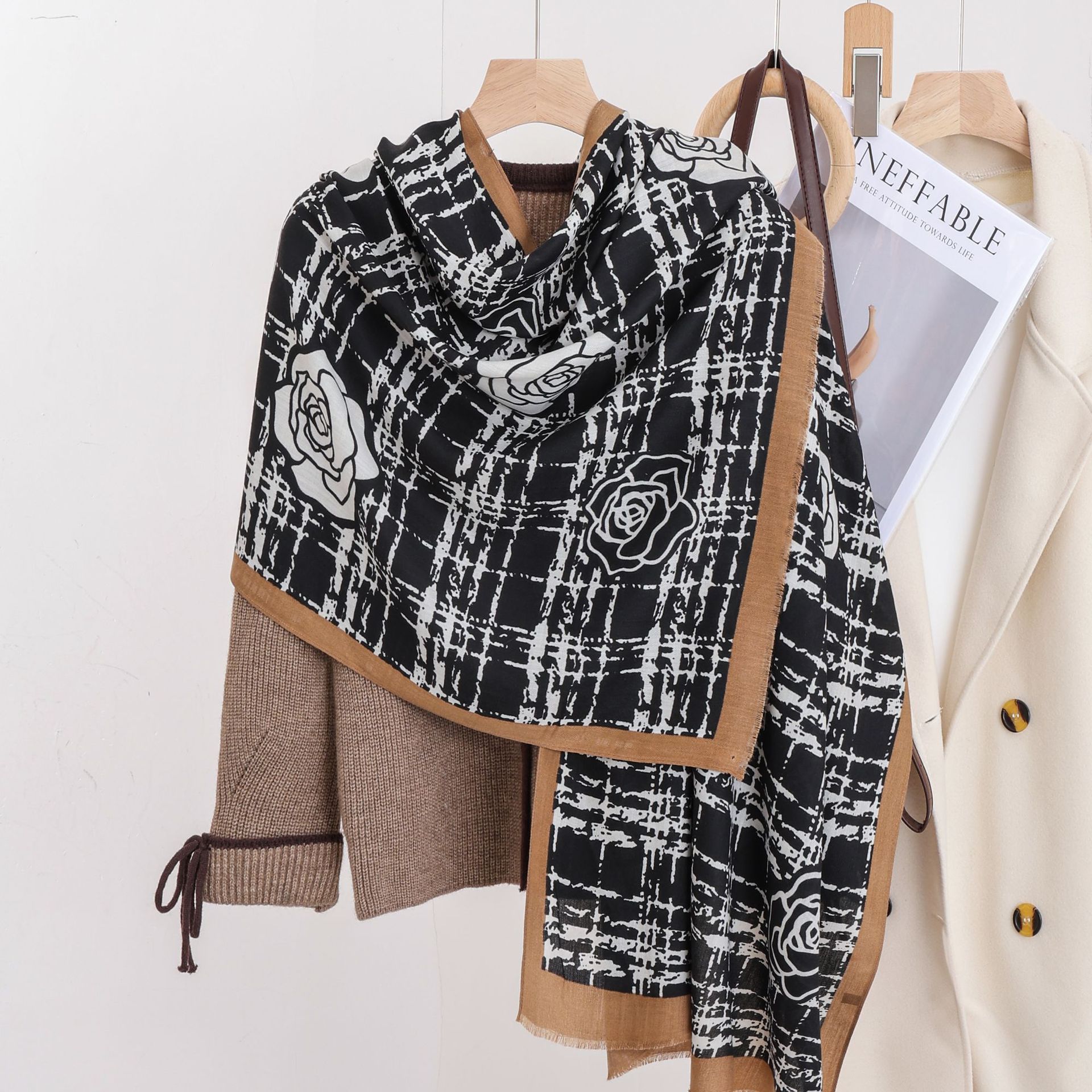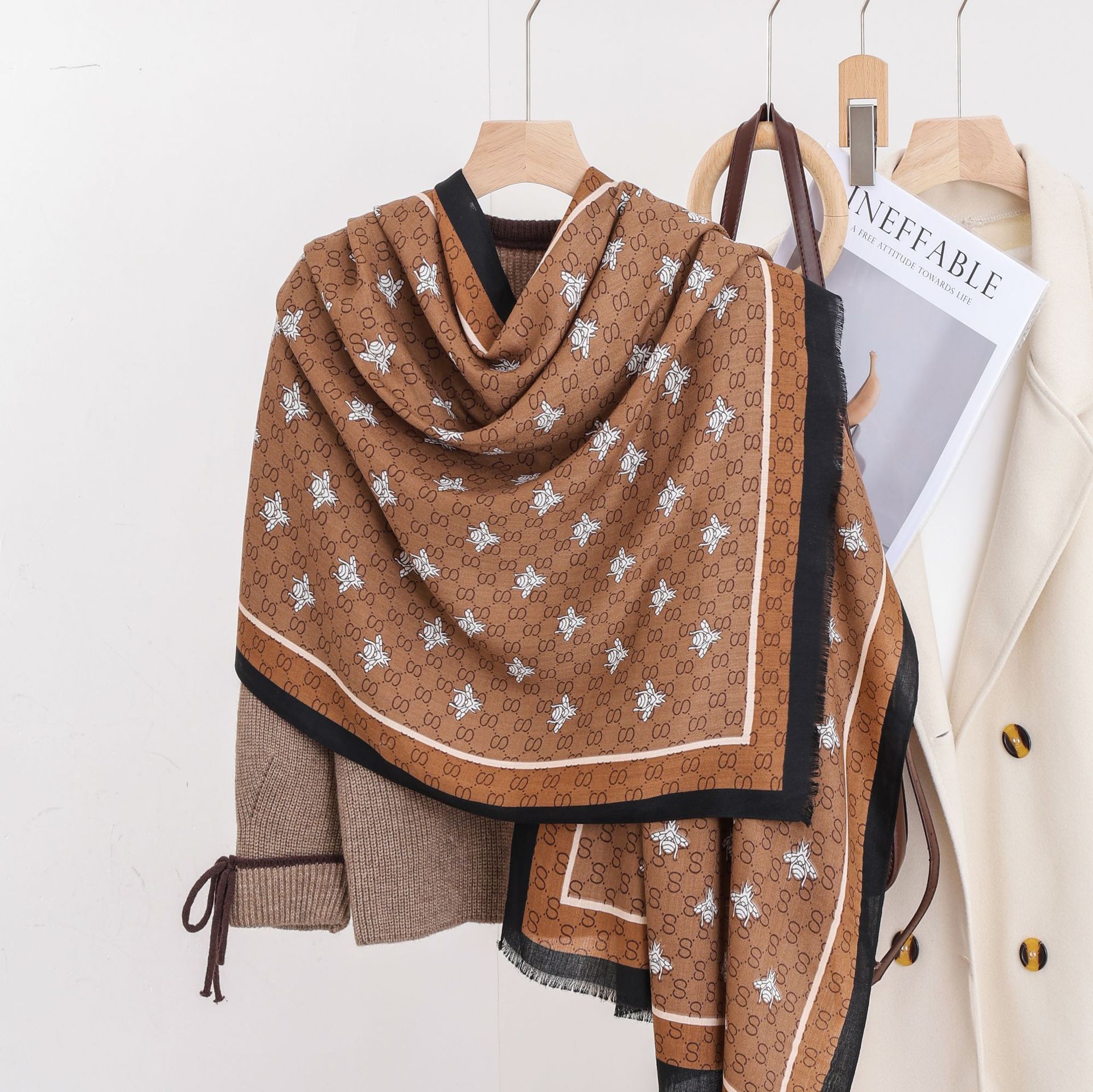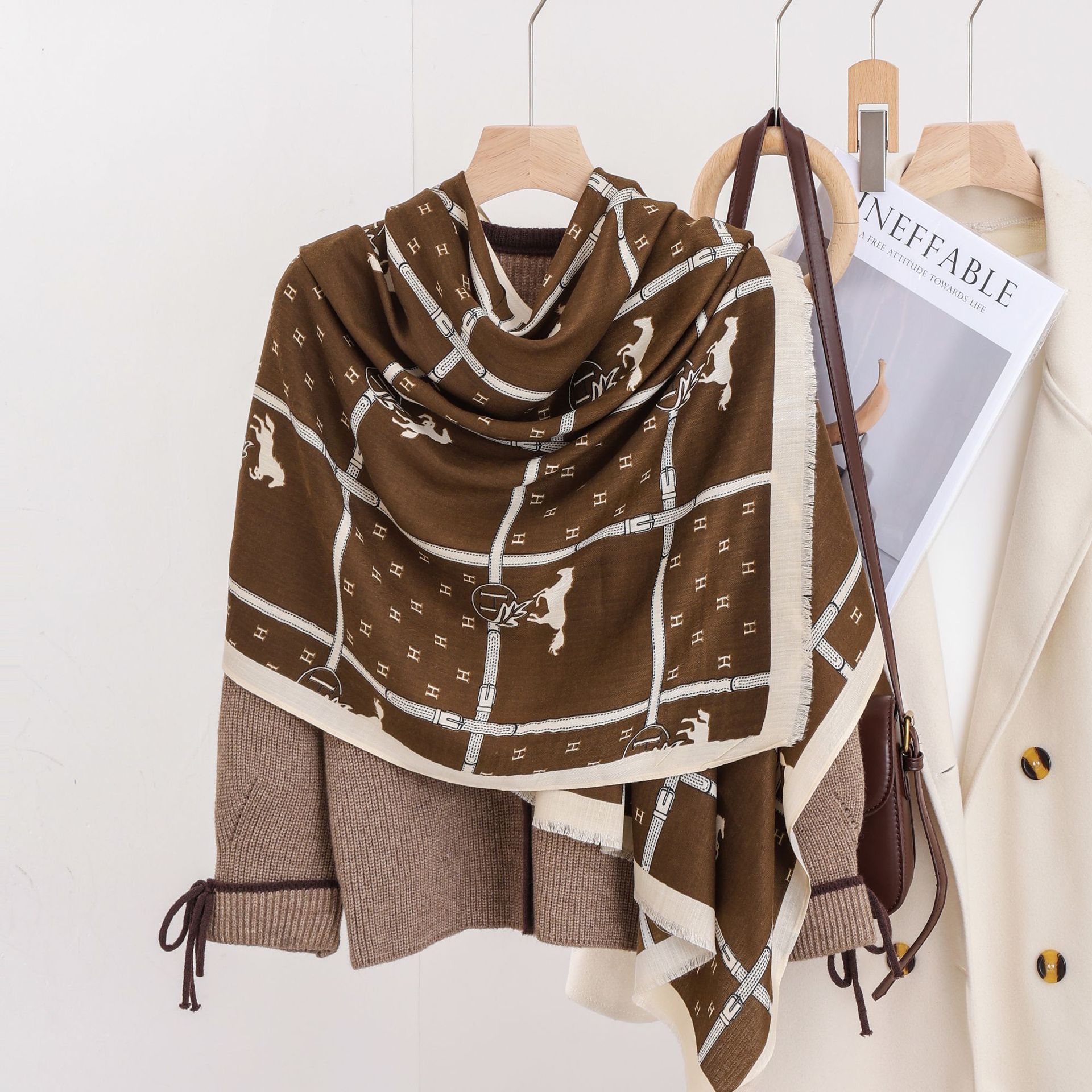 패션 헤링본 프린트 긴 스카프 가을과 겨울 부드러운 피부 친화적 인 목도리 숙녀 올 매치 따뜻한 스카프 대외 무역스토어 가기