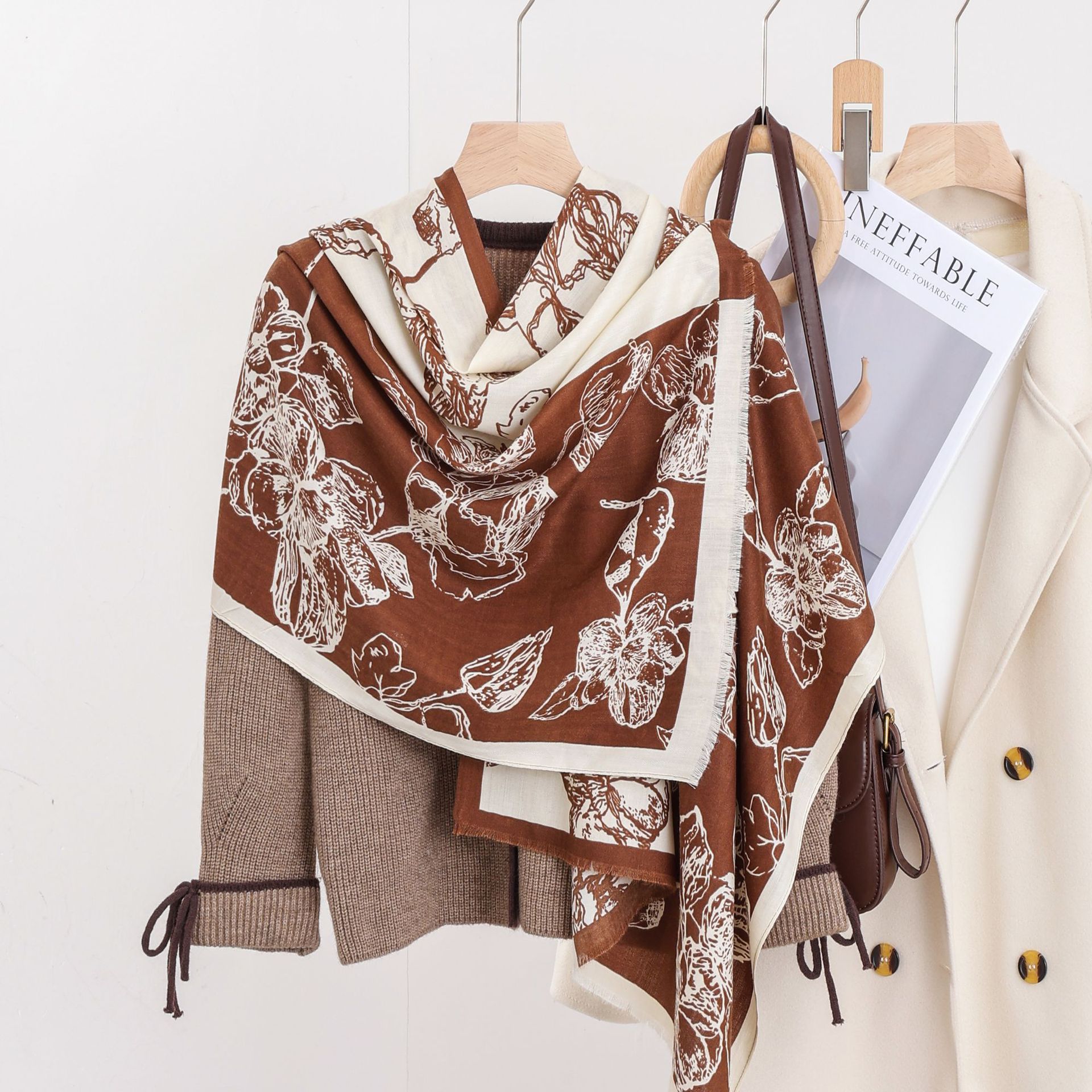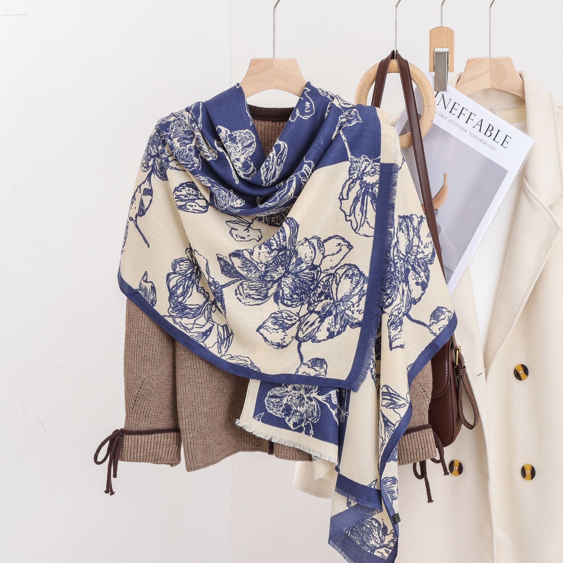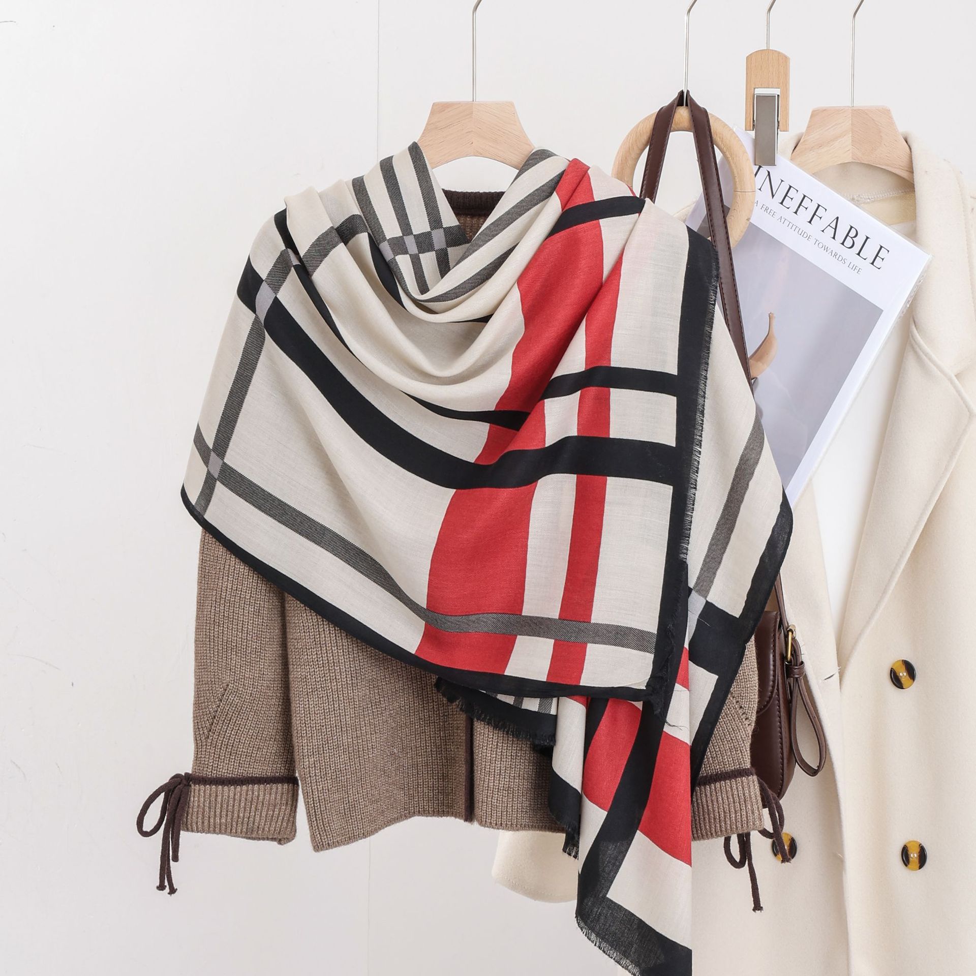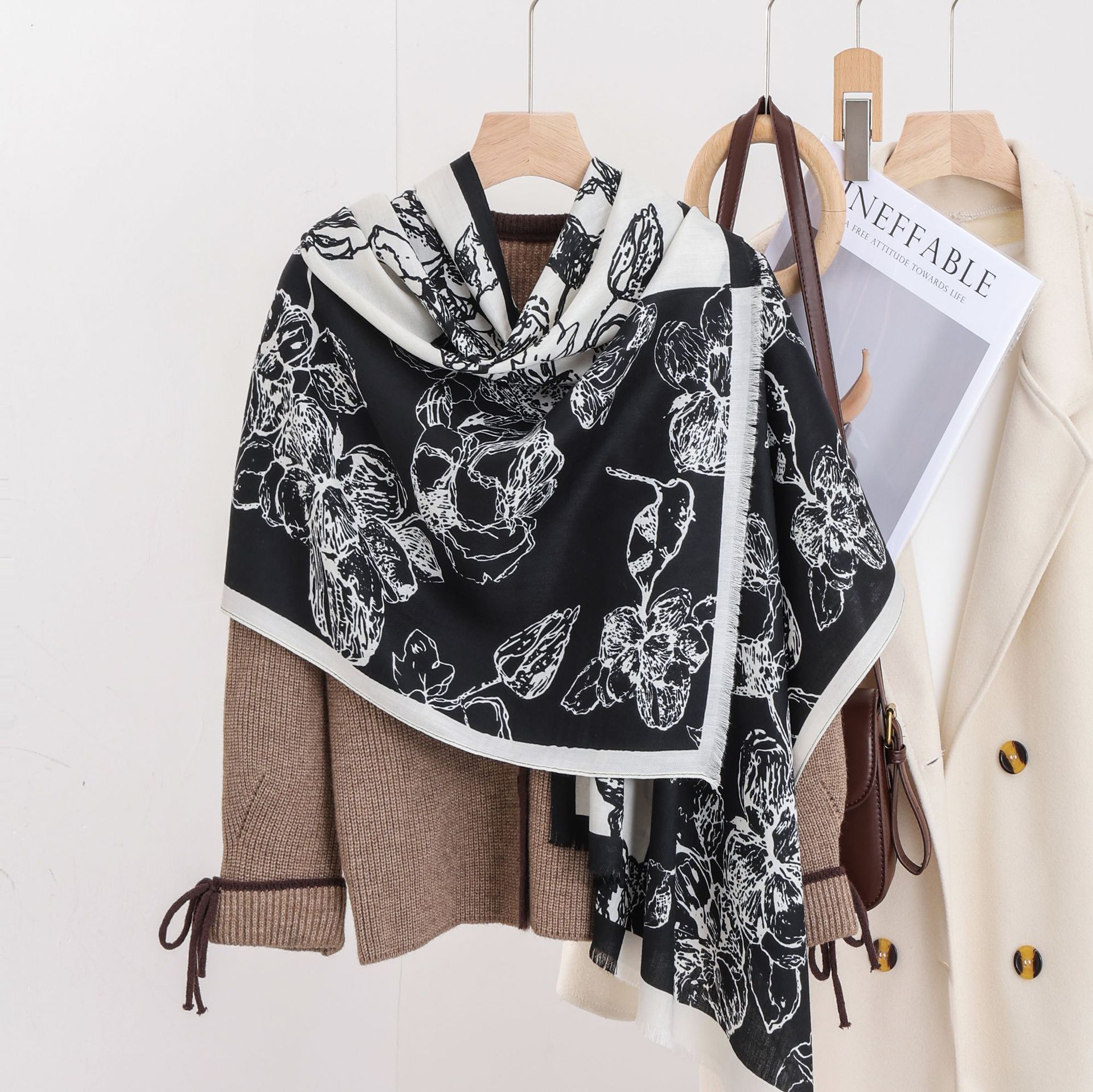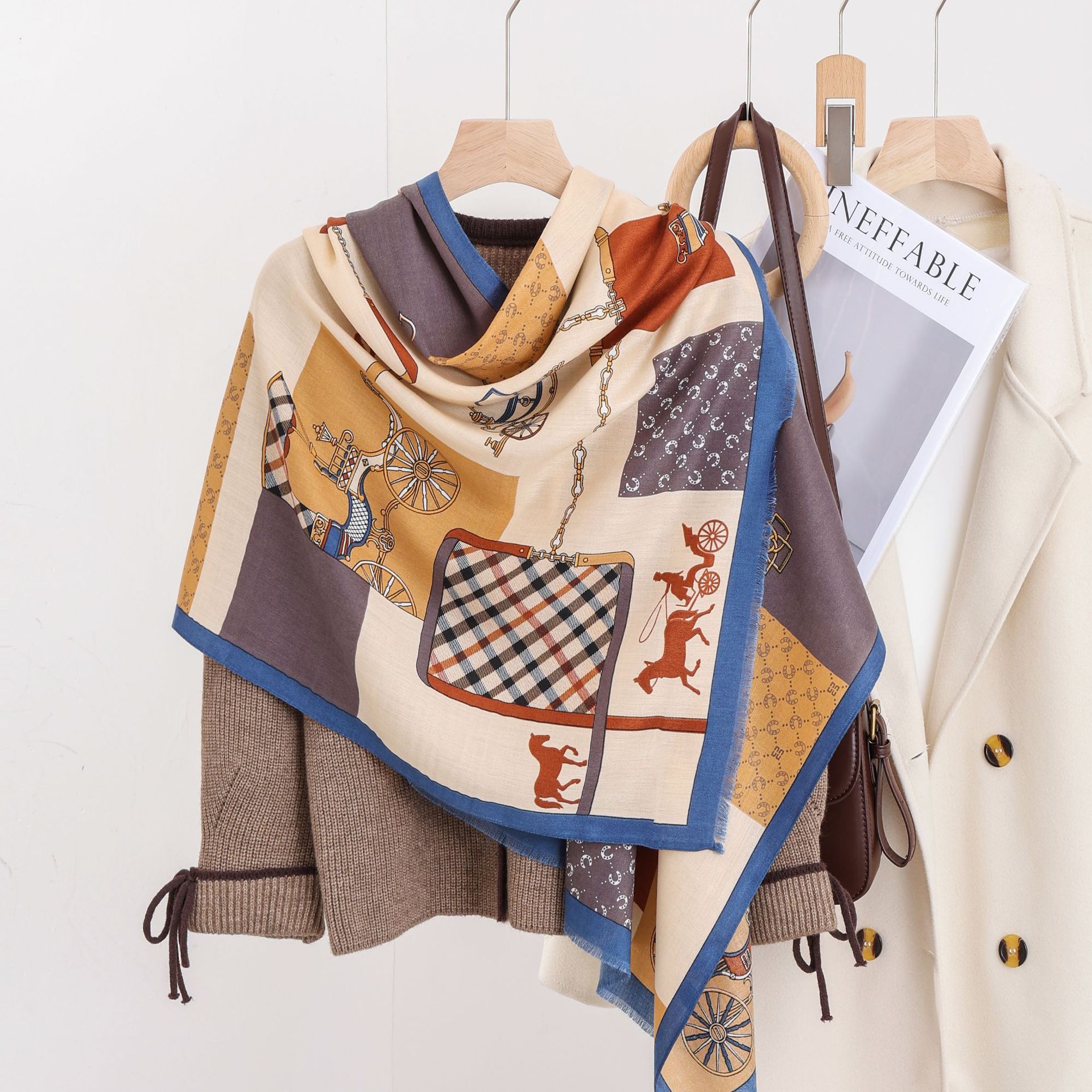 패션 헤링본 프린트 긴 스카프 가을과 겨울 부드러운 피부 친화적 인 목도리 숙녀 올 매치 따뜻한 스카프 대외 무역스토어 가기