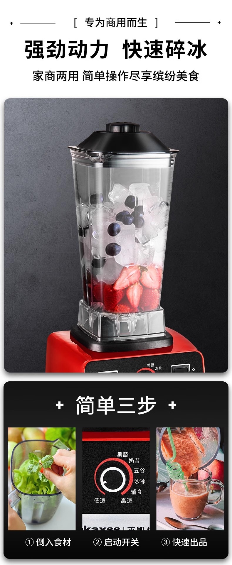 • [얼음을 부수는 3초] [무료 교반봉] 3000 상업용 업그레이드 고마력 모델 [강력 추천]