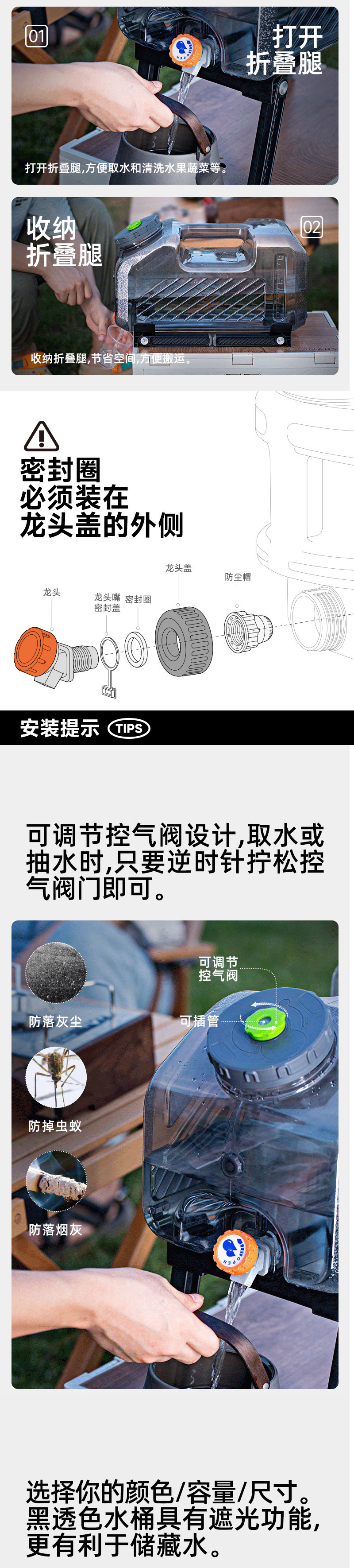 수도꼭지가 달린 야외 양동이 자동차 대용량 양동이 식수 빈 양동이 가정용 물 저장 양동이 미네랄 워터 대형 양동이