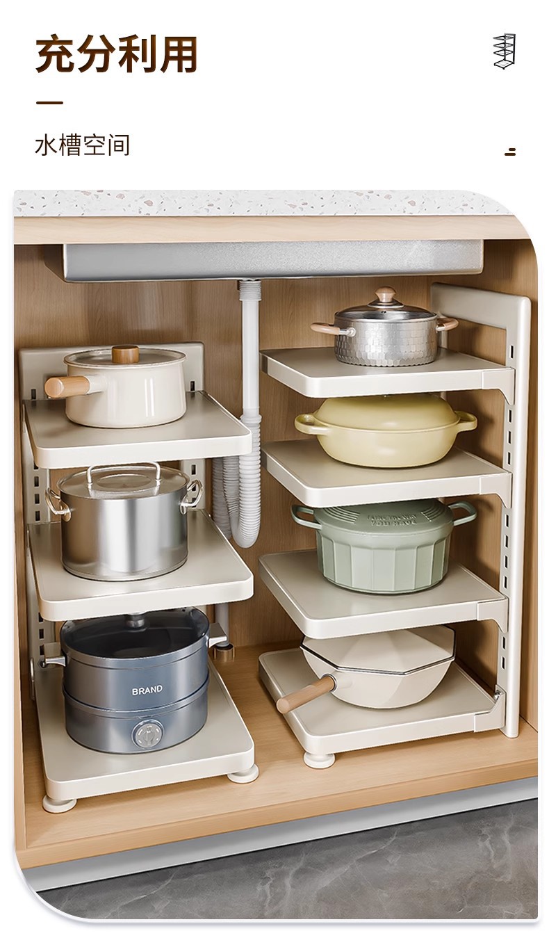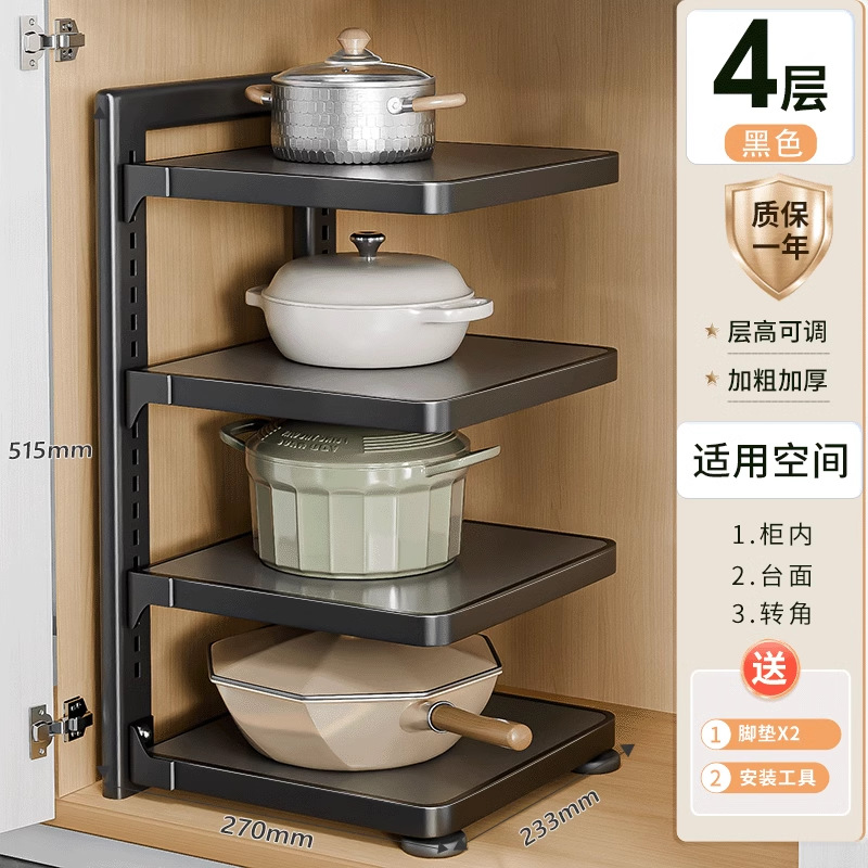 최고의 도우미 주방 수납 선반, 바닥에서 천장까지 놓을 수 있는 냄비 수납 선반, 주방 가정용 계층형 냄비 선반, 싱크대 아래 냄비 선반