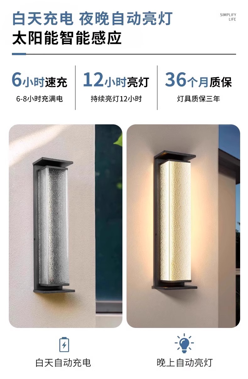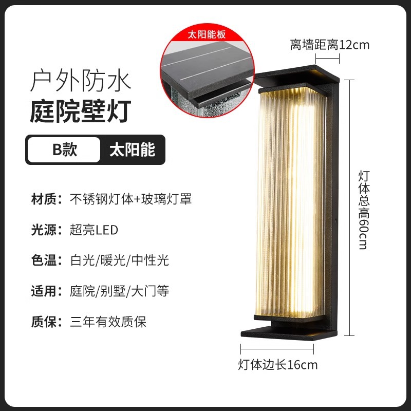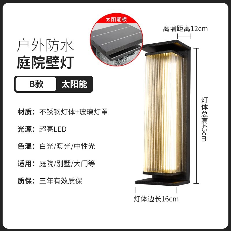 야외 태양광 벽등, 심플하고 모던한 야외 정원 발코니등, 빌라 대문 기둥등, 방수 외벽등