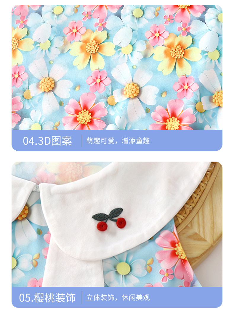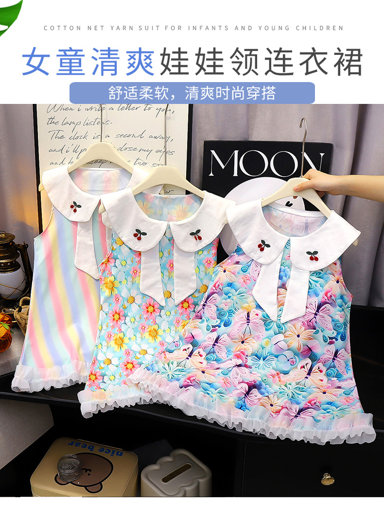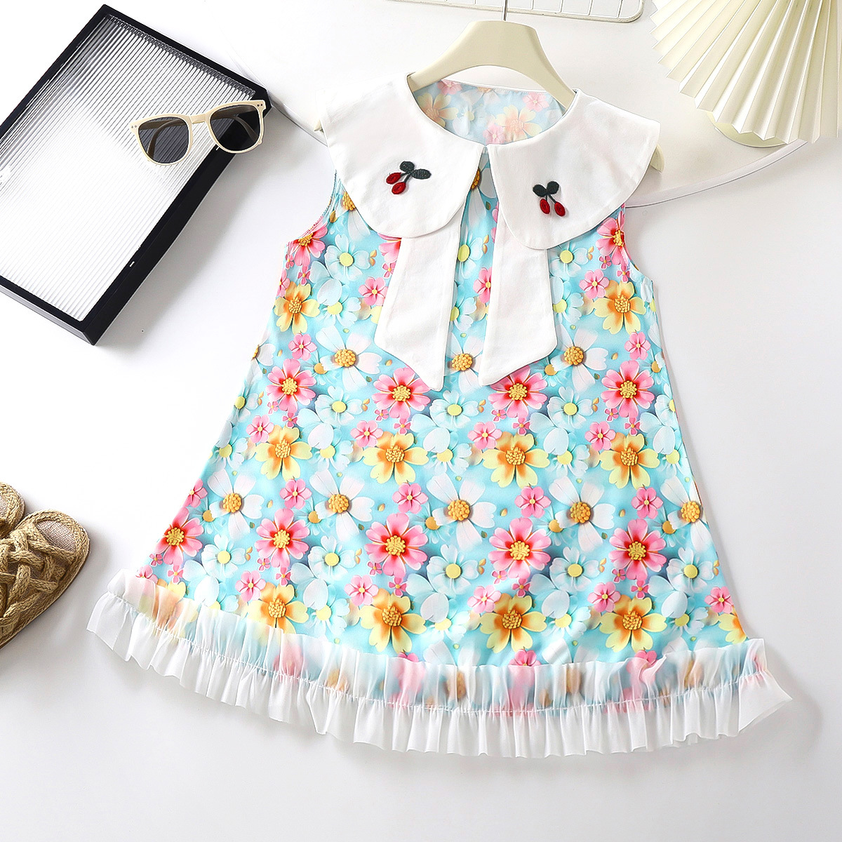 2025 새로운 어린이 원피스 여름 소녀 인형 칼라 꽃 공주 원피스 3D 패턴 신선한 민소매 단어스토어 가기