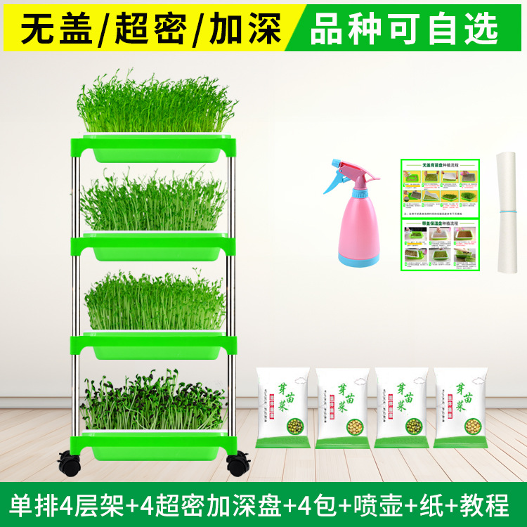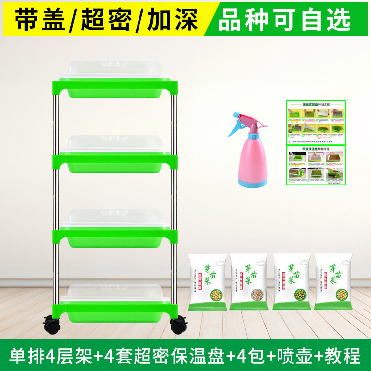 • 1열 4단 선반 + [뚜껑이 있는 접시 4세트 + 콩 4봉지 + 물뿌리개]
