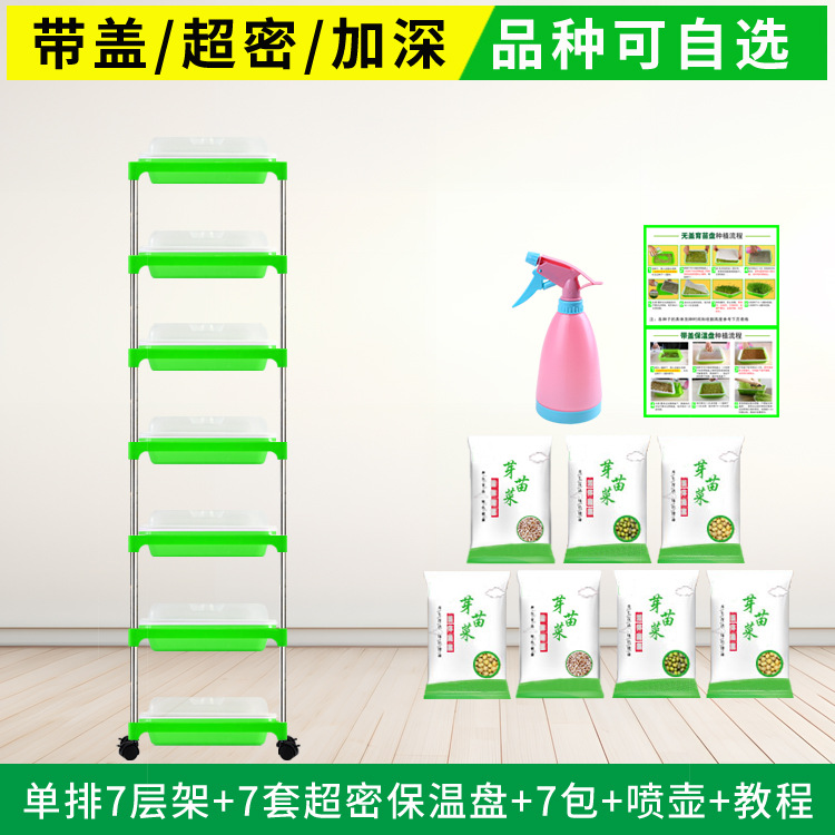 • 1열 7단 선반 + [뚜껑이 있는 접시 7세트 + 콩 7봉지 + 물뿌리개]