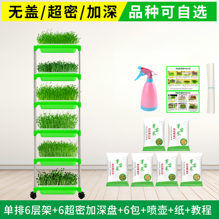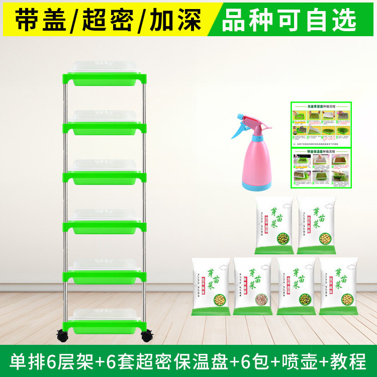 • 1열 6단 선반 + [뚜껑이 있는 접시 6세트 + 콩 6봉지 + 물뿌리개]