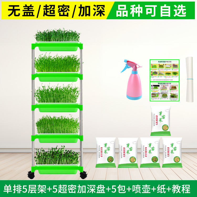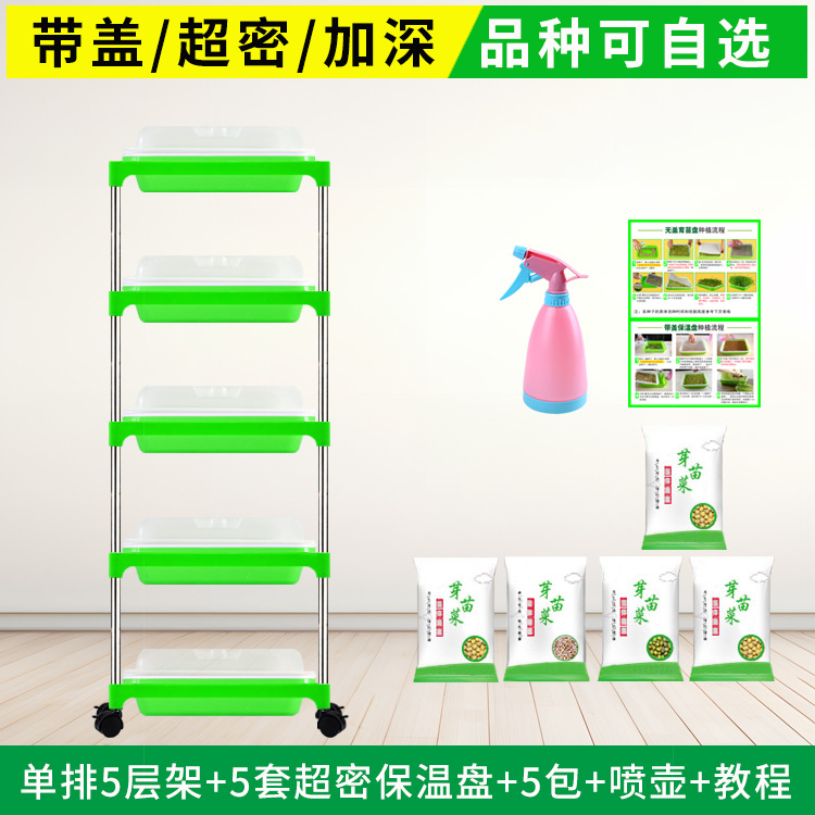 • 1열 5단 선반 + [뚜껑이 있는 접시 5세트 + 콩 5봉지 + 물뿌리개]