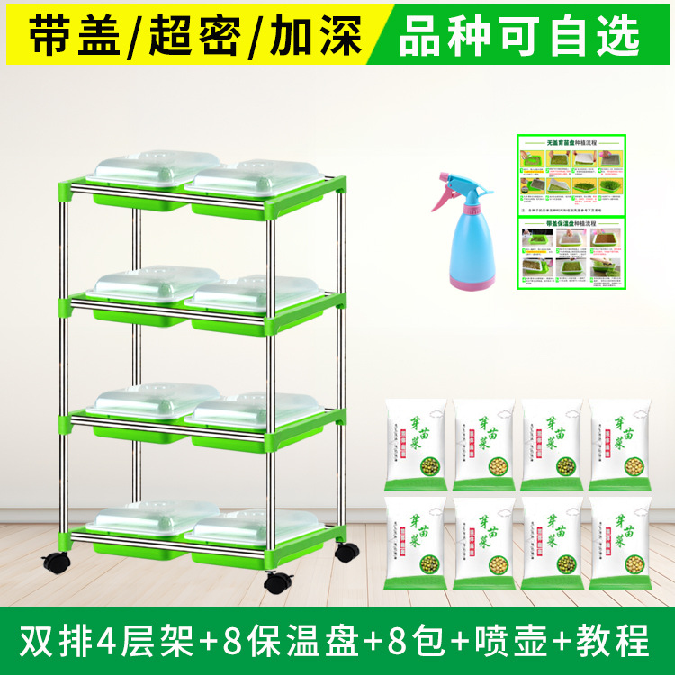 • 2열 4단 선반 + [뚜껑이 있는 접시 8세트 + 콩 8봉지 + 물뿌리개]