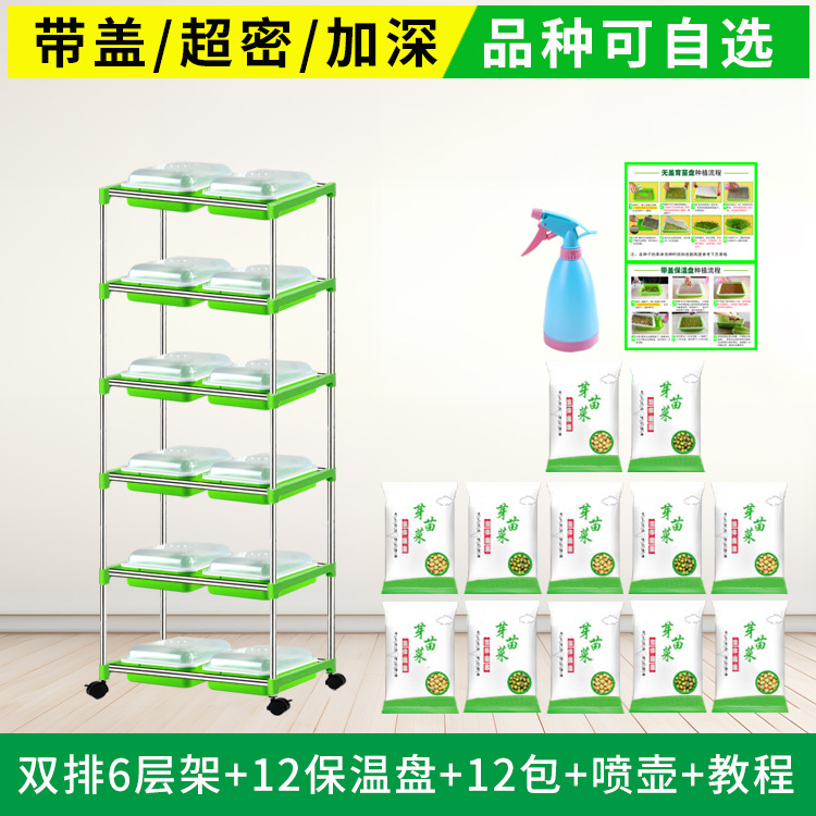 • 2열 6단 선반 + [뚜껑 포함 트레이 12세트 + 콩 12봉지 + 물뿌리개]