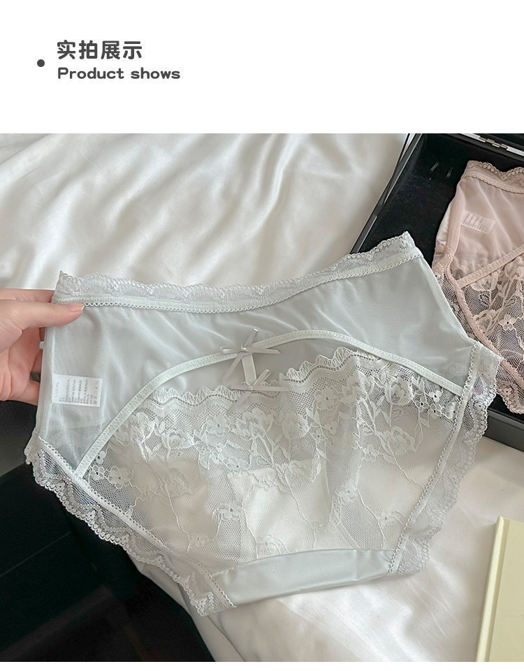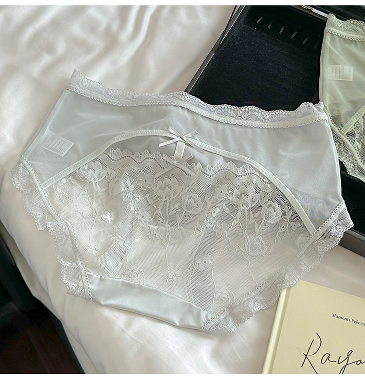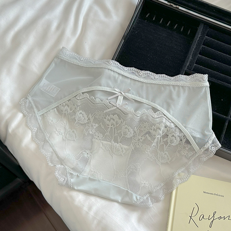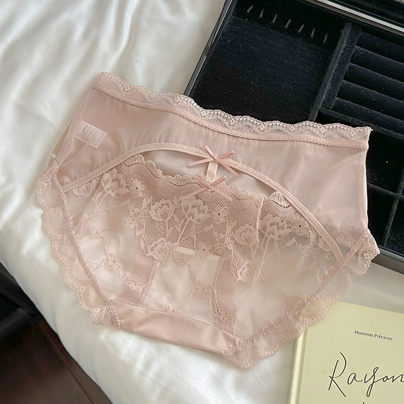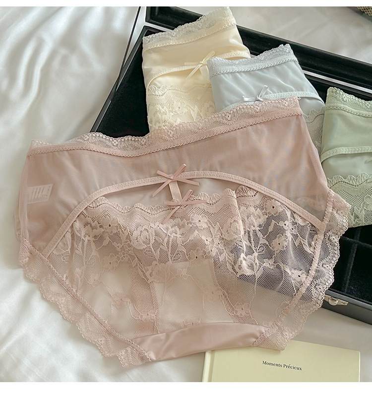Ins 순수하고 낭만적 인 ~ 소녀를위한 프랑스 레이스 속옷 섹시한 순수한 욕망 편안한 뽕나무 실크 가랑이 여성용 중간 허리 팬티