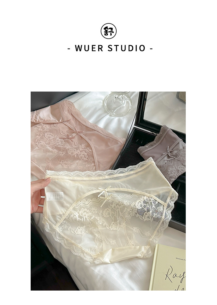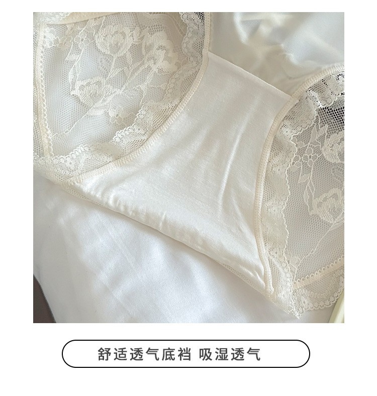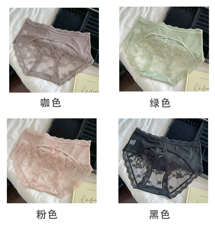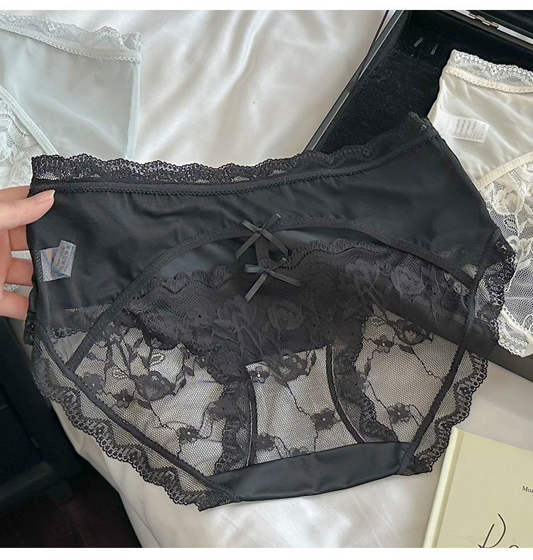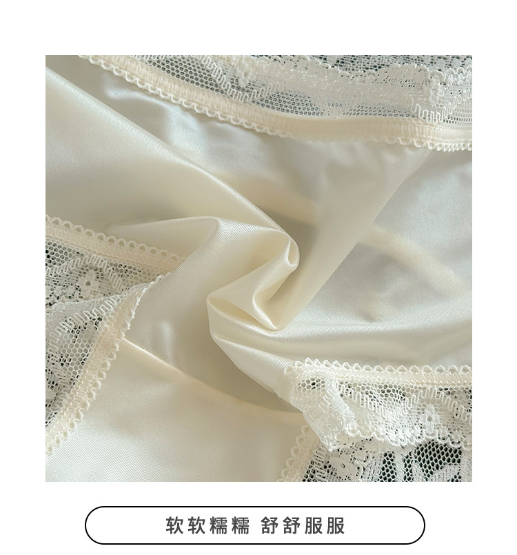 Ins 순수하고 낭만적 인 ~ 소녀를위한 프랑스 레이스 속옷 섹시한 순수한 욕망 편안한 뽕나무 실크 가랑이 여성용 중간 허리 팬티