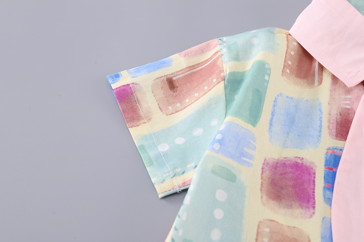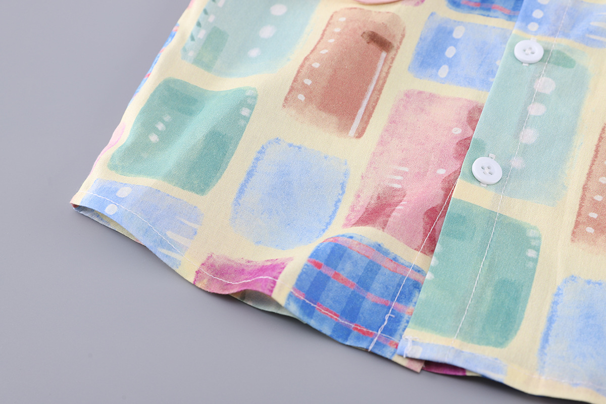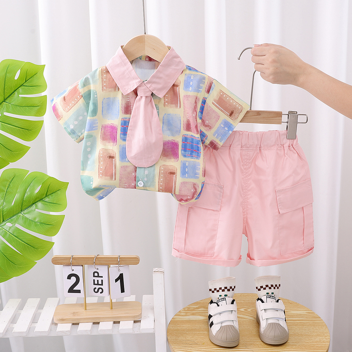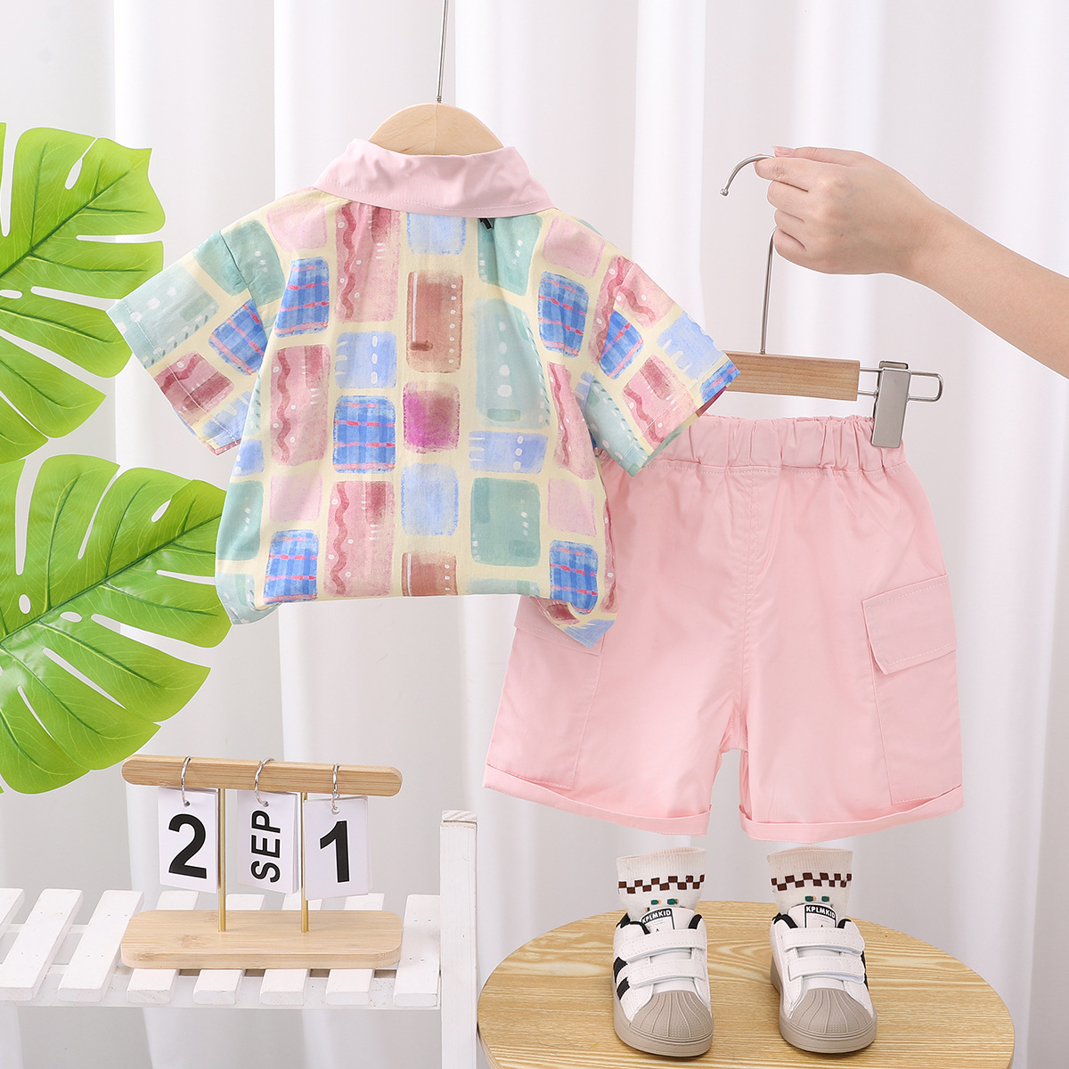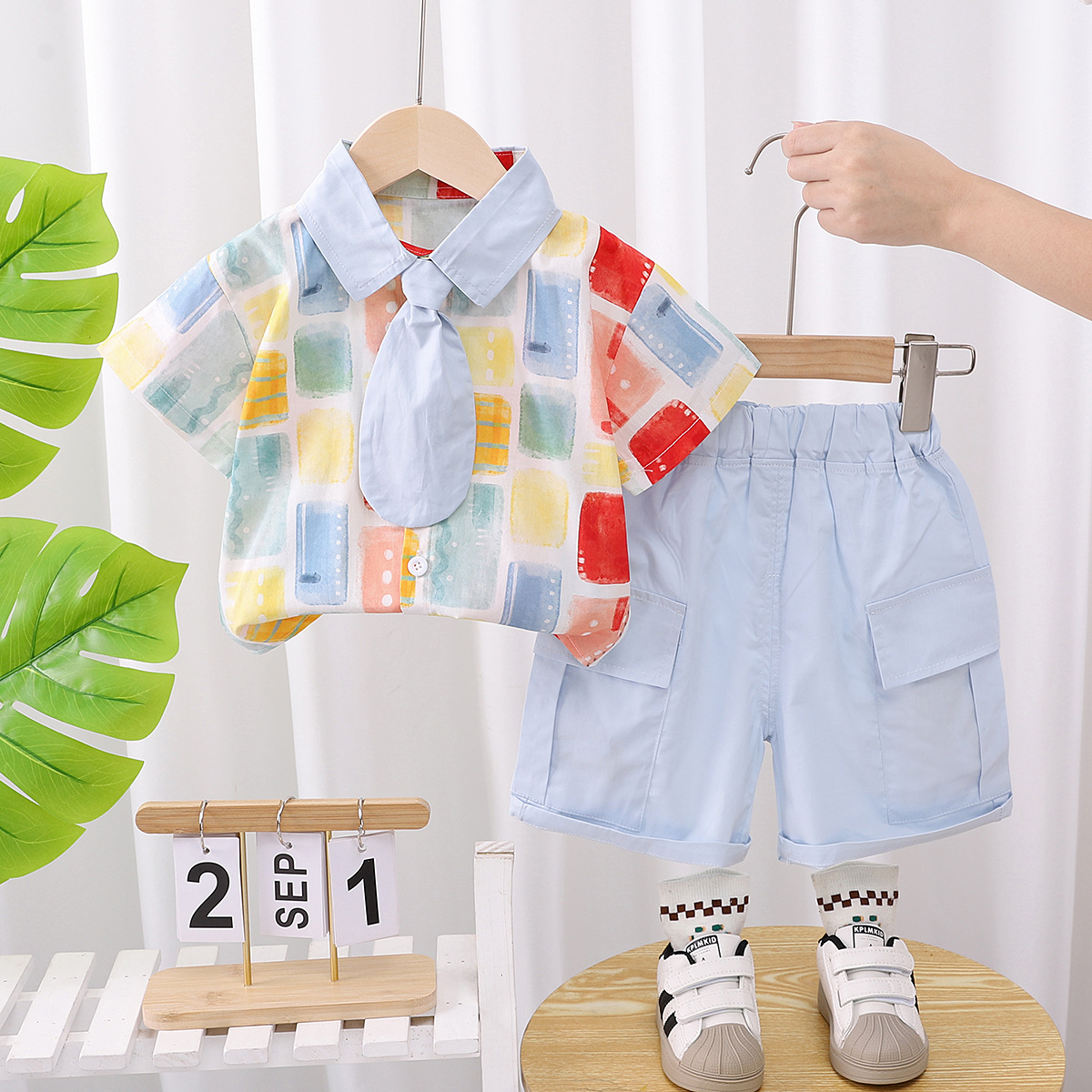 소년 및 어린이 여름 옷 세트 2025 새로운 잘 생긴 아기 여름 전체 인쇄 광장 셔츠 옷 투피스 세트