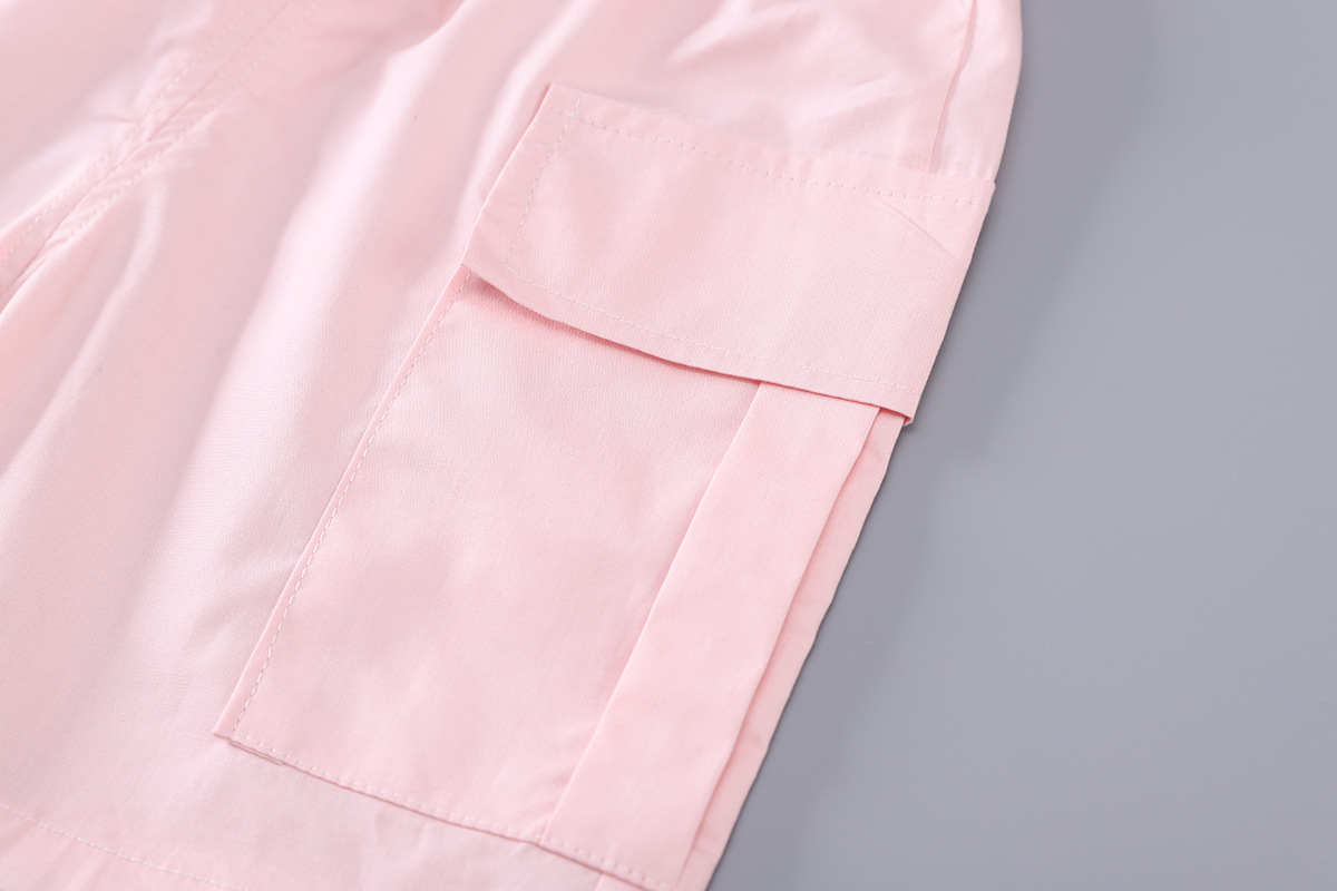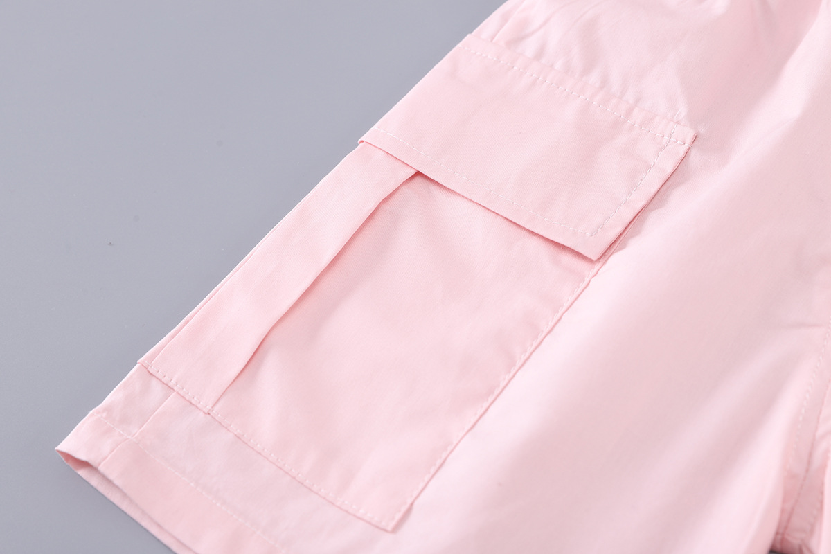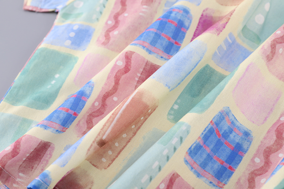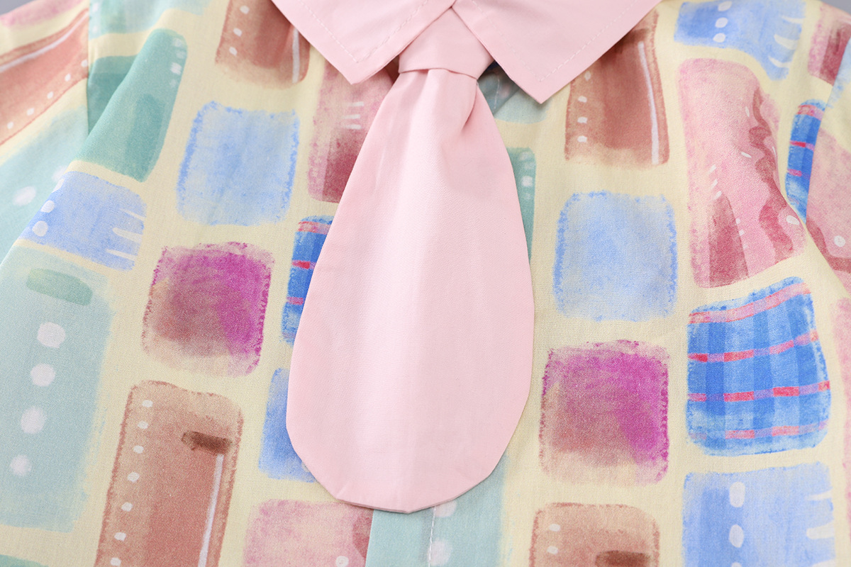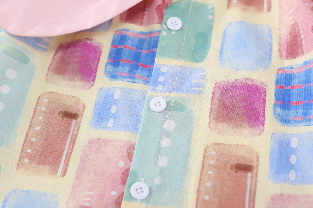 • 25064 올오버 프린트 체크 셔츠 반팔 슈트 핑크