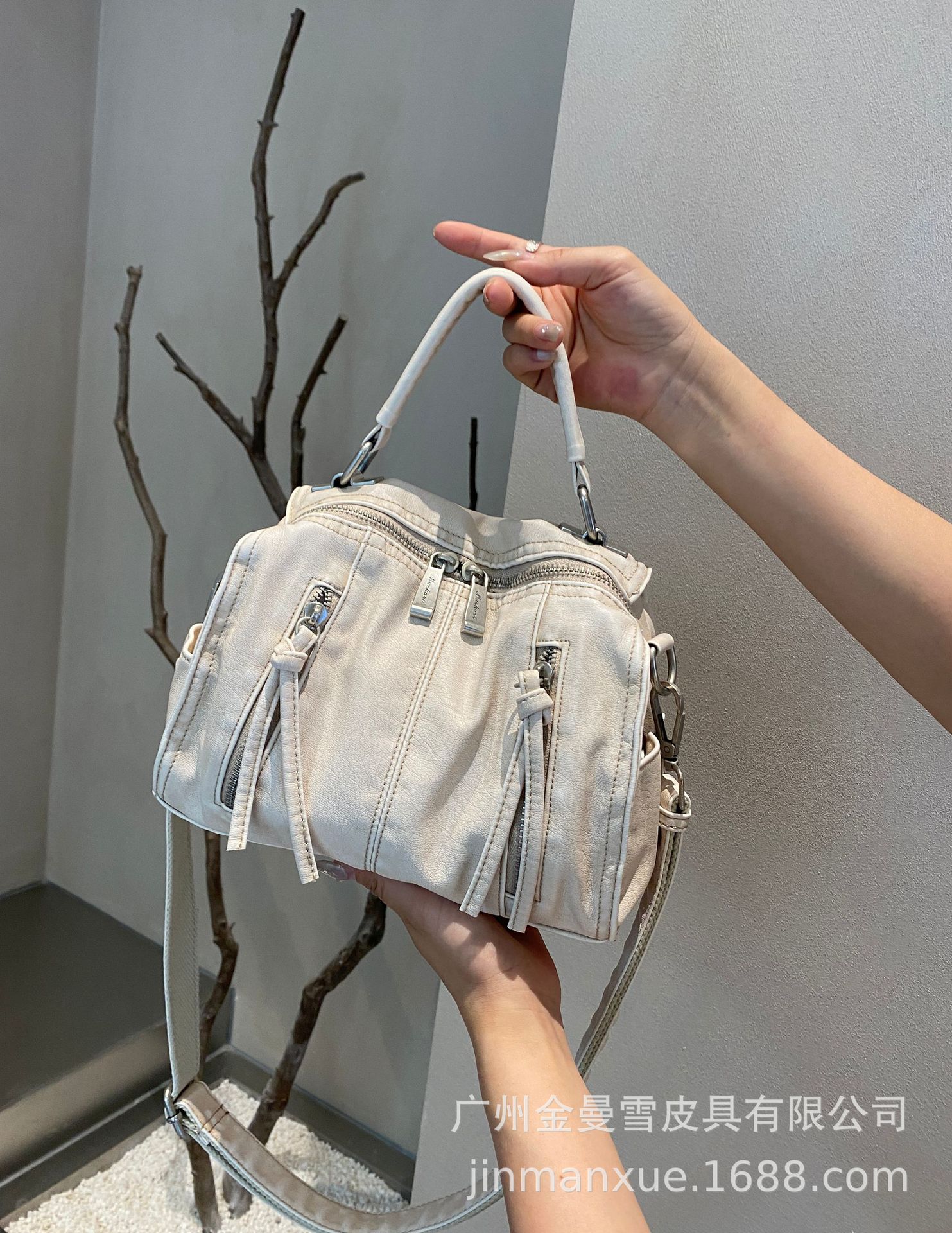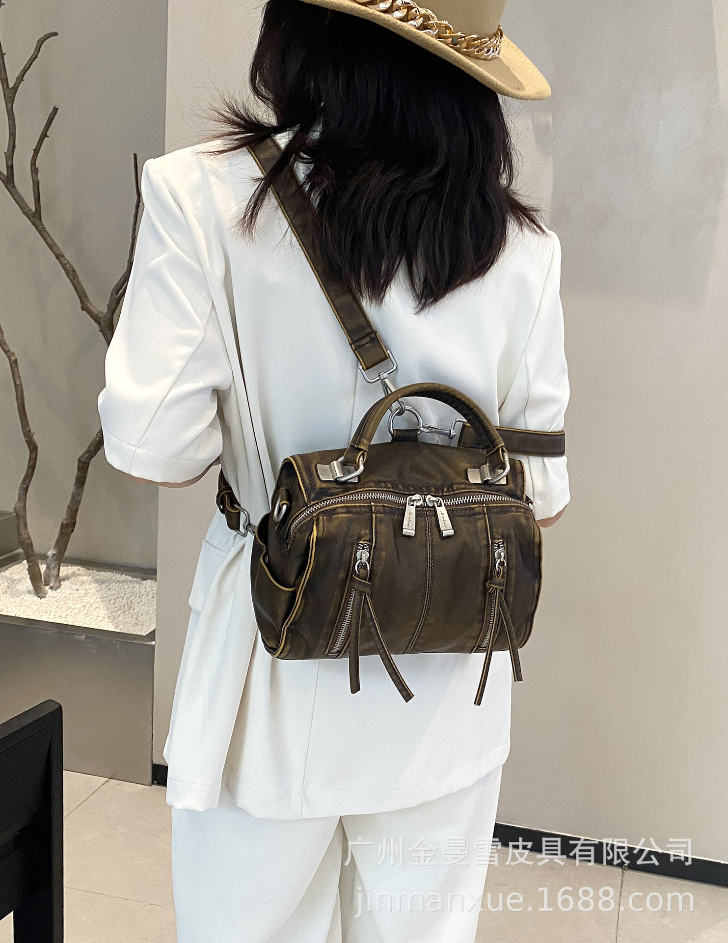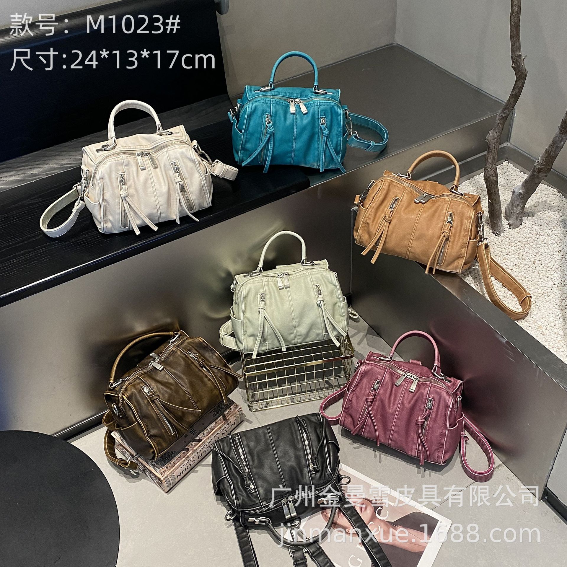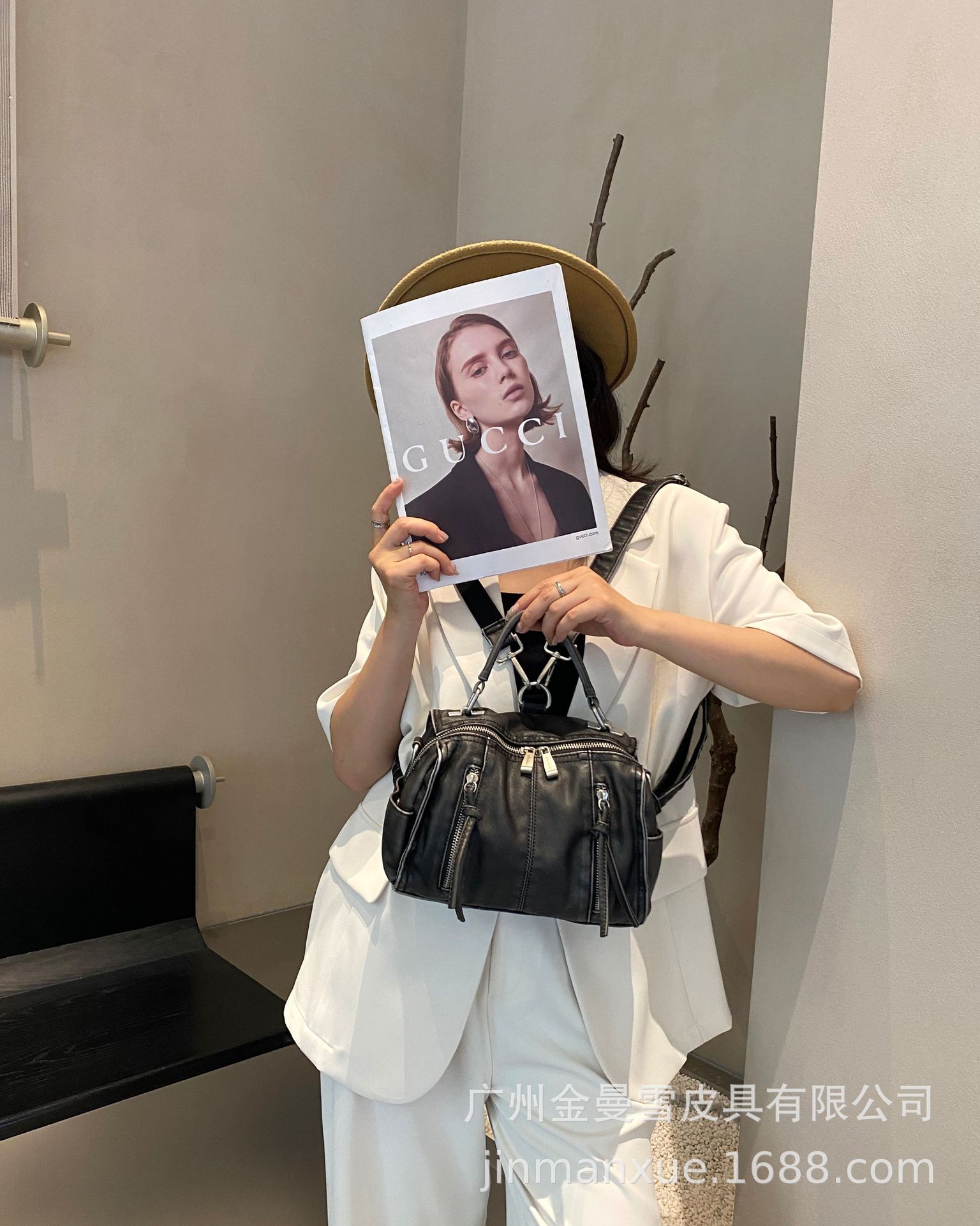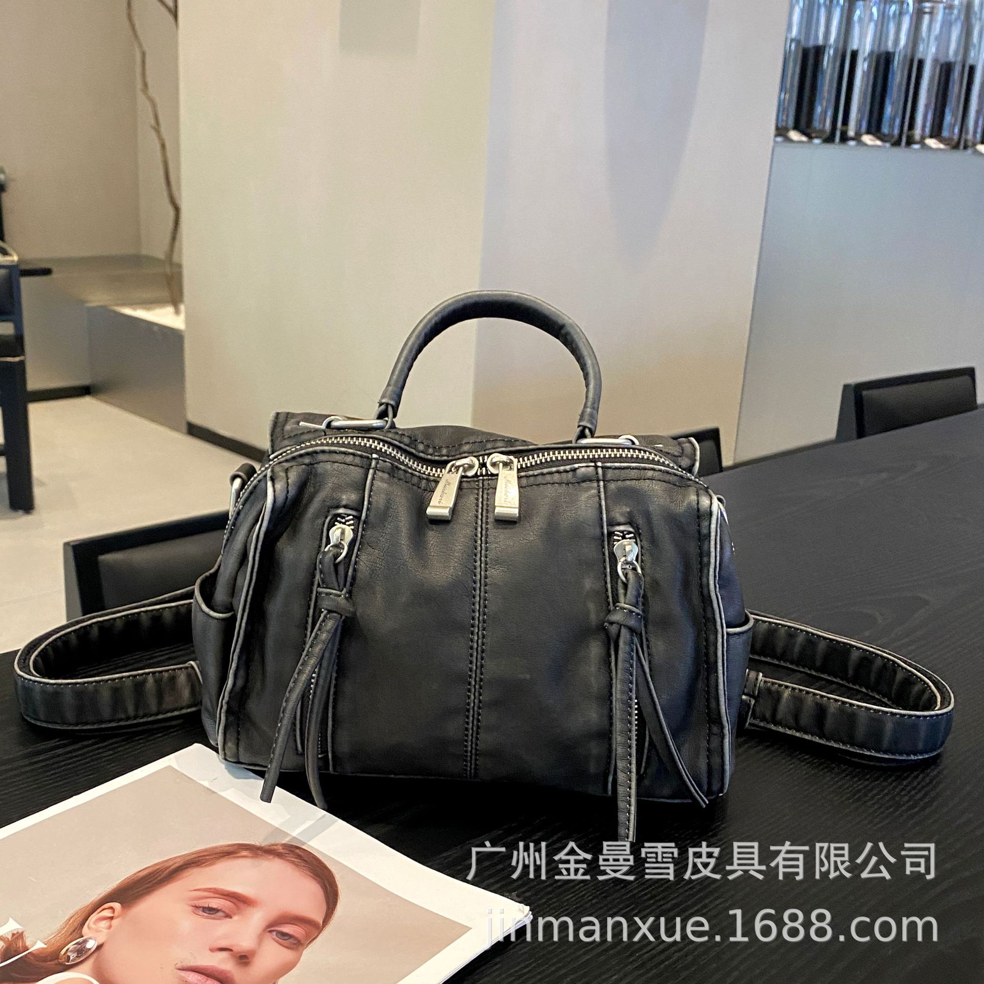 국경 간 Mucari 캐주얼 핸드백 2025 새로운 다목적 보스턴 패션 싱글 숄더 크로스 바디 백 부드러운 가죽 배낭