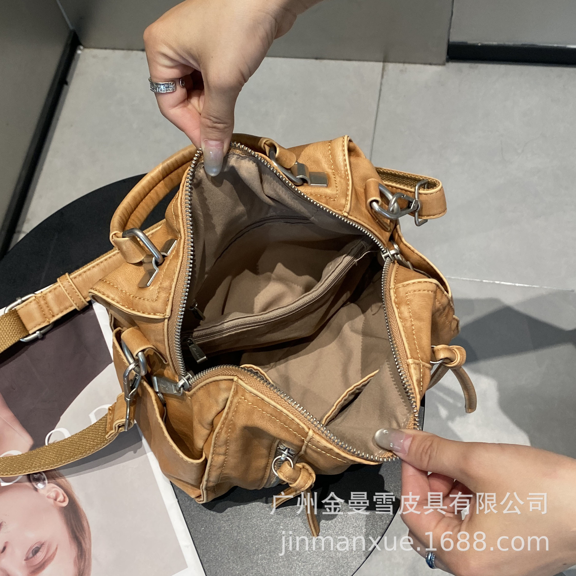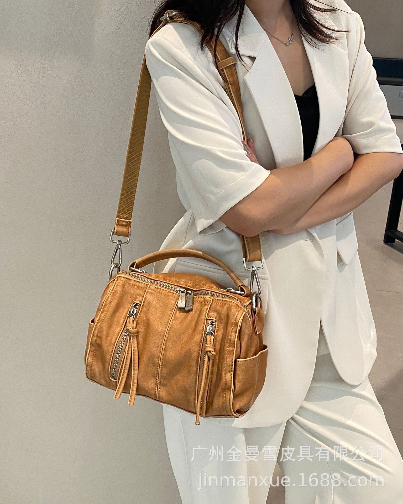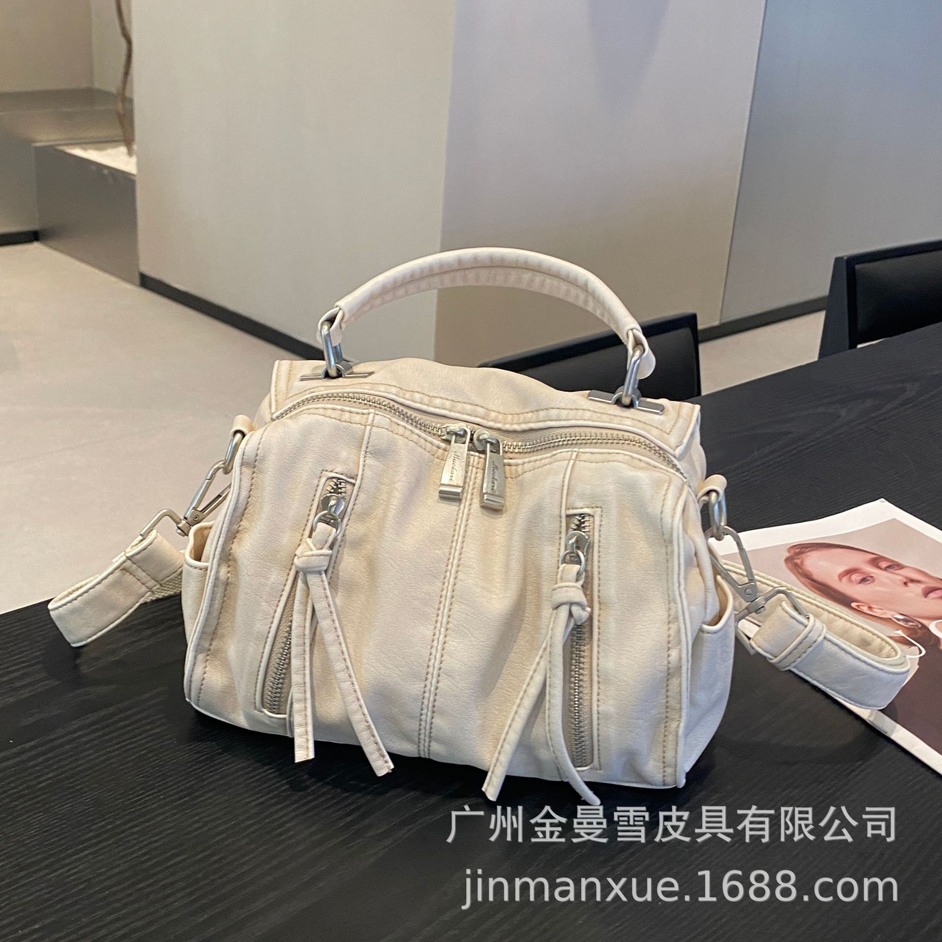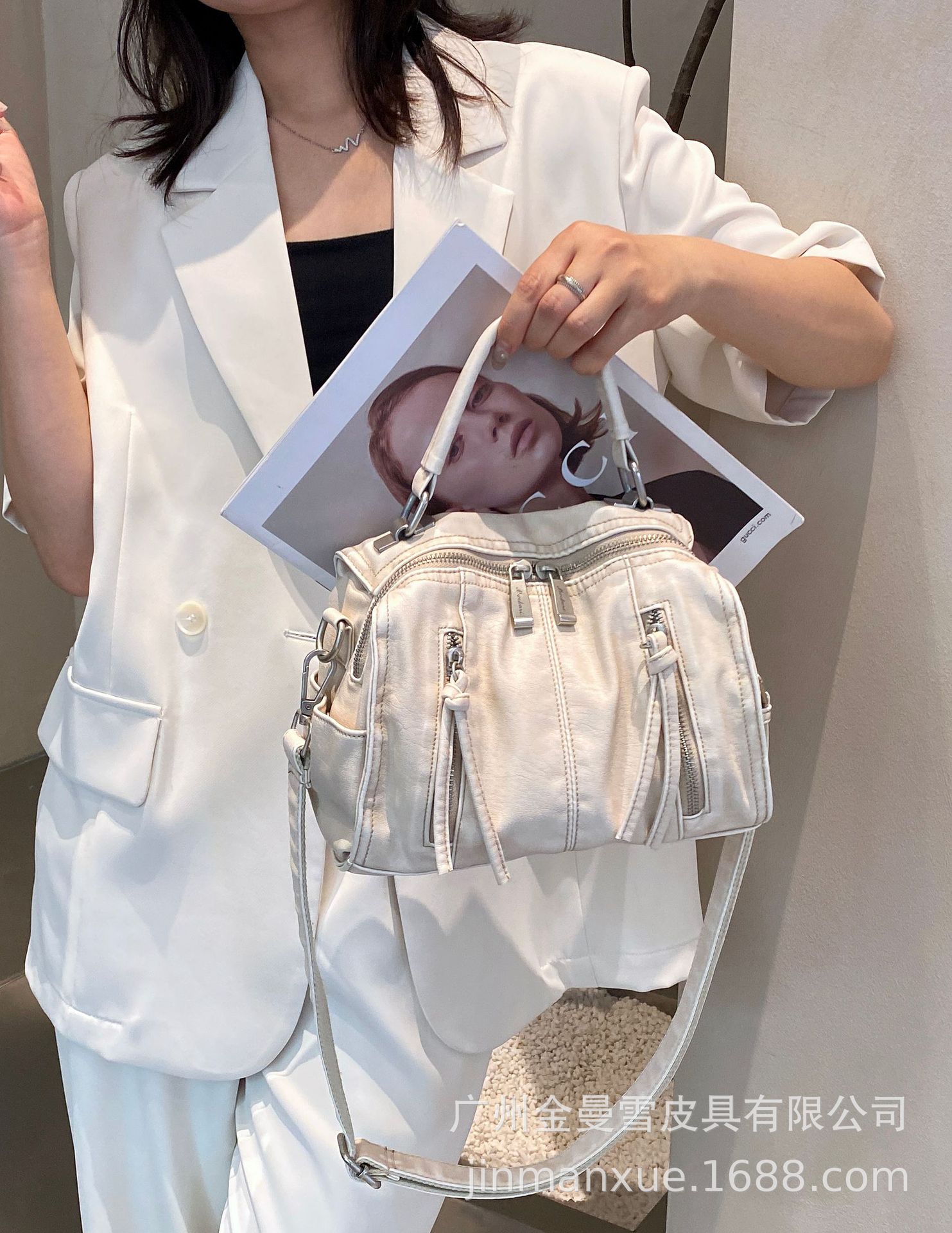 국경 간 Mucari 캐주얼 핸드백 2025 새로운 다목적 보스턴 패션 싱글 숄더 크로스 바디 백 부드러운 가죽 배낭